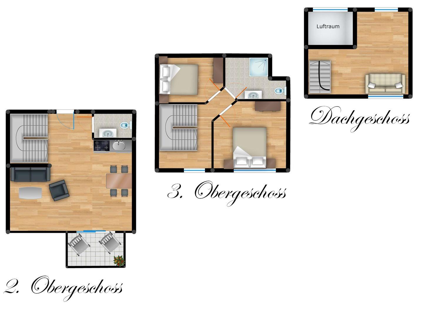 Obere Etage – Schlafräume & Bad