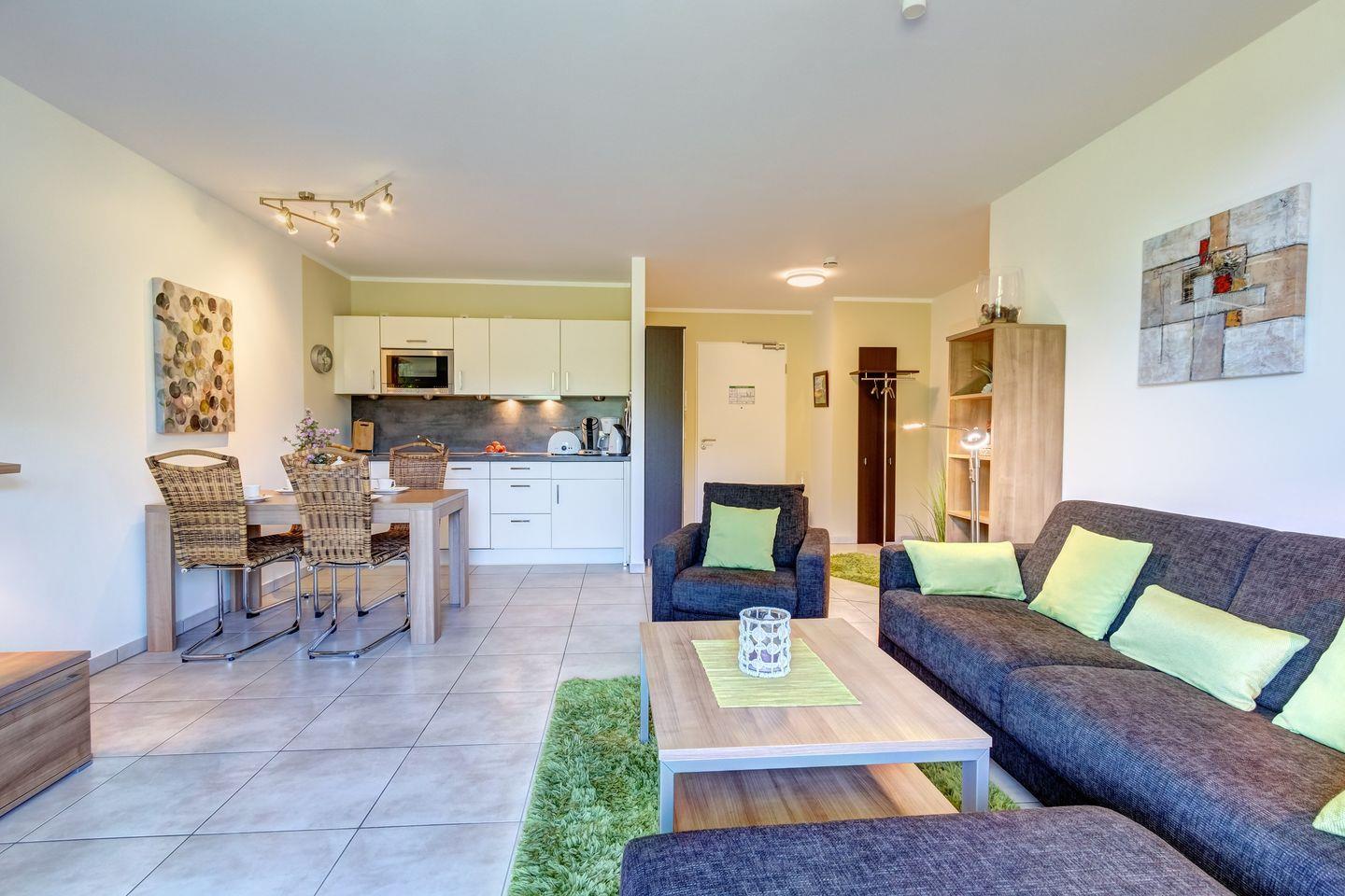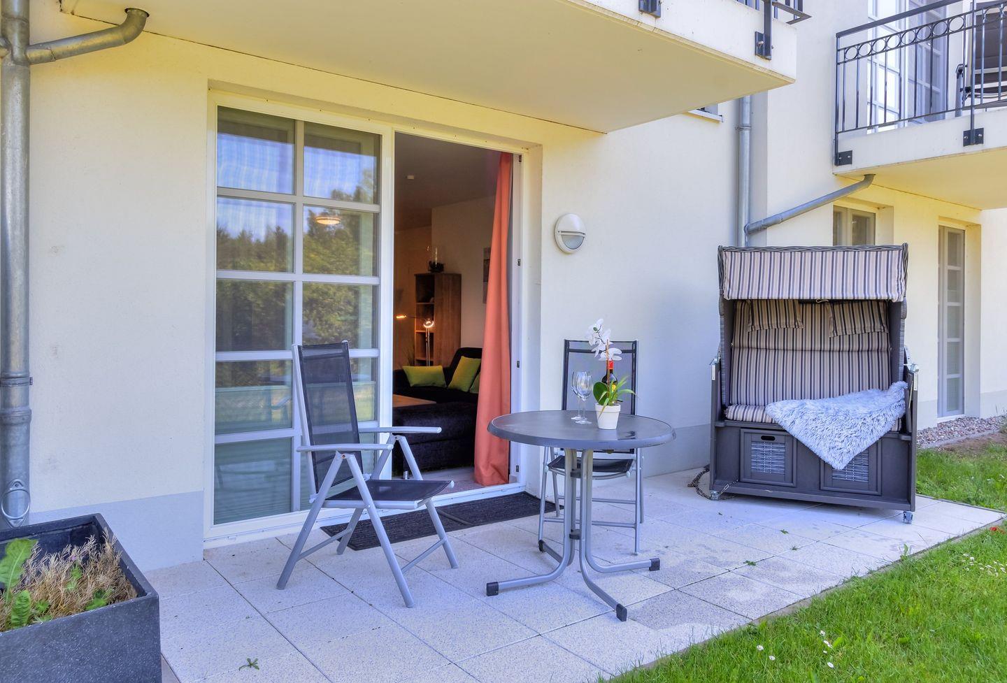 Die mit 5 DTV-Sternen ausgezeichnete Wohnung BS42 in der Residenz am Balmer See erstreckt sich über 52 m² im Erdgeschoss und bietet eine Terrasse sowie einen Strandkorb, um Ihren Urlaub in vollen Zügen zu genießen.
