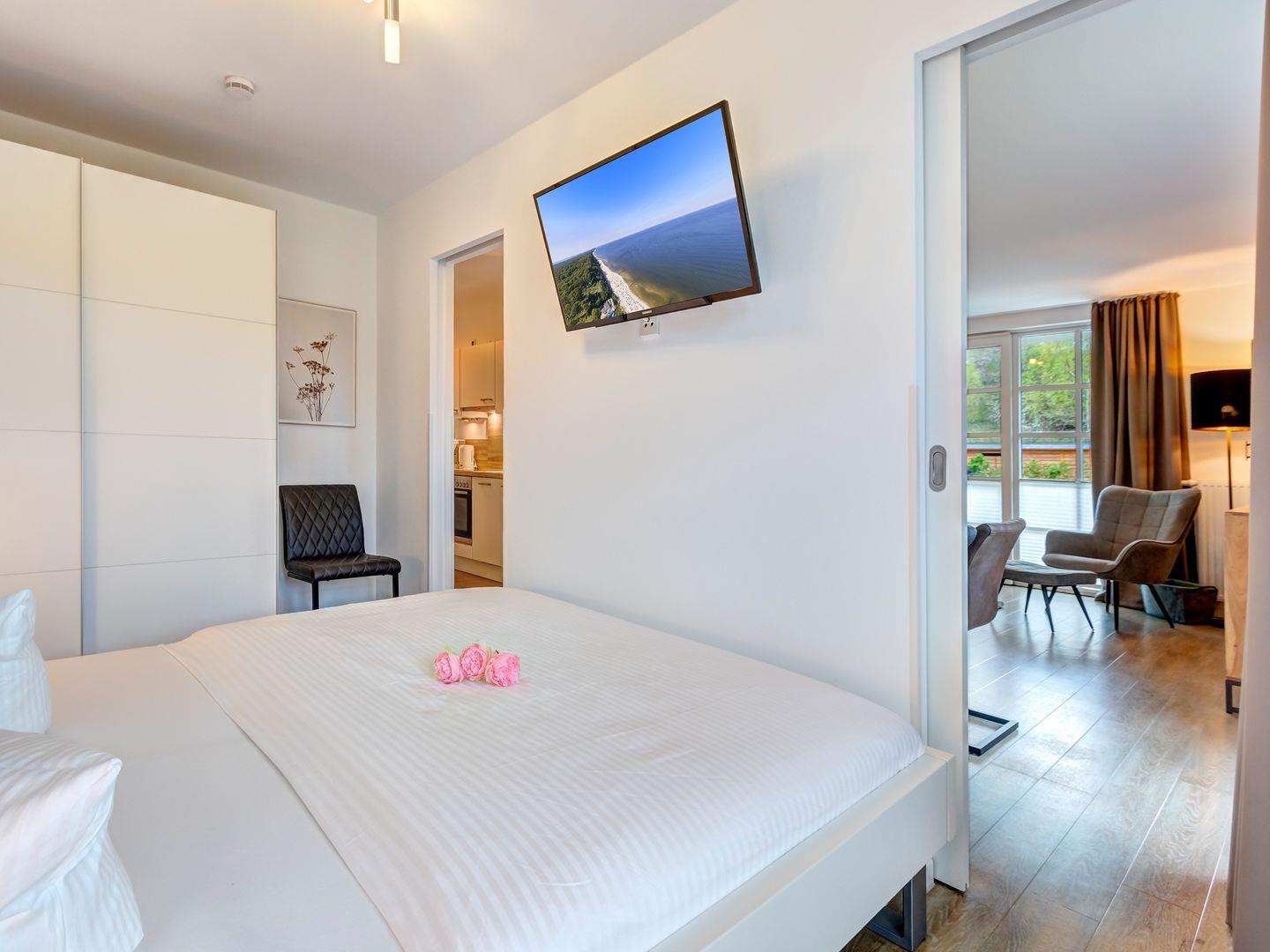 Willkommen in unserer exklusiven Ferienwohnung BS43 – einer hochwertig eingerichteten Ruheoase mit zwei Schlafzimmern, eingebettet in ein malerisches Naturschutzgebiet.