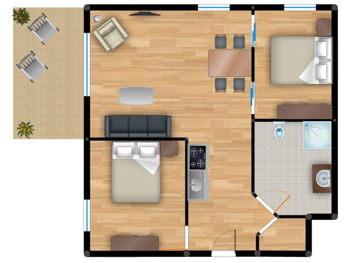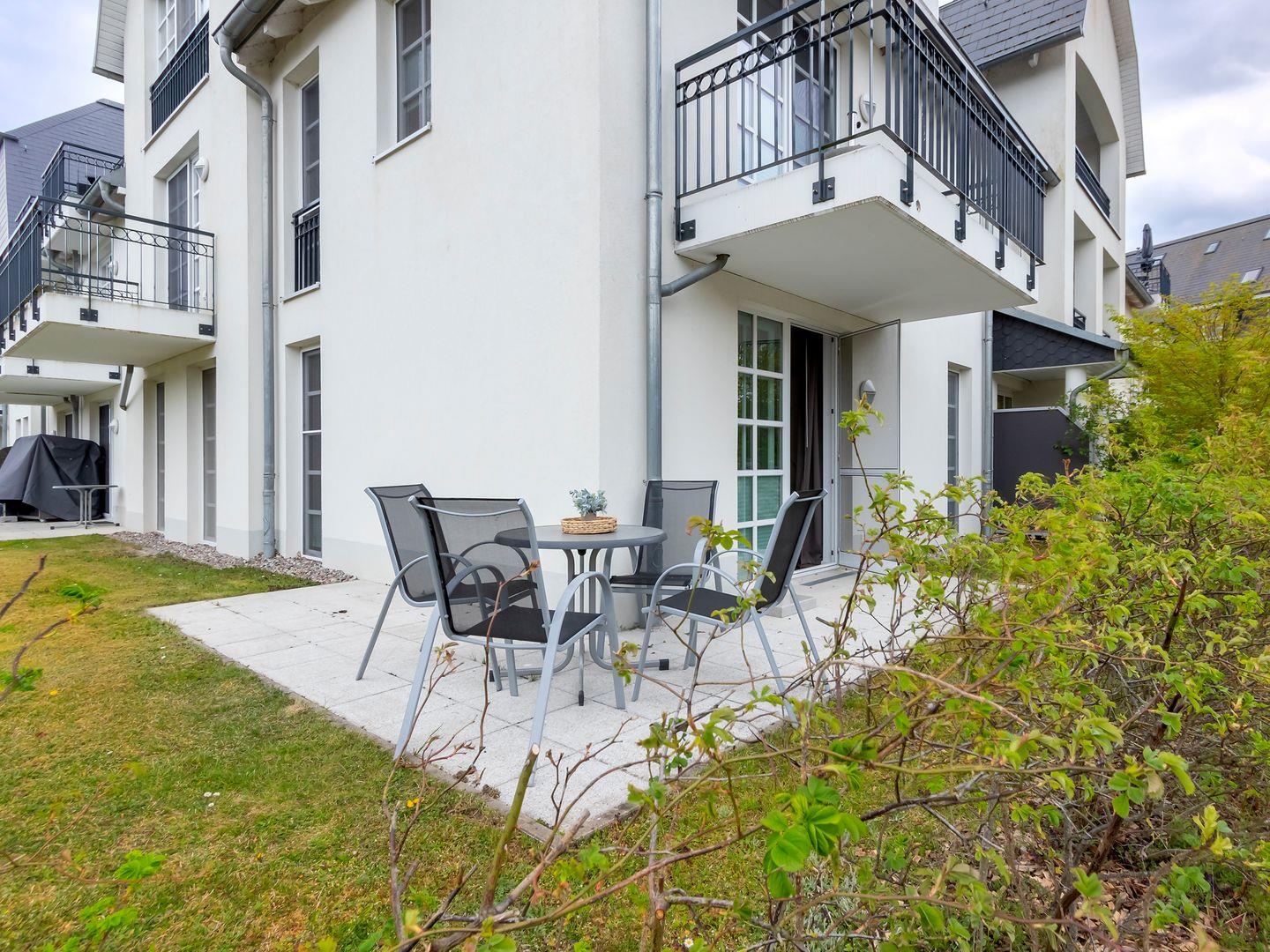 Die Ferienwohnung bietet Platz für bis zu vier Personen und verspricht Erholung pur, fernab vom Trubel des Alltags. Die gesamte Wohnung besticht durch ihre gehobene Ausstattung, und vom Wohnzimmer aus gelangen Sie direkt auf die sonnige Terrasse, die zum Entspannen und Verweilen einlädt.