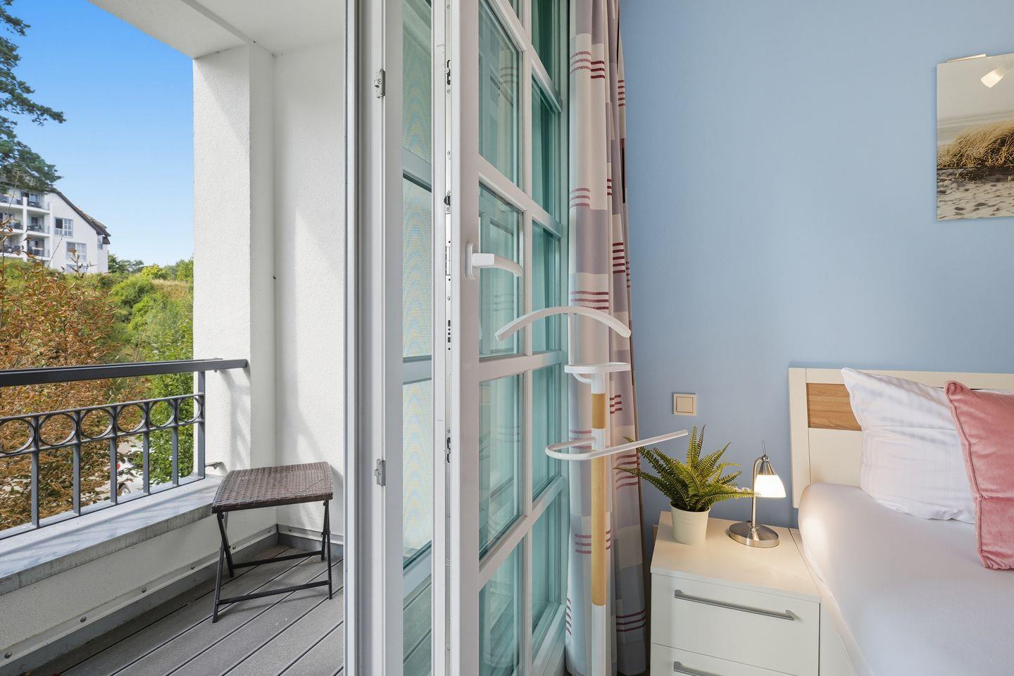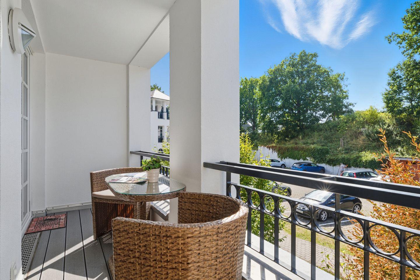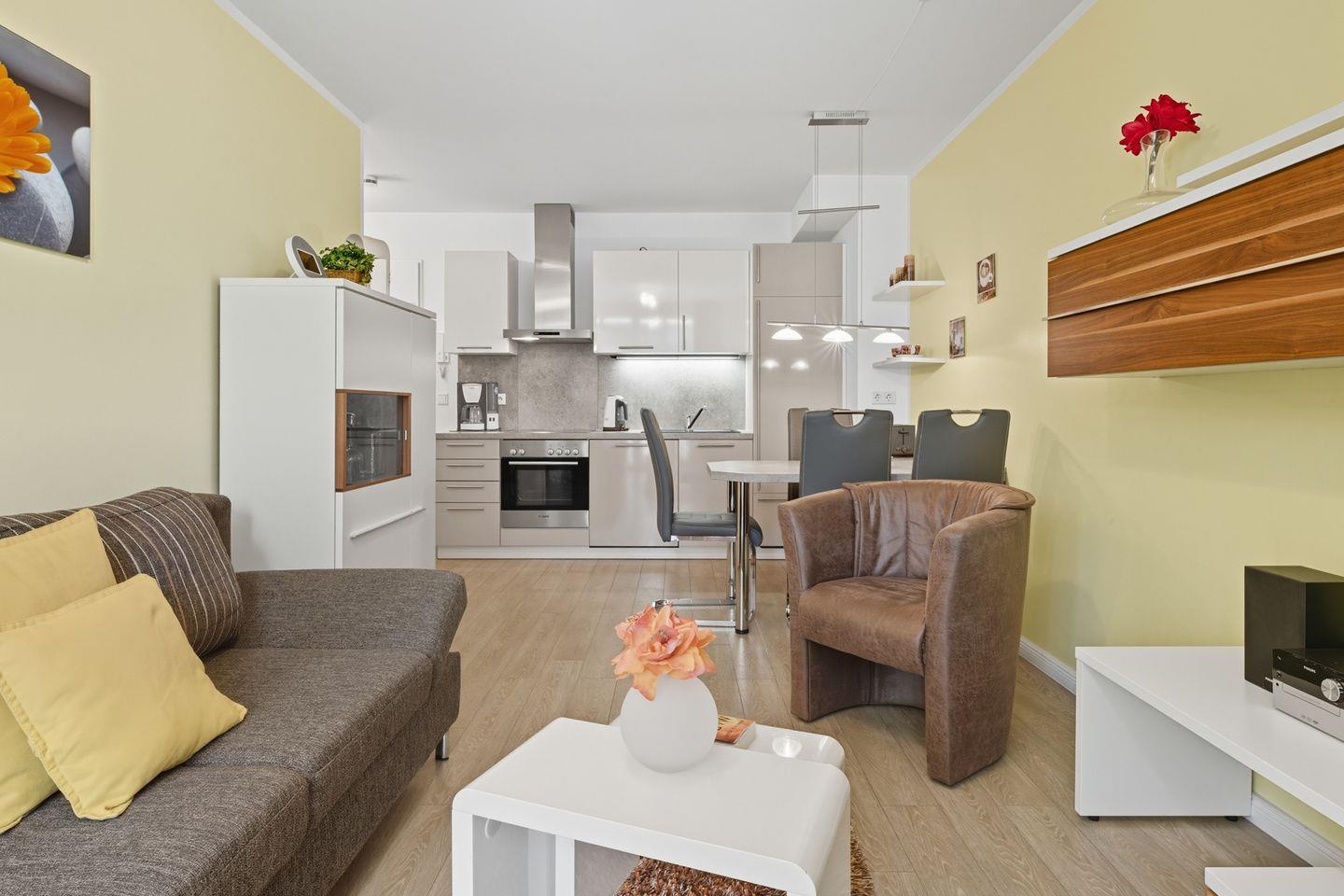 Moderne Ferienwohnung in der Residenz am Balmer See mit Wellnessbereich und Loggia für entspannte Urlaubstage.