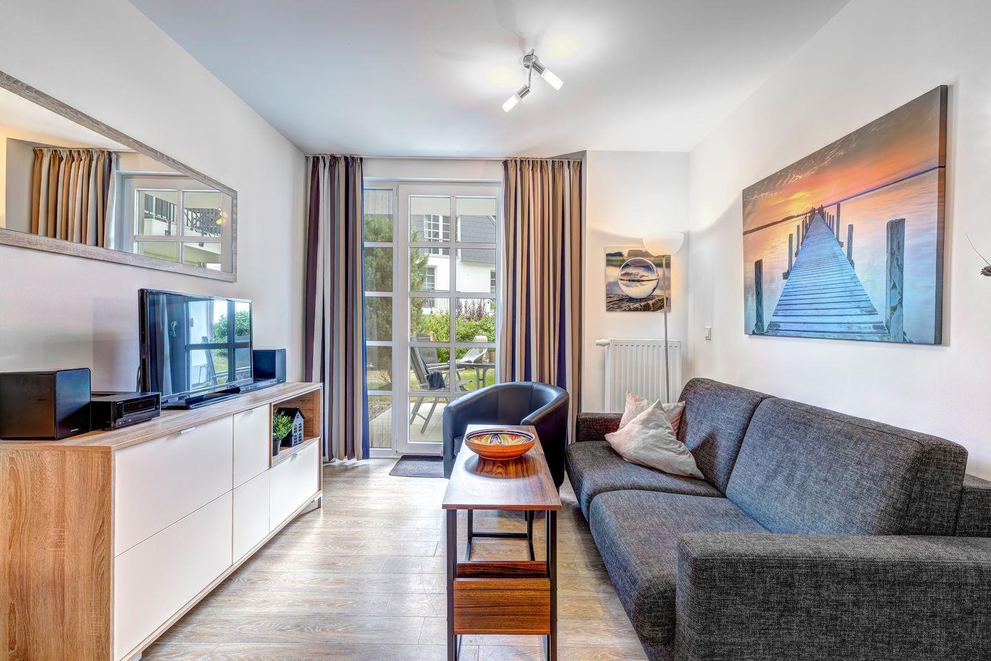 Genießen Sie Ihren Aufenthalt in einer komfortablen 44m² großen Ferienwohnung BS10 mit 2 Zimmern und sonniger Terrasse, perfekt für bis zu 3 Personen und ein Kleinkind.