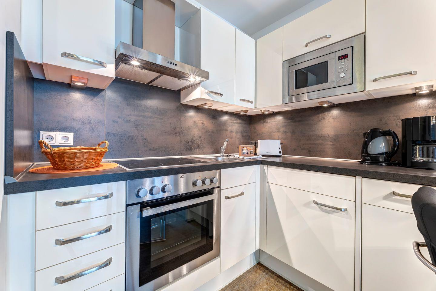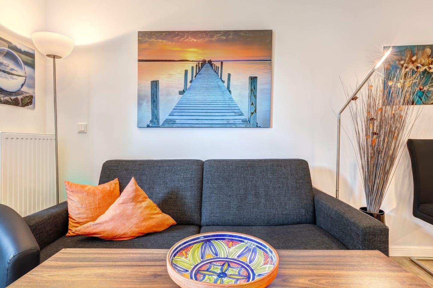 Das geschmackvoll eingerichtete Wohnzimmer lädt zum Verweilen ein. Neben einer hochwertigen Küchenzeile finden Sie eine großzügige Schlafcouch, Gesellschaftsspiele, einen Flachbildfernseher mit DVD- Player, Blue Ray Player und eine I-Phone Docking Station. Ein weiterer Flachbildfernseher im Schlafzimmer rundet die erstklassige Ausstattung ab.