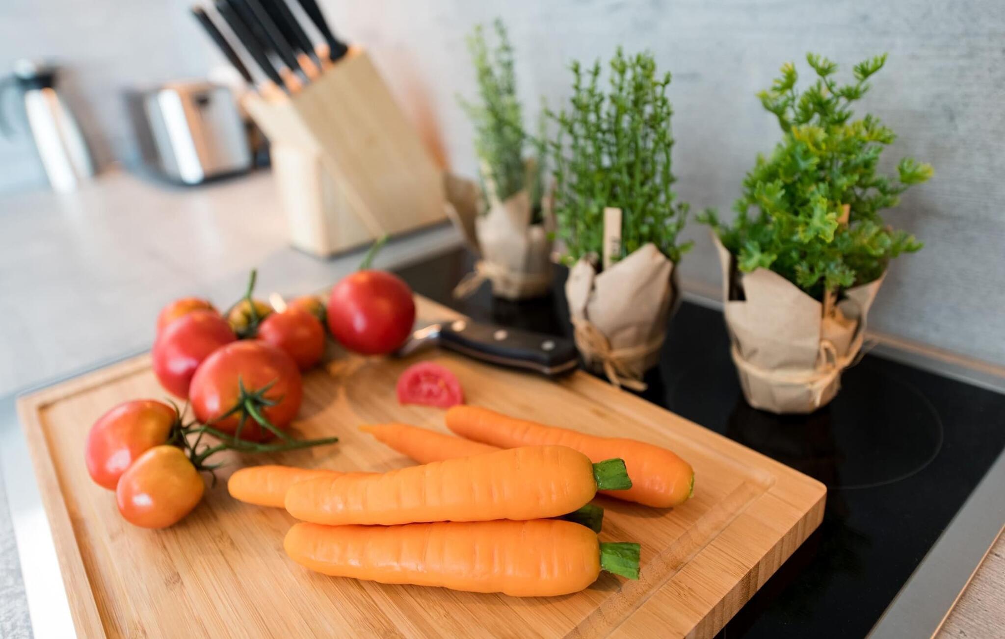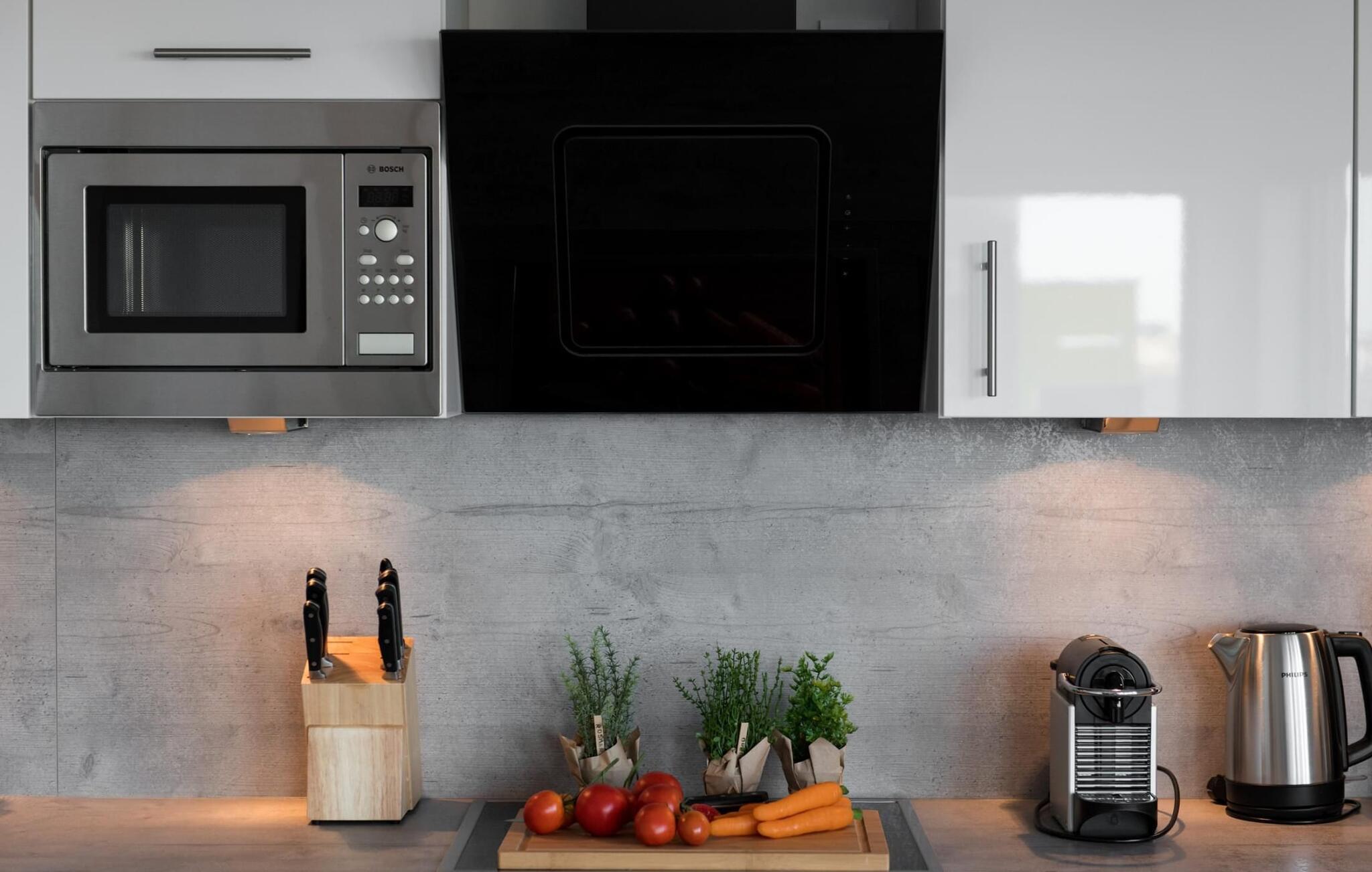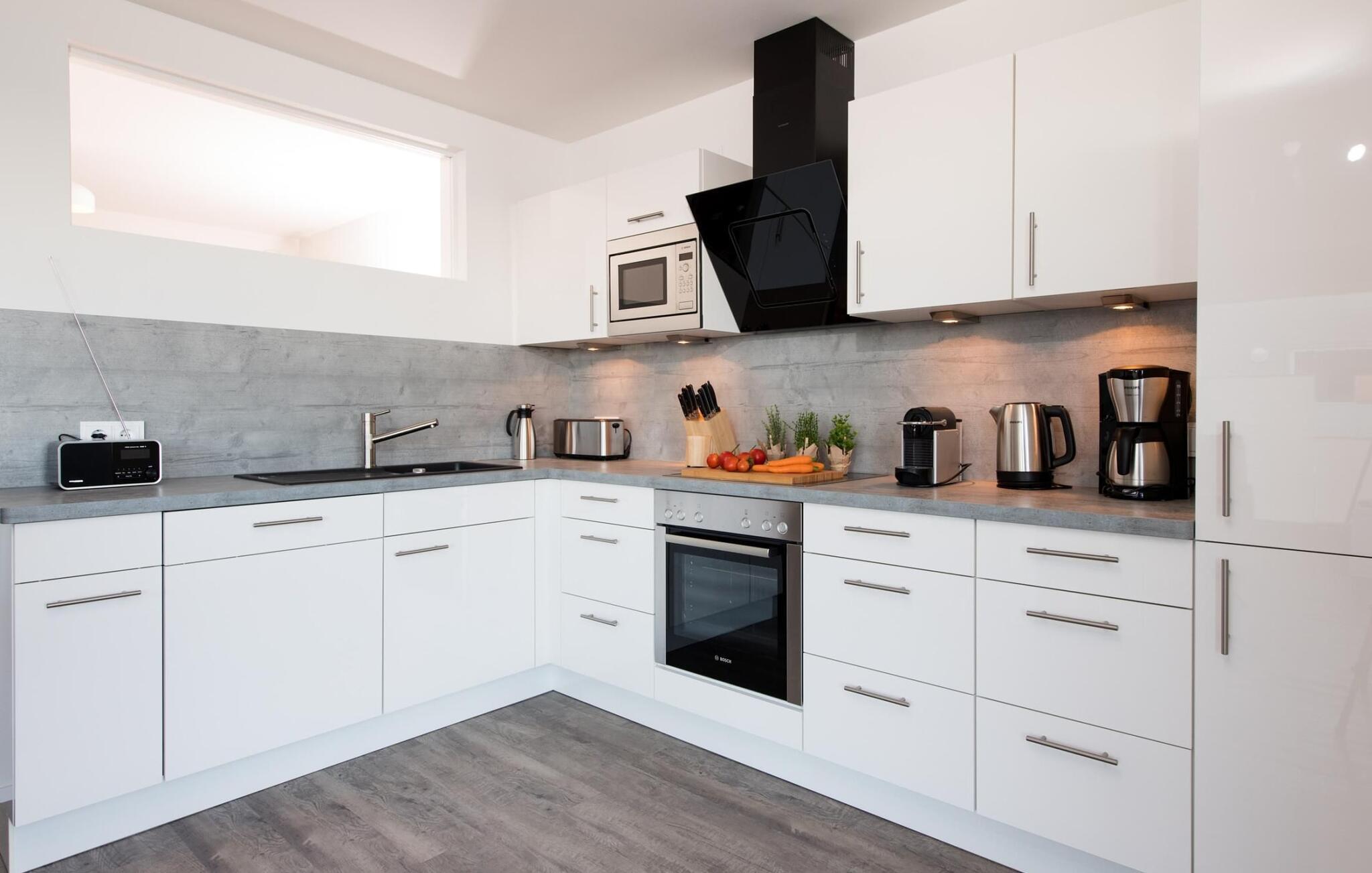 Im Urlaub ist Zeit für kreatives Kochen, die rundum ausgestattete Wohnküche lässt hierbei keine Wünsche offen. Frühstücken bei Morgensonne auf der Ostterrasse, Urlaubsfeeling pur.