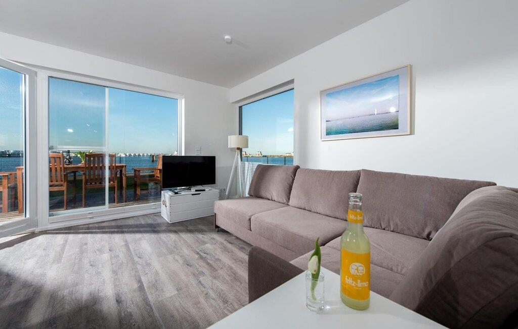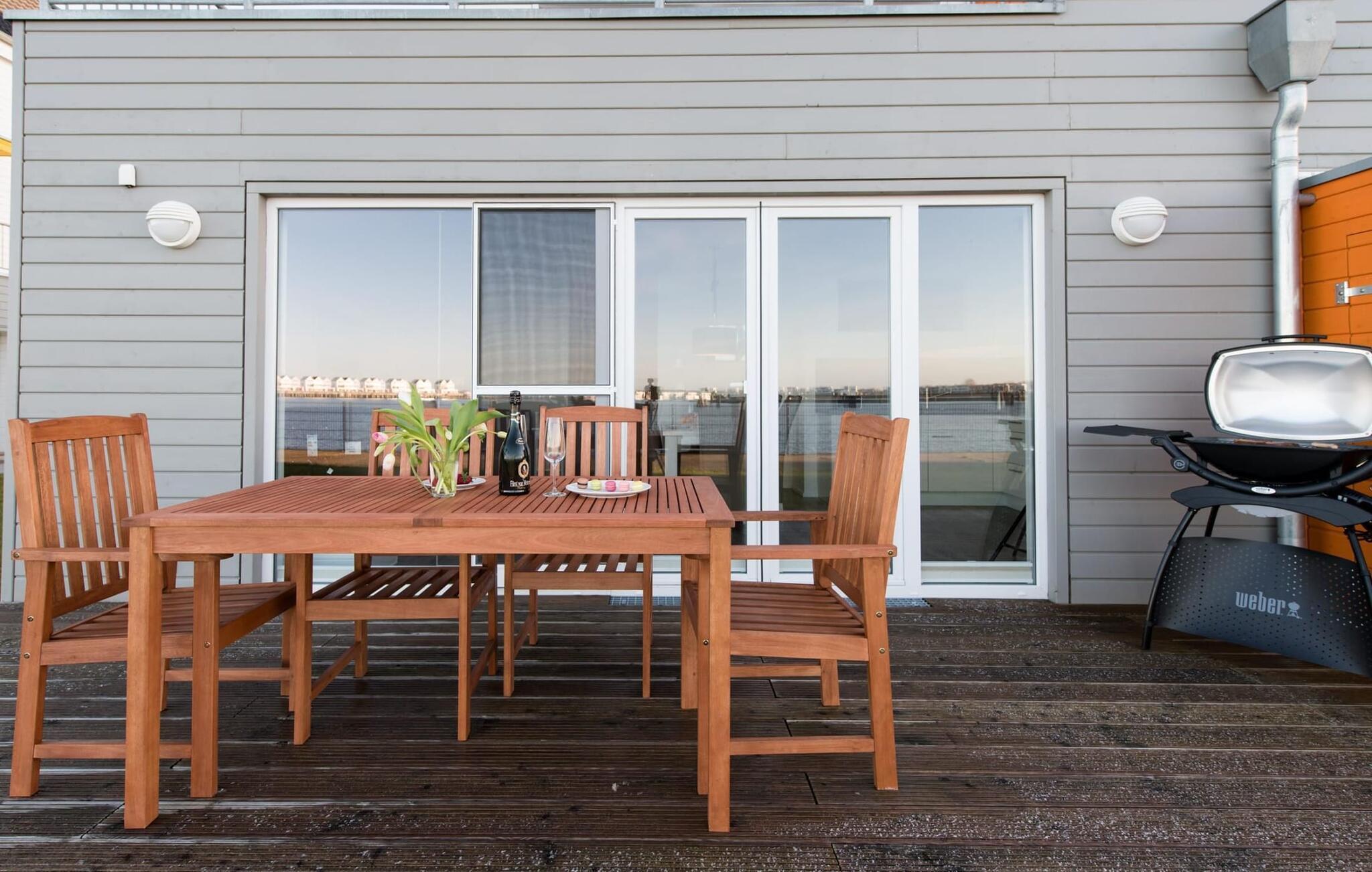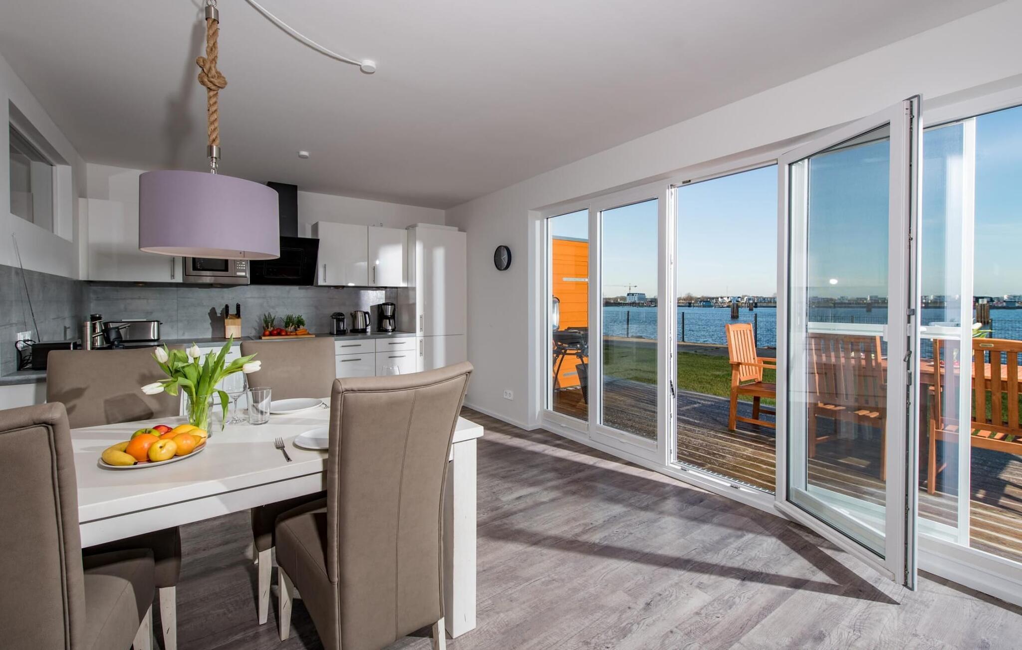 Traumhafte Aussichten eröffnen sich aus dem Wohnbereich und auf der angrenzenden Terrasse mit Blick über die Marina. Hafenkino sorgt hier für Unterhaltung während eines geselligen Grillabends oder romantischen Candle-Light-Dinners bei bilderbuchreifem Sonnenuntergang.