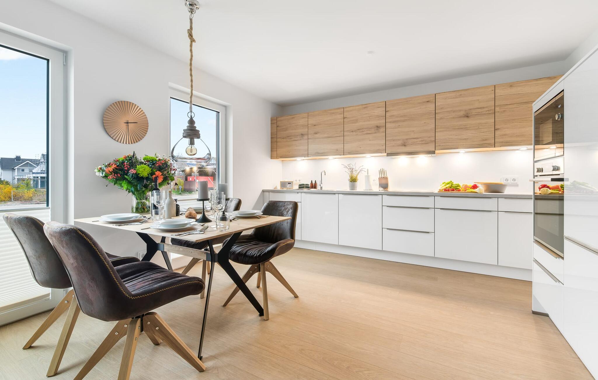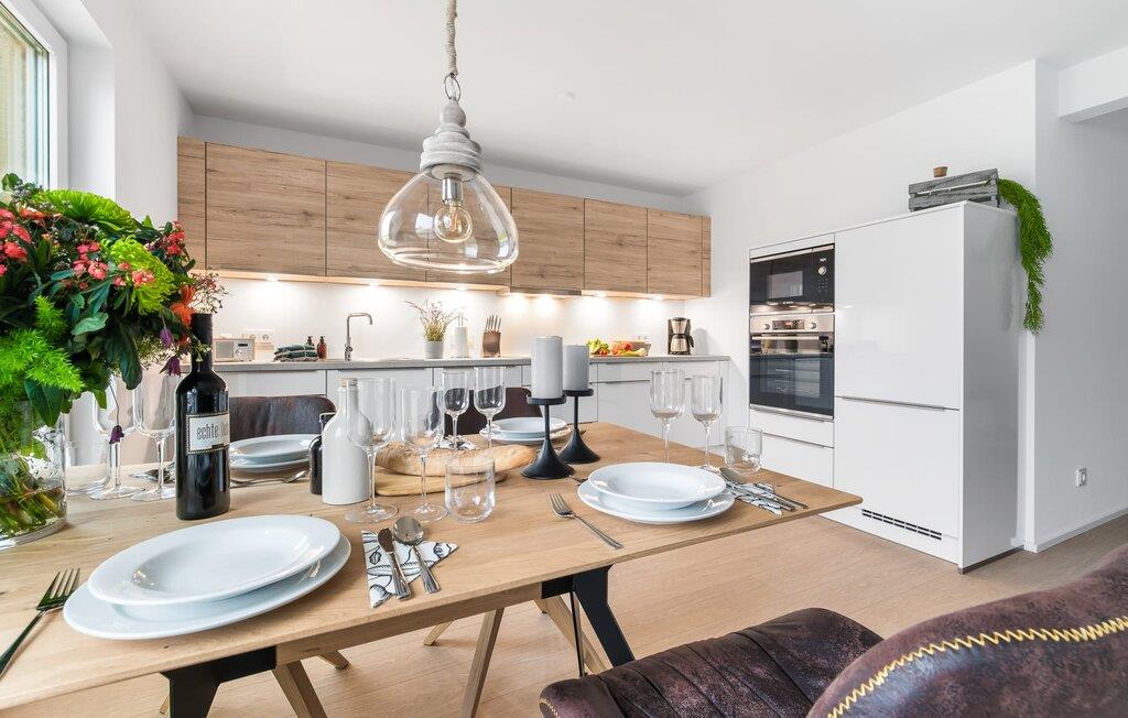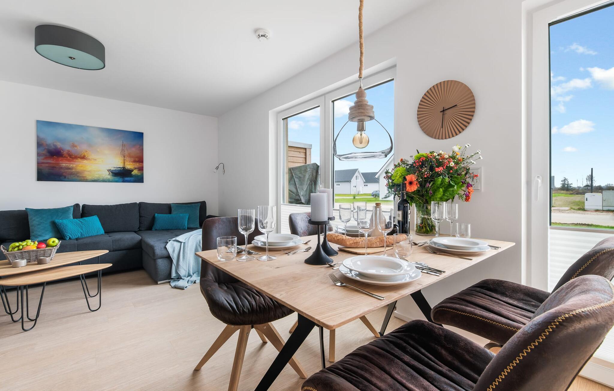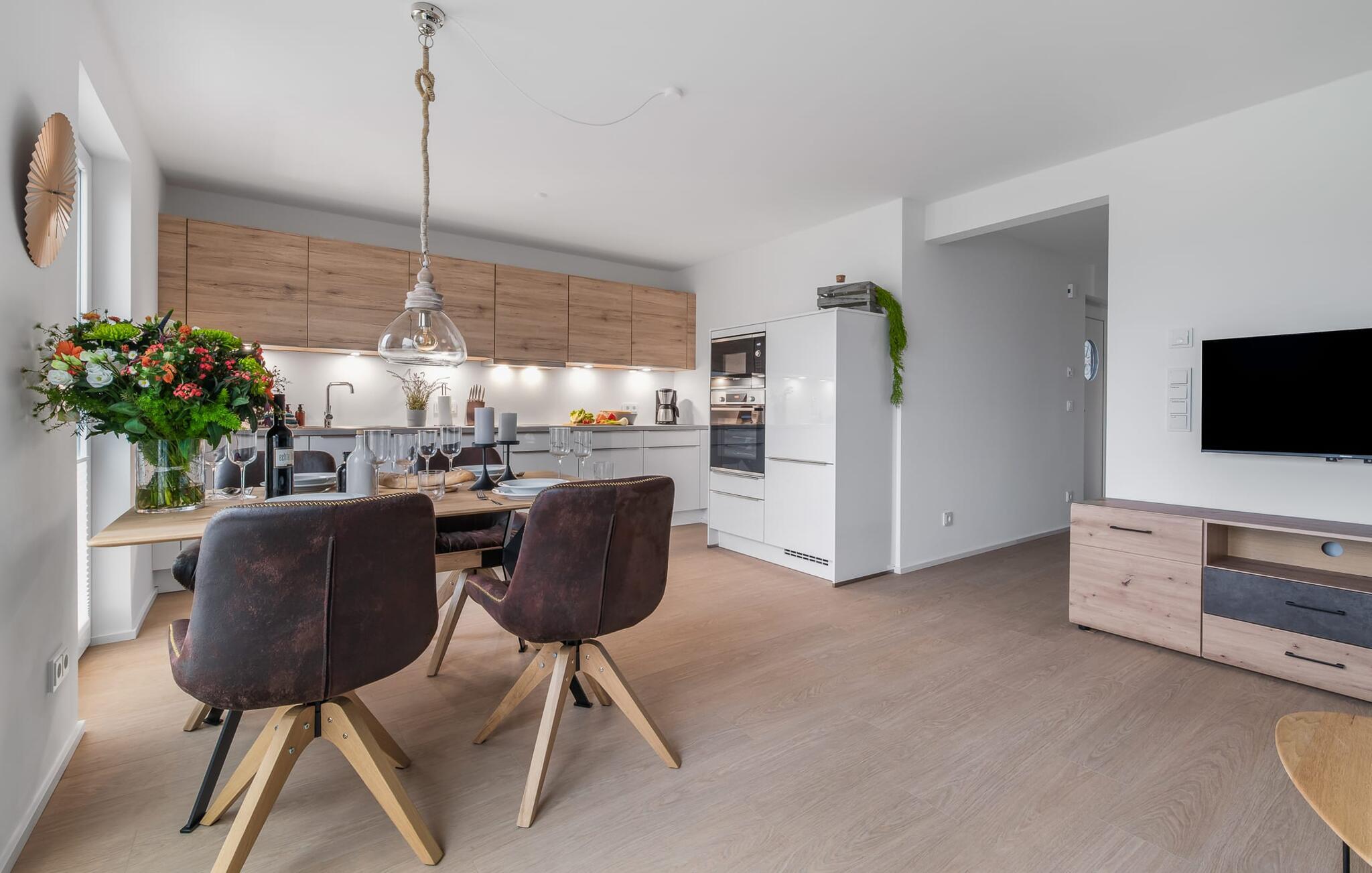 Mit seiner bodentiefen Fensterfront und der angrenzenden großen Terrasse ist der offene Wohn-/Essbereich das Herz der Wohnung. Hineinkommen und sich sofort Zuhause fühlen. Auf der Wohnlandschaft mit Kuschelfaktor zu entspannen oder fernsehen ist Entspannung und Erholung pur! BALTIC HOME lässt den Alltag immer mehr entrücken... Sollte das Wetter sich einmal von der nordischen Seite zeigen, sorgt der Kaminofen mit seinem prasselnden Feuer für weitere Behaglichkeit.
