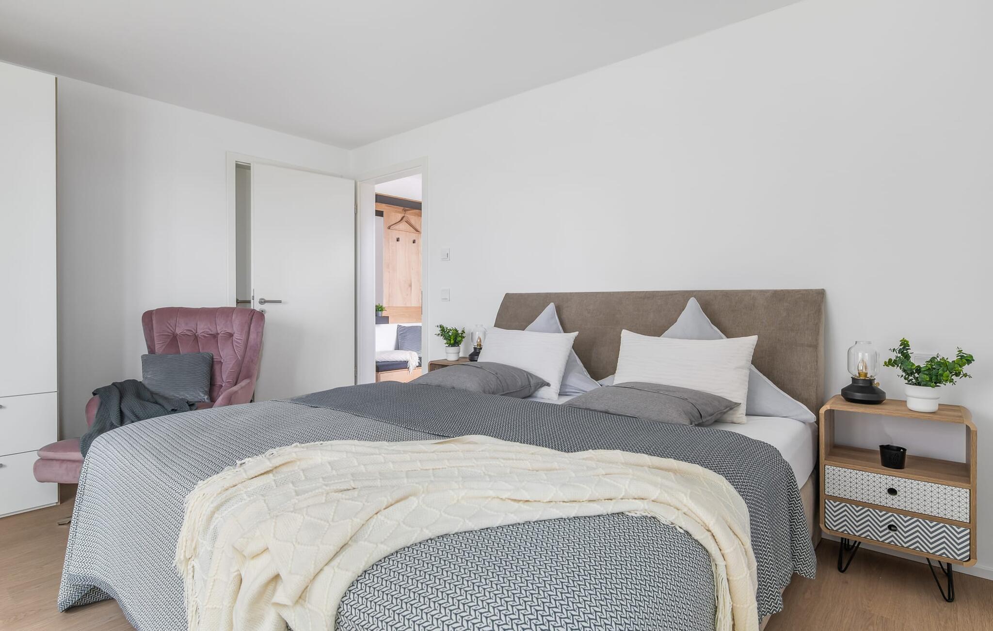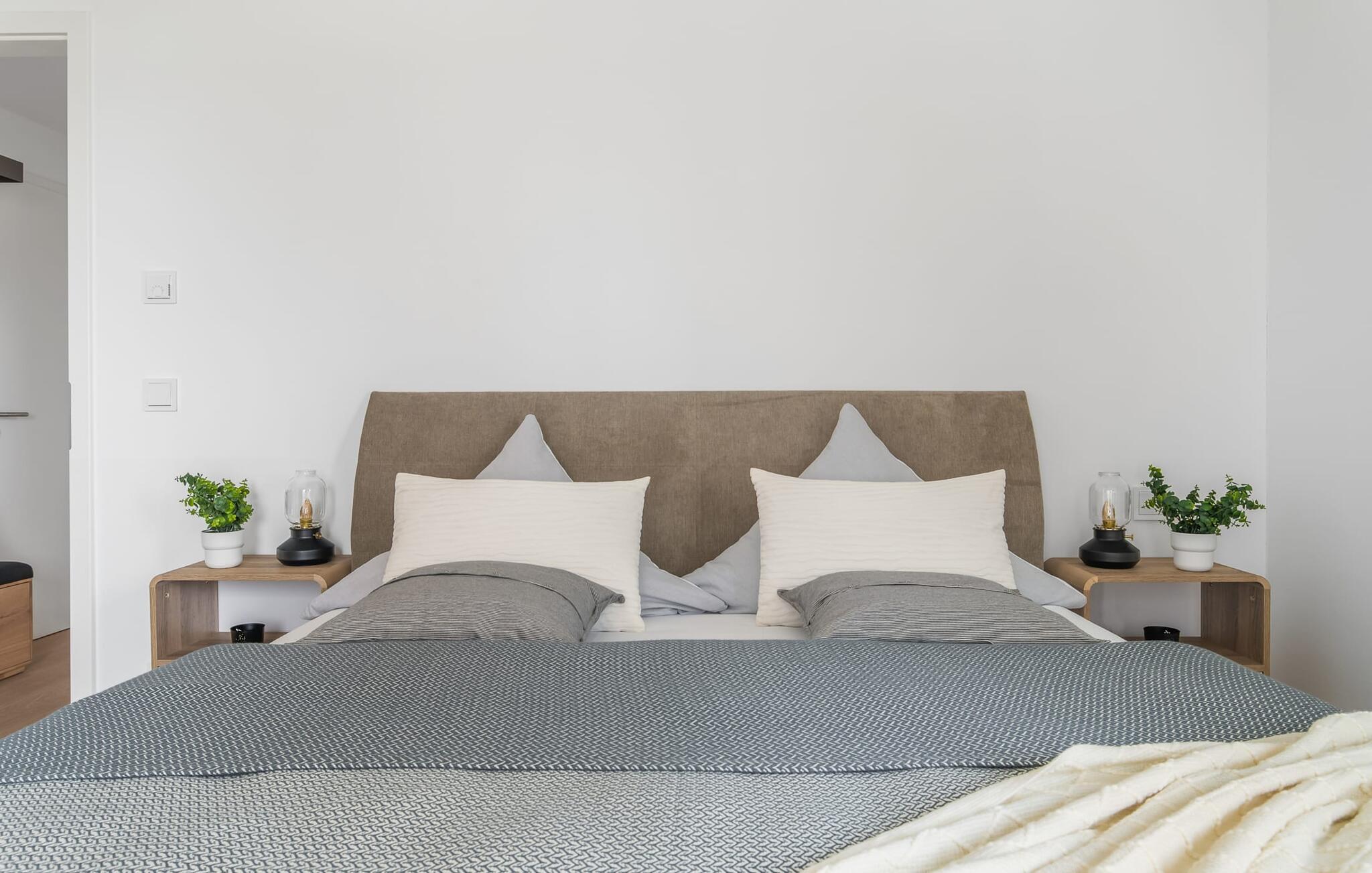 Für die nächtliche Erholung steht ein Schlafzimmer mit einem Doppelboxspringbett bereit. Ein weiterer Schlafplatz befindet sich auf der komfortablen Schlafcouch im Wohnzimmer (160cm x 200cm)