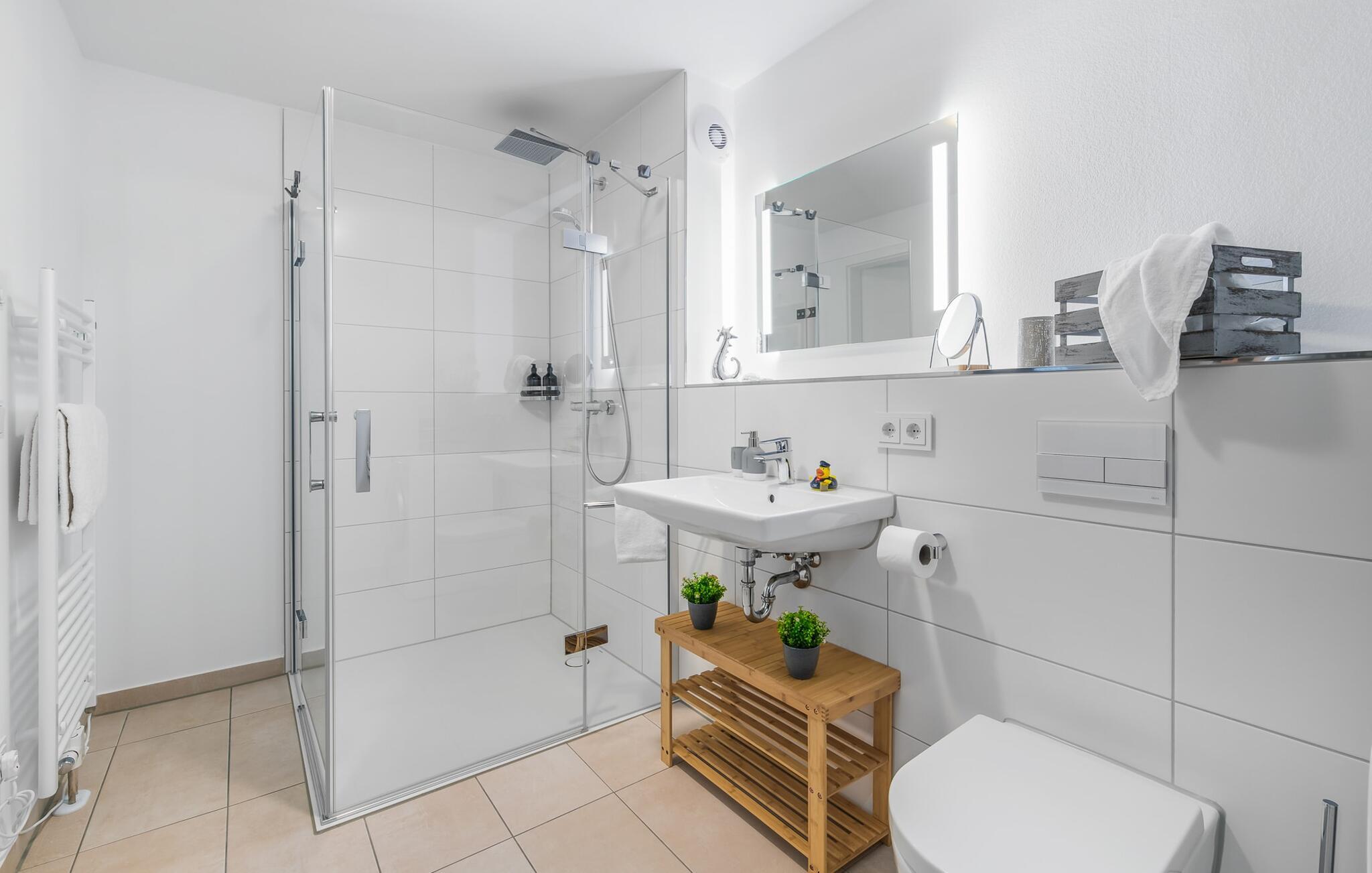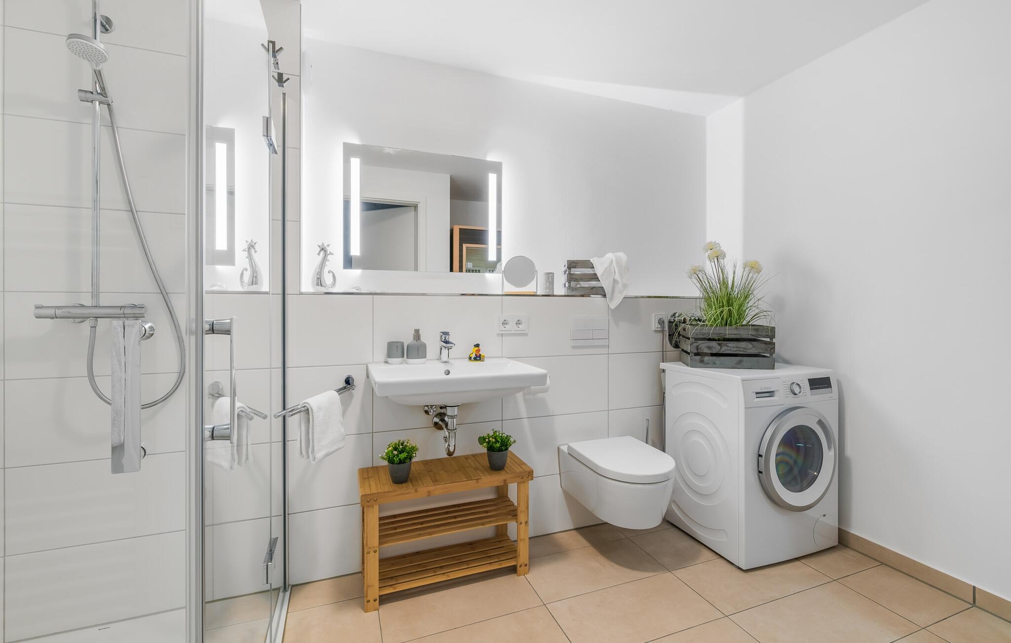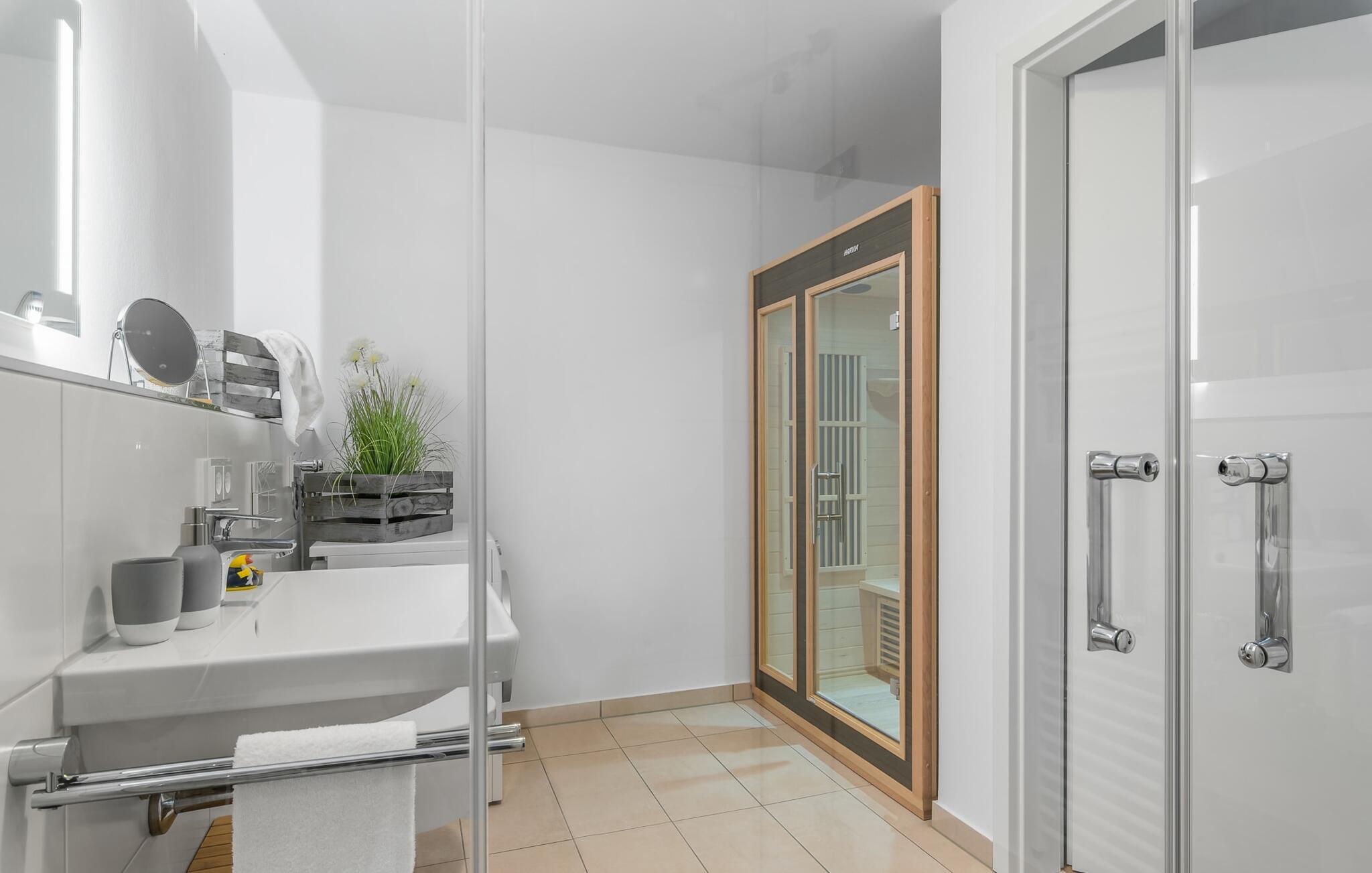 Barrierearm gestaltet, sich die Wohnung auch mit einem Rollstuhlgerechten Duschbad. Das Duschbad ist mit einer bodengleichen rollstuhlgerechten Dusche (150cm x150cm) und einer Infrarot-Sauna ausgestattet. Dies sorgt für unvergessliche Wellnessmomente von denen ihr noch lange zehren könnt.