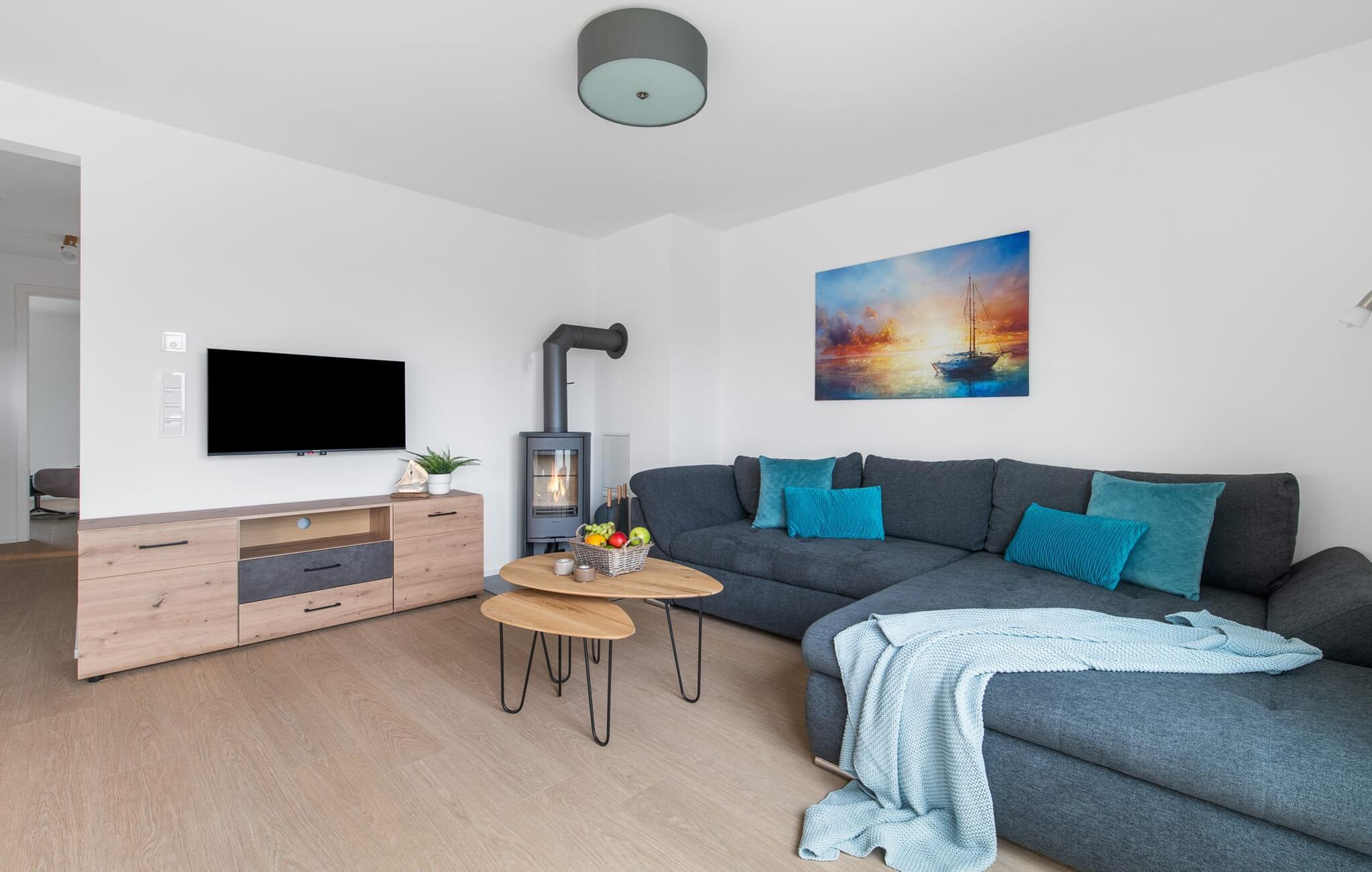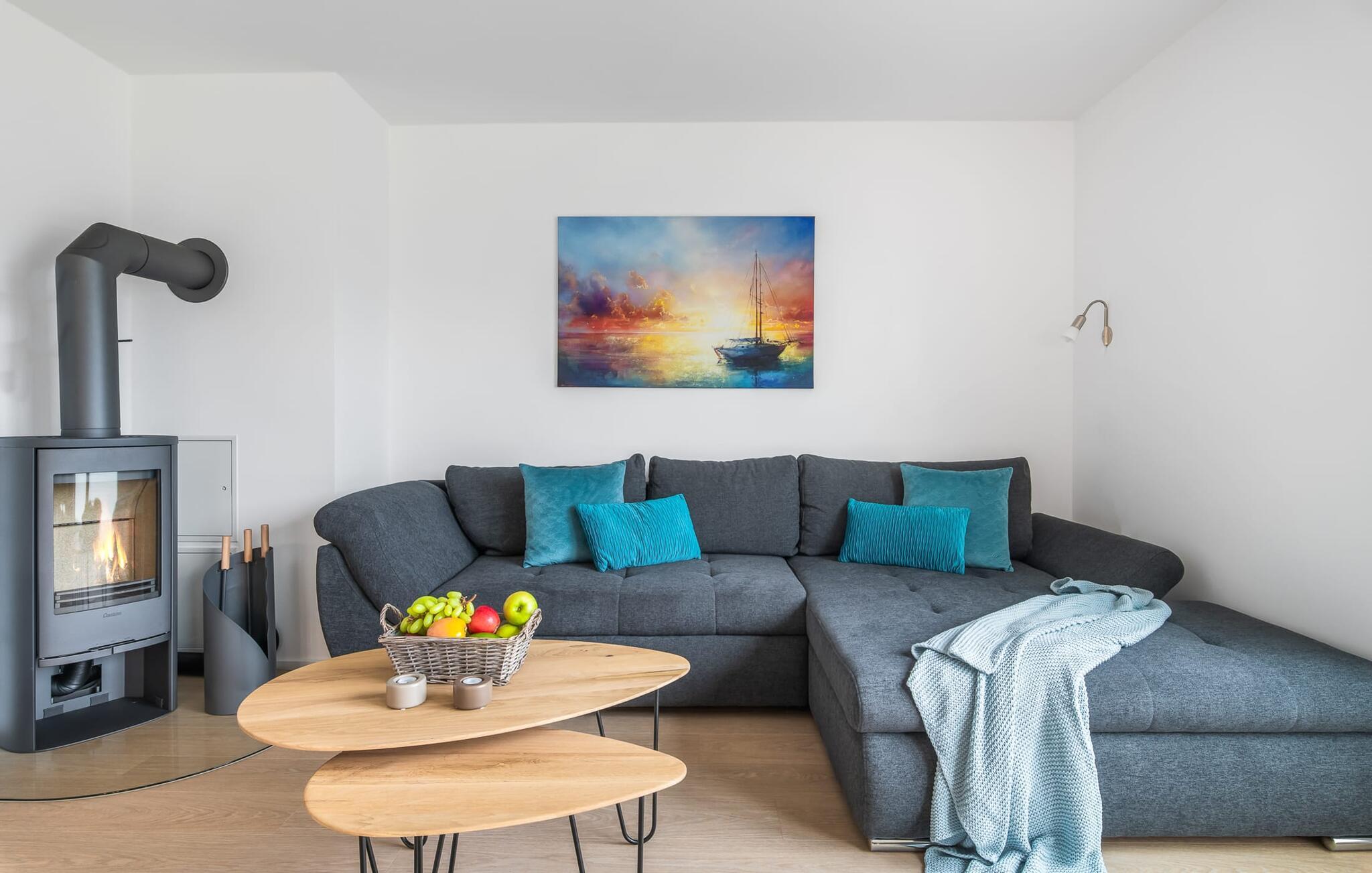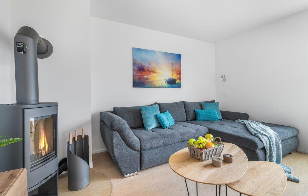 Moderne Ferienwohnung Baltic Home direkt an der Ostsee mit Terrasse, Kaminofen und Infrarotsauna für erholsamen Urlaub.