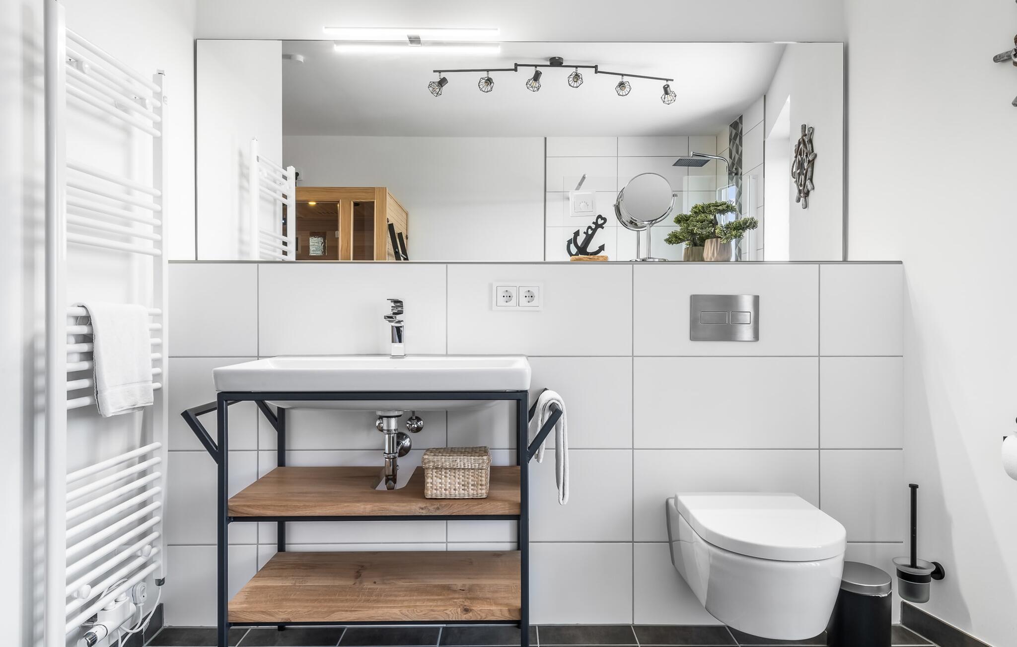 Neben der bequemen Wohnlandschaft mit Fernseher findet ihr einen Kaminofen, sodass ihr auch bei nordischem Schietwetter euren Urlaub genießen könnt. Die Einrichtung der BALTIC PEARL ist nordisch maritim und wird durch Industrial Akzente ergänzt.