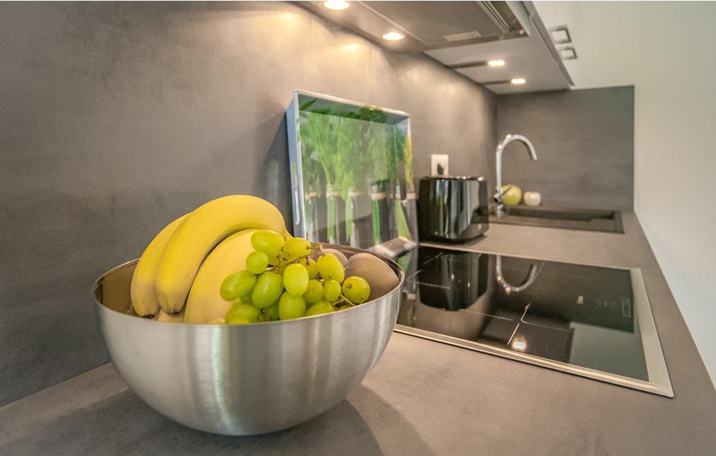 Die offene Küche ist mit hochwertigen Küchengeräten ausgestattet und lässt keine Wünsche offen.