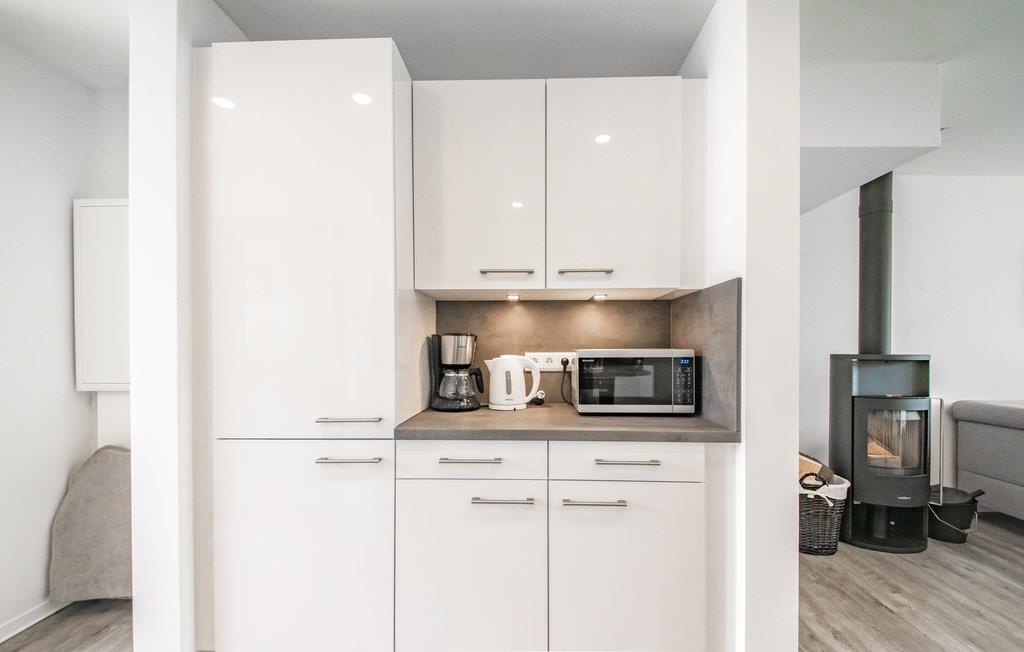 Die offene Küche ist mit hochwertigen Küchengeräten ausgestattet und lässt keine Wünsche offen.