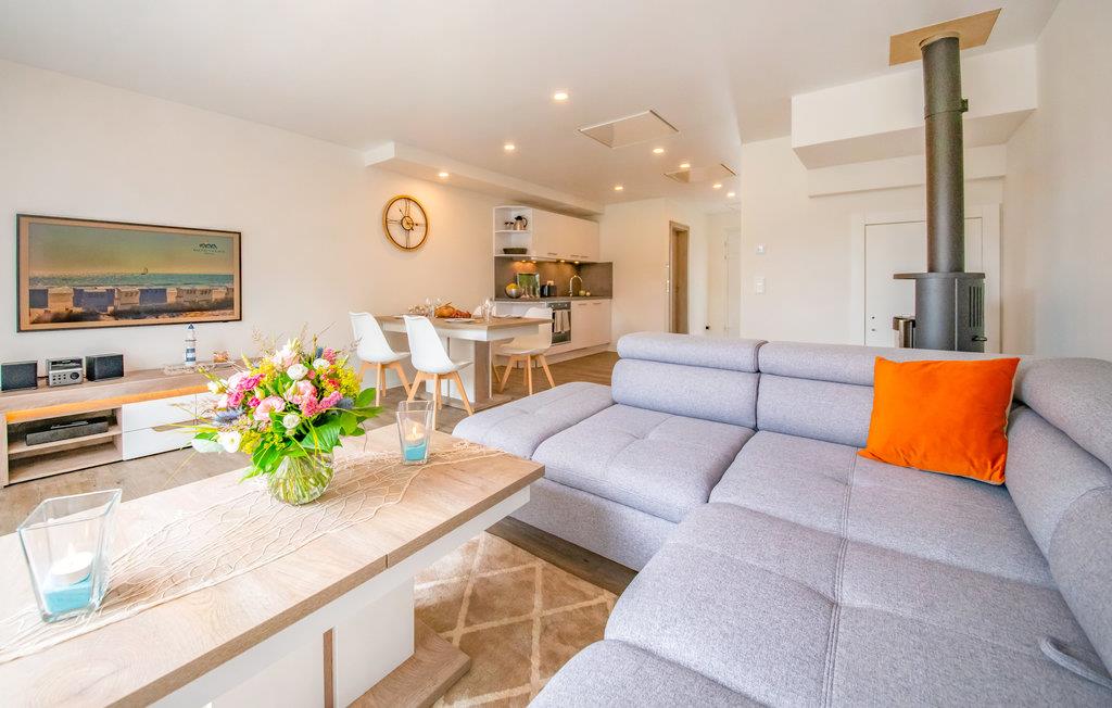 Ein Schlafzimmer ist mit einem Doppelbett, das andere mit einer Schlafcouch ausgestattet. Im Wohnzimmer sowie in den Schlafzimmern befinden sich jeweils ein Samsung Frame TV.