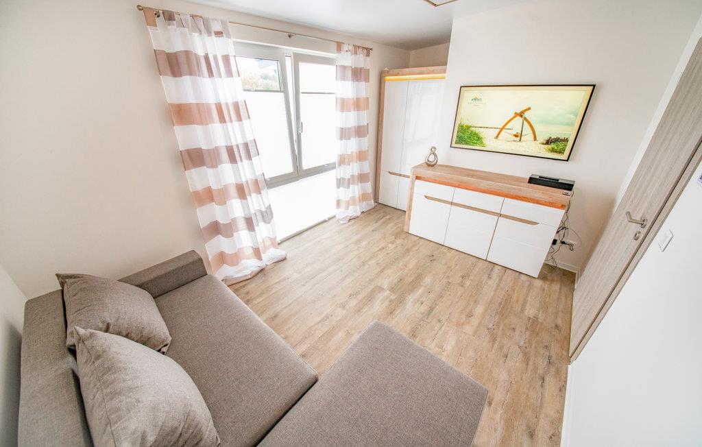 Ein Schlafzimmer ist mit einem Doppelbett, das andere mit einer Schlafcouch ausgestattet. Im Wohnzimmer sowie in den Schlafzimmern befinden sich jeweils ein Samsung Frame TV.