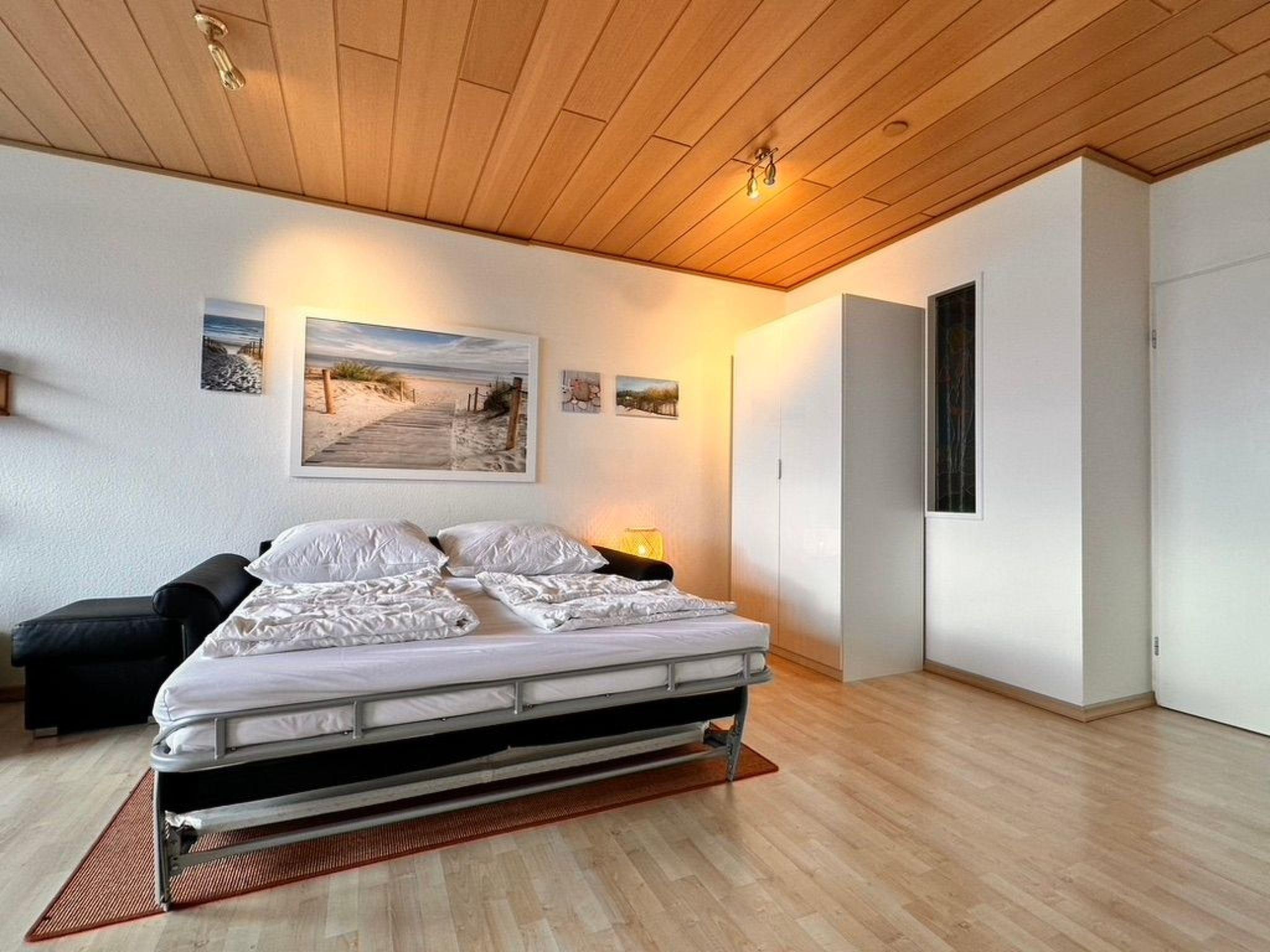 Im Innern der Wohnung erwarten Sie durchdachte Annehmlichkeiten, die Ihren Aufenthalt sowohl komfortabel als auch unterhaltsam gestalten. Zwei Fernseher mit Kabelanschluss, inklusive eines Smart TV, sorgen für entspannte Abende nach einem langen Tag am Strand. Ein DVD-Player und eine Tischlampe mit integriertem Lautsprechersystem bieten zusätzliche Unterhaltungsmöglichkeiten. Für eine angenehme Nachtruhe sorgen ein gemütliches Doppelbett mit hochwertigen Schlaraffia Matratzen sowie ein komfortables Schlafsofa.