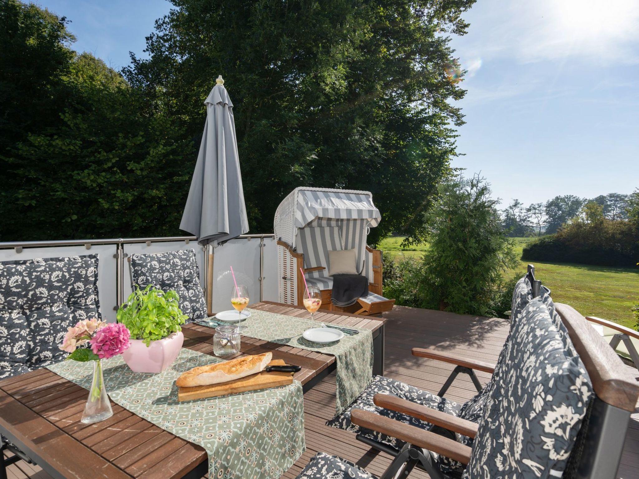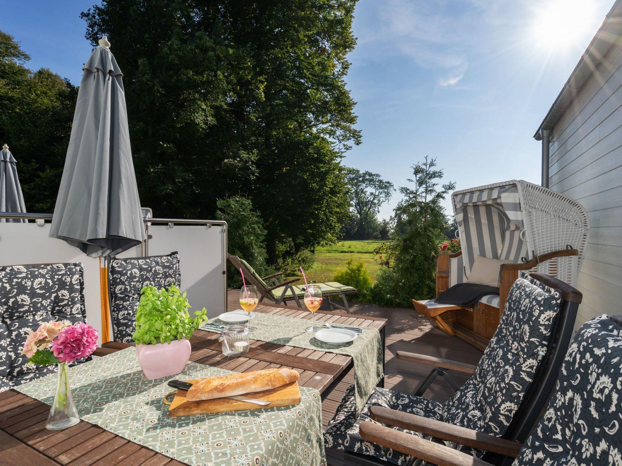 Gemütliche Ferienwohnung mit Kamin und Terrasse am Waldrand in Vitzdorf, ideal für Natur- und Meerliebhaber.