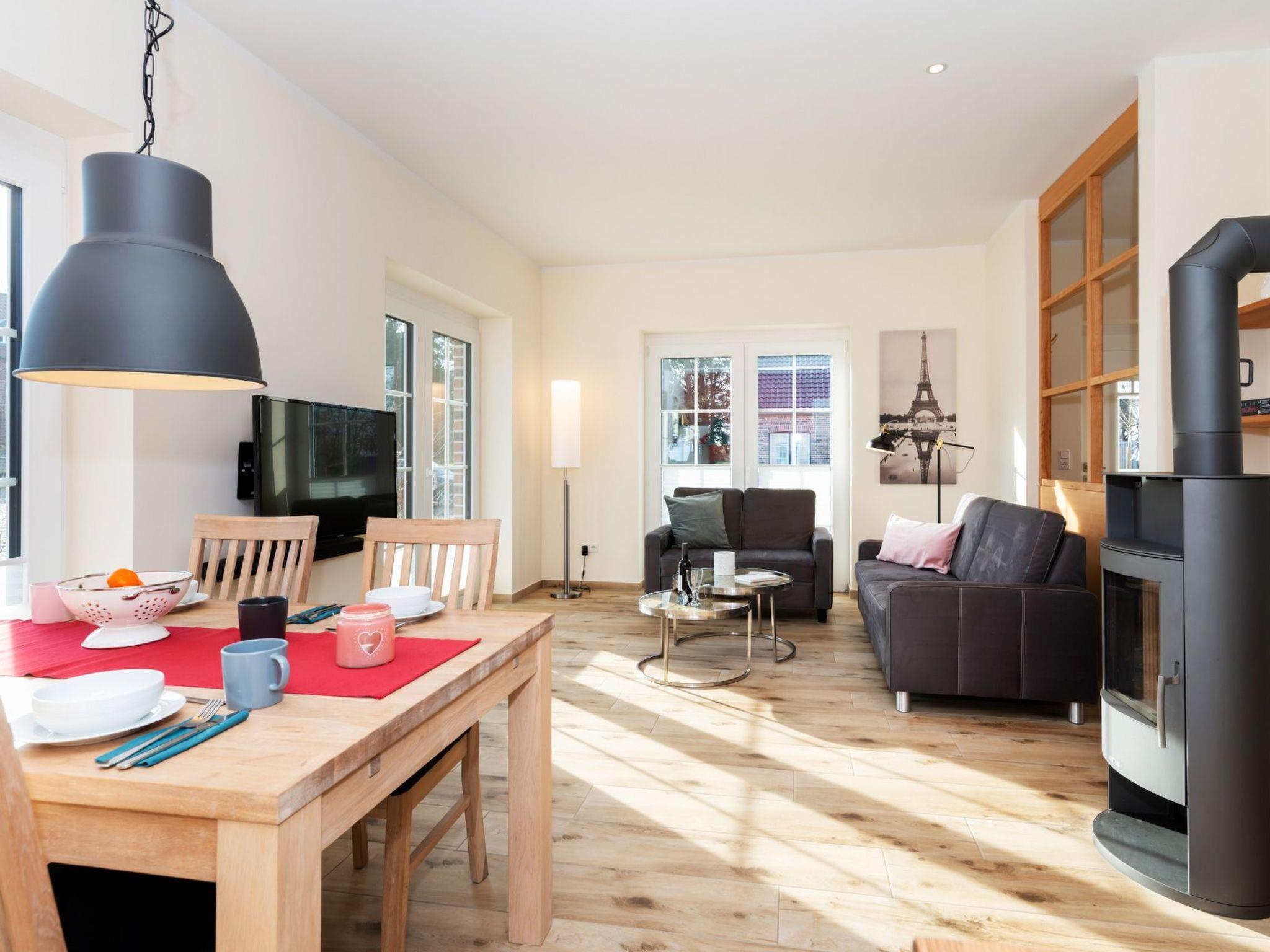 Im Inneren des Hauses erwartet Sie eine wohlige Atmosphäre, unterstützt durch die wärmende Fußbodenheizung, die in jedem Raum für Komfort sorgt. Die technische Ausstattung lässt ebenfalls keine Wünsche offen: Ein Smart-TV lädt zu entspannten Filmabenden ein, während die Waschmaschine zur alleinigen Nutzung sowie eine komplett ausgestattete Küche mit Cerankochfeld, Spülmaschine, Filter-Kaffeemaschine und Wasserkocher Ihnen den Alltag erleichtern. Nicht zu vergessen, der für kinderfreundliche Unterkünfte so wichtige Wickeltisch und der einladende Kamin, der für wohlige Wärme und Gemütlichkeit sorgt.