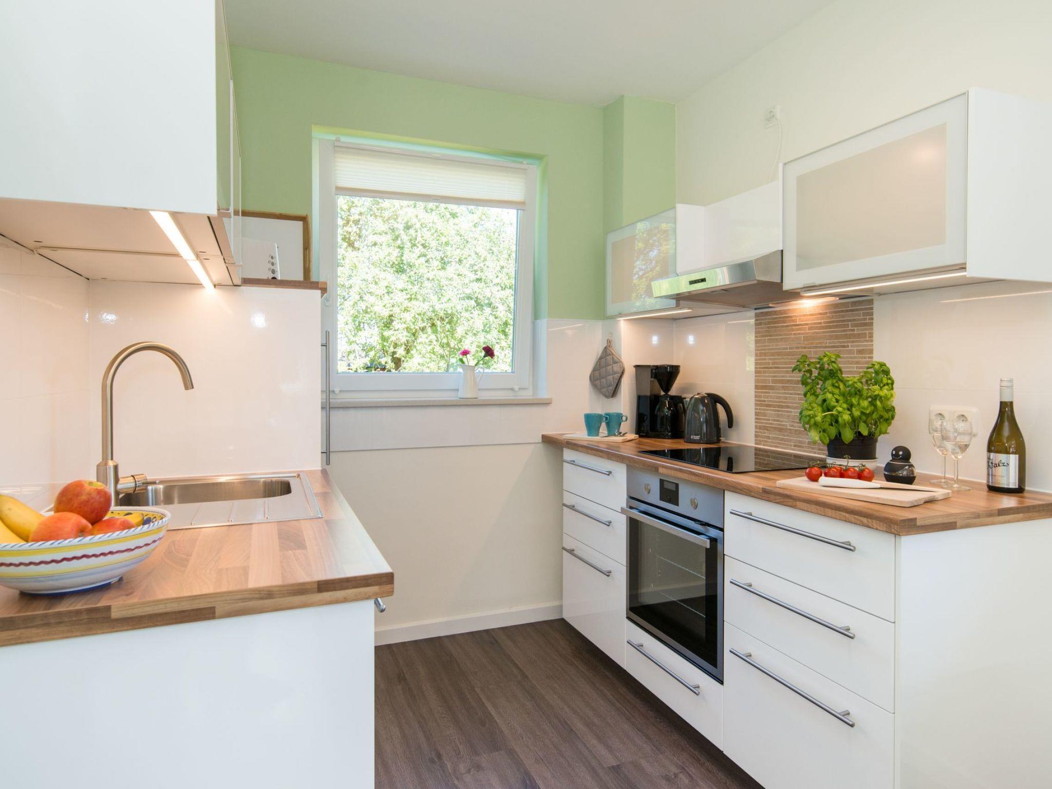 Im Inneren des Hauses erwartet Sie eine vollumfängliche Ausstattung, die keine Wünsche offenlässt. Die beiden gut ausgestatteten Badezimmer verhindern morgendliche Wartezeiten und die Fußbodenheizung sorgt auch an kühlen Tagen für ein angenehmes Wohnklima. In der modern eingerichteten Küche finden Sie einen Induktionsherd, eine Filter-Kaffeemaschine, eine Spülmaschine und einen Wasserkocher vor. Darüber hinaus steht Ihnen eine eigene Waschmaschine zur Verfügung. Für gemütliche Abende bietet sich der Kamin an, während ein Wickeltisch den Aufenthalt für Familien mit Kleinkindern erleichtert.