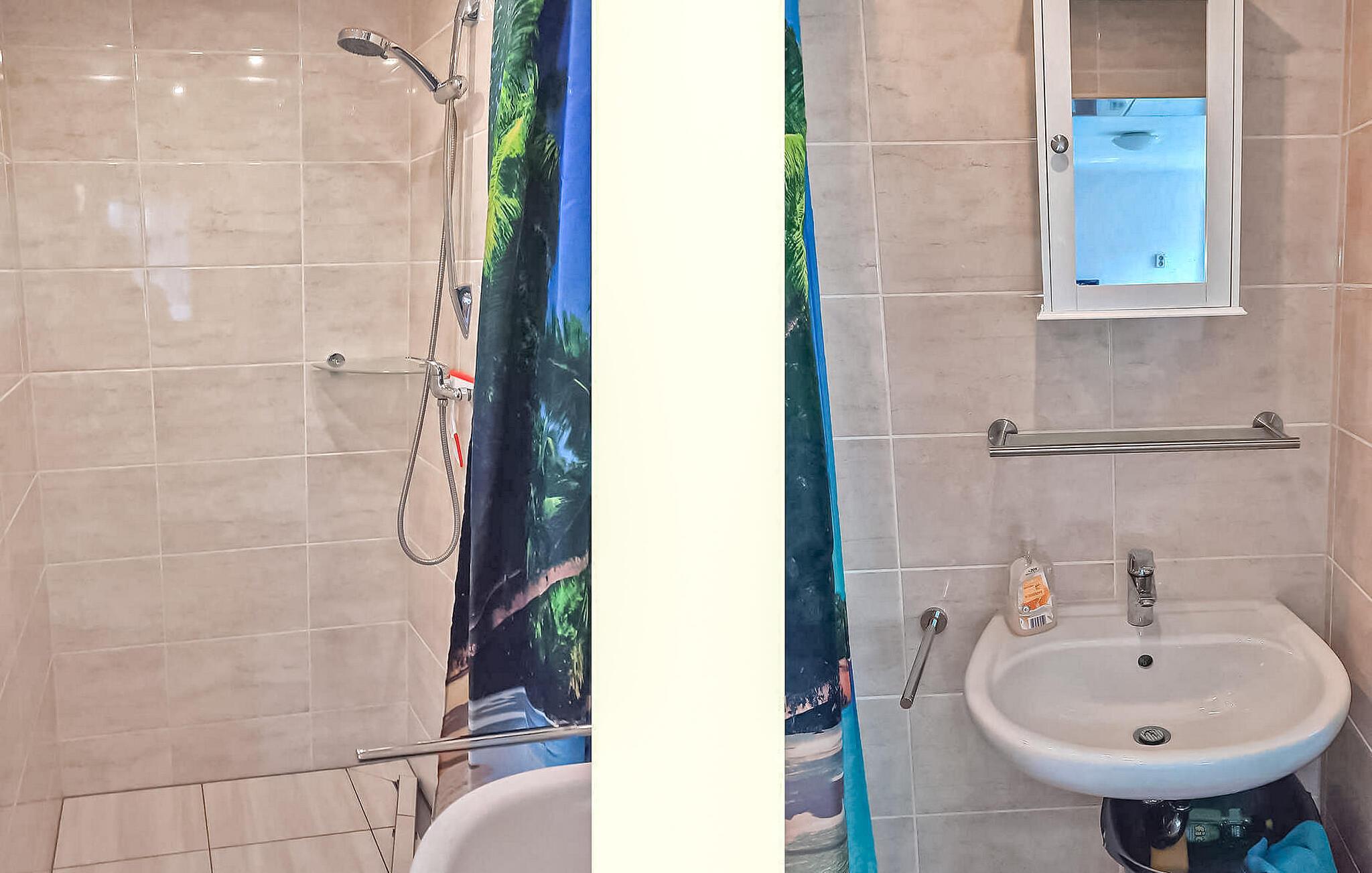 Badezimmer (nr. 1) - WC. Warmes und kaltes Wasser. Dusche