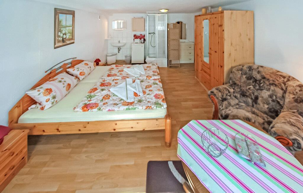 Die beiden Ferienzimmer, dieses mit 1 x Doppelzimmer mit integrierter Dusche und DZV466 (2-Zimmer-Wohnung mit integrierter Dusche) befinden sich im Keller des Hauses des Eigentümers, ca. 1 km vom Ostseestrand entfernt. Separater Zugang über eine steile Treppe. Das WC (Mitbenutzung) und ein kleiner Raum mit diversen Küchengeräten (Kühlschrank, Elektroherd etc.) sind räumlich von den Ferienzimmern getrennt und über den gemeinsamen Flur zu erreichen. Es gibt eine möblierte Terrasse mit Grill, Abstellmöglichkeiten für Fahrräder und einen Parkplatz. Im Gesamtpreis sind Bettwäsche, Handtücher, Wasser- und Energieverbrauch sowie die Endreinigung enthalten. Vor Ort zu zahlen: Kurtaxe, WLAN 5 EUR. Insgesamt handelt es sich bei der Unterkunft um eine einfache Übernachtungsmöglichkeit für Kurzaufenthalte. Hohe Komfortansprüche werden nicht erfüllt. Aufgrund der gemeinsamen Nutzung von Toilette und Kochgelegenheit empfiehlt es sich, beide Räume komplett zu buchen.