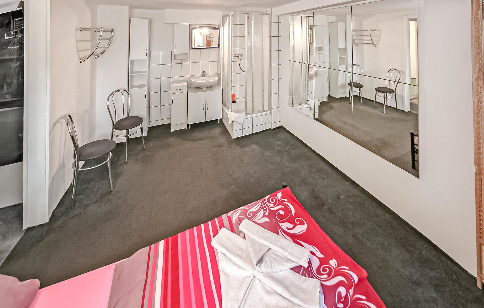 Die beiden Ferienzimmer, diese 2-Zimmer-Wohnung mit integrierter Dusche und DZV465 mit 1 Doppelzimmer mit integrierter Dusche, befinden sich im Keller des Hauses des Eigentümers, ca. 1 km vom Ostseestrand entfernt. Separater Zugang über eine steile Treppe. Das WC (Mitbenutzung) und ein kleiner Raum mit diversen Küchengeräten (Kühlschrank, Elektroherd etc.) sind räumlich von den Ferienzimmern getrennt und über den gemeinsamen Flur zu erreichen. Es gibt eine möblierte Terrasse mit Grill, Abstellmöglichkeiten für Fahrräder und einen Parkplatz. Im Gesamtpreis sind Bettwäsche, Handtücher, Wasser- und Energieverbrauch sowie die Endreinigung enthalten. Vor Ort zu zahlen: Kurtaxe, WLAN 5 EUR. Insgesamt handelt es sich bei der Unterkunft um eine einfache Übernachtungsmöglichkeit für Kurzaufenthalte. Hohe Komfortansprüche werden nicht erfüllt. Aufgrund der gemeinsamen Nutzung von Toilette und Kochgelegenheit empfiehlt es sich, beide Räume komplett zu buchen.