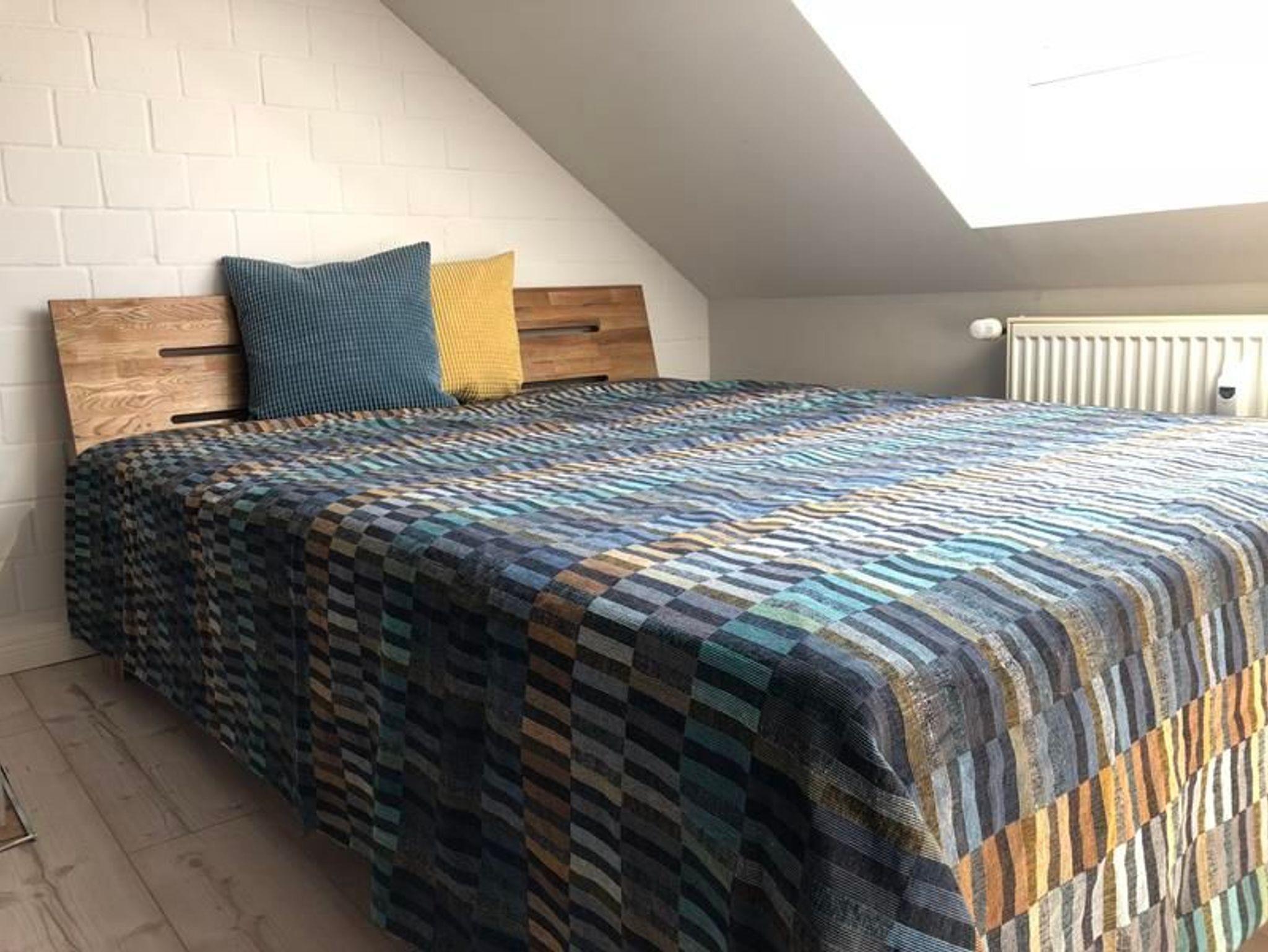 Im Dachgeschoss sind ein Doppelbett (1,40 m) mit Fernseher, ein Einzelbett und eine kleine Sitzecke.