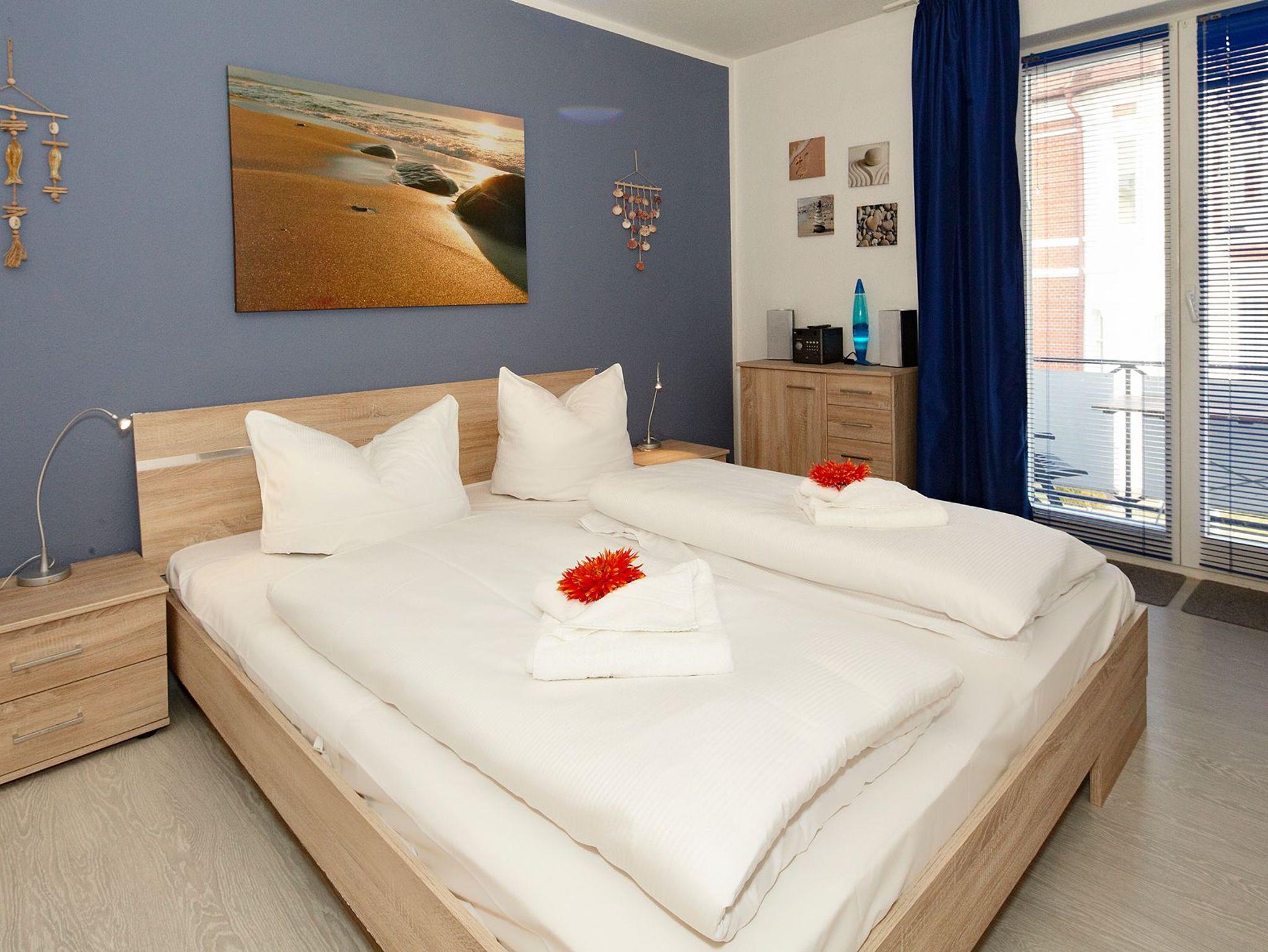 Im Schlafzimmer steht neben dem Bett ein großer Kleiderschrank mit genügend Platz für Ihre Urlaubsgarderobe zur Verfügung. Der Balkon ist möbliert und wird gerne von unseren Gästen genutzt um den Tag unter freiem Himmel bei einem Gläschen Wein ausklingen zu lassen.