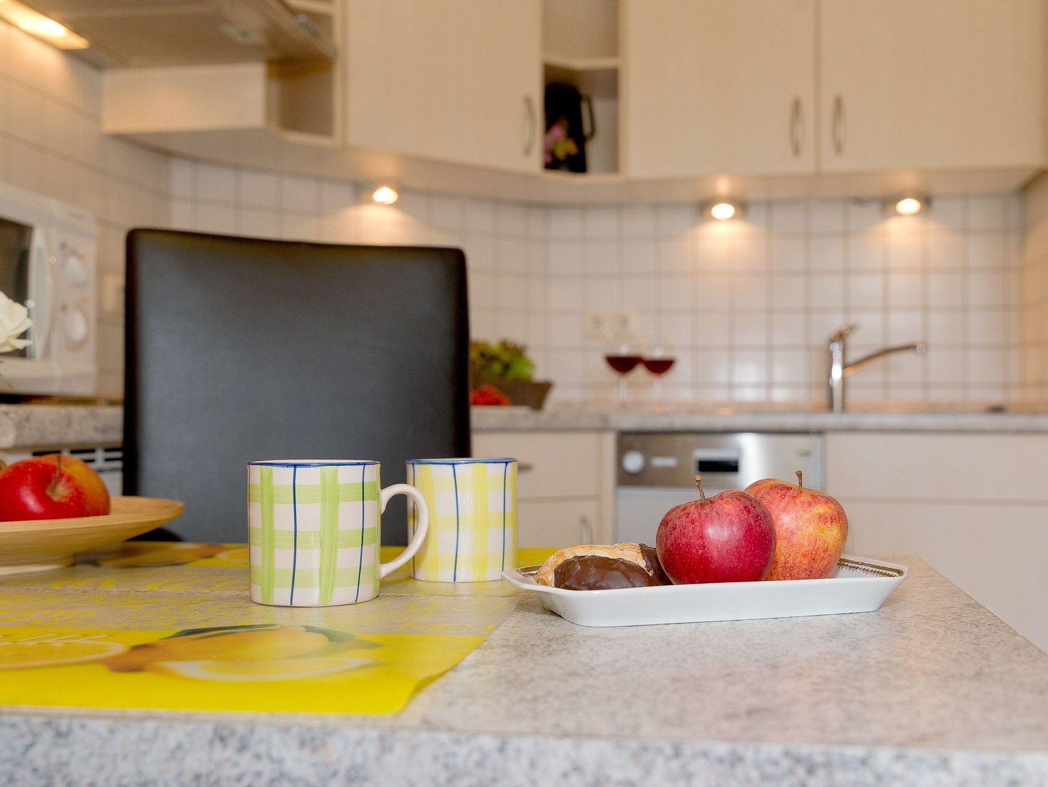 Das helle Zwei-Zimmer-Appartement befindet sich im Erdgeschoss und bietet mit einer Größe von 40 Quadratmetern ausreichend Platz für einen erholsamen Urlaub mit bis zu vier Personen.