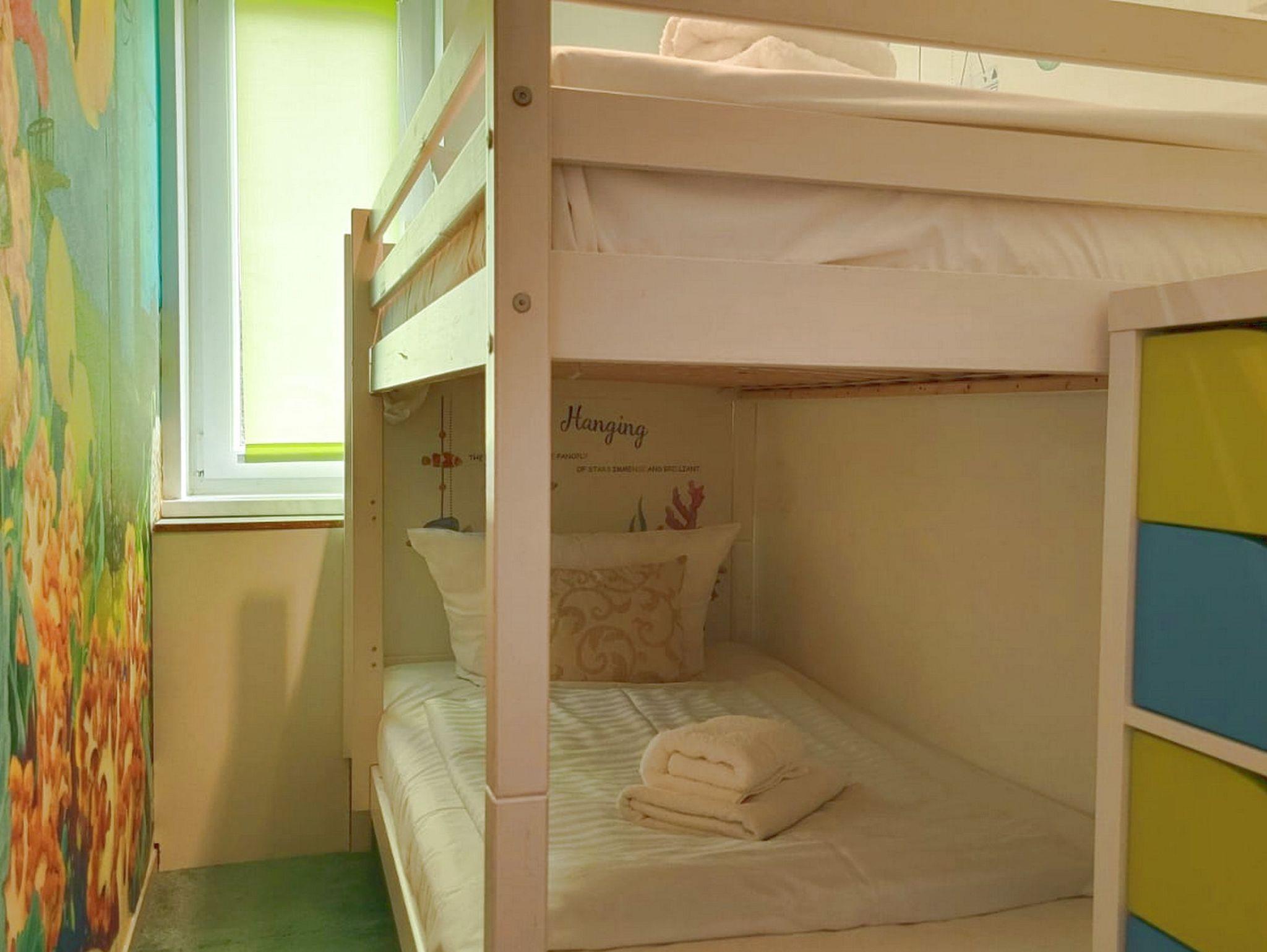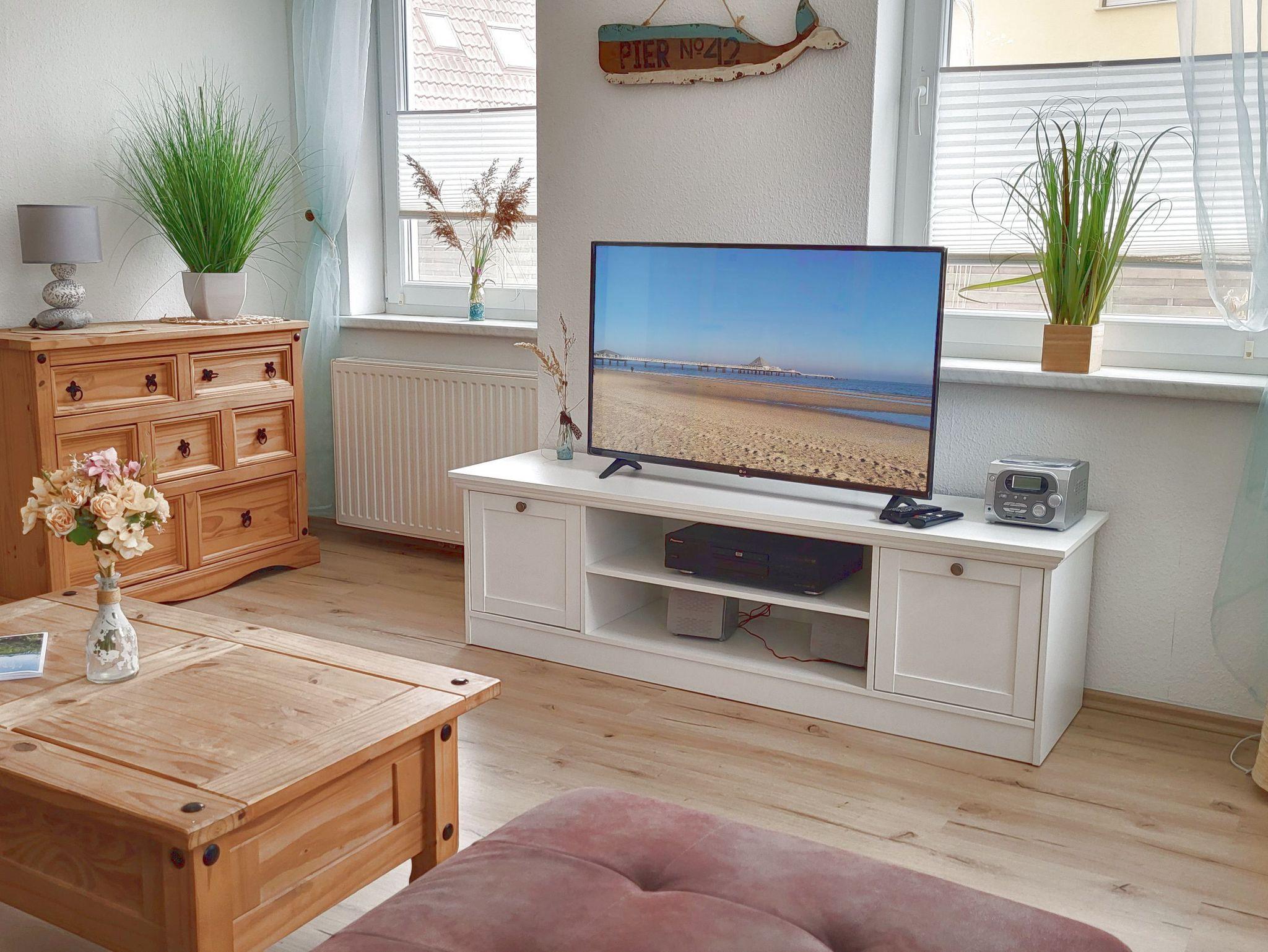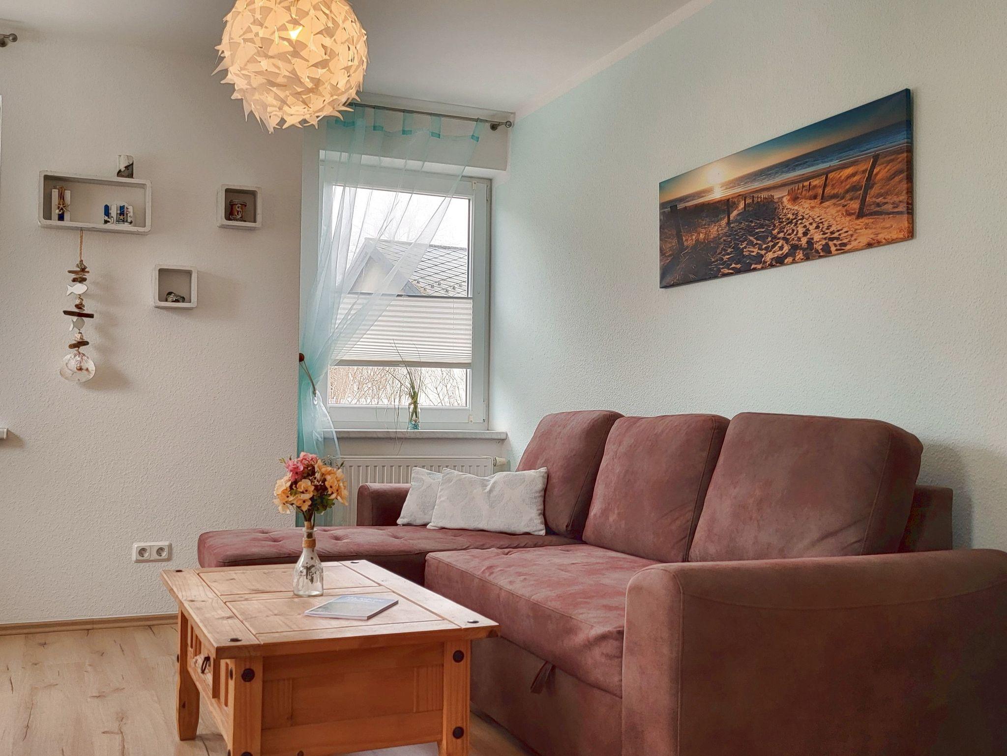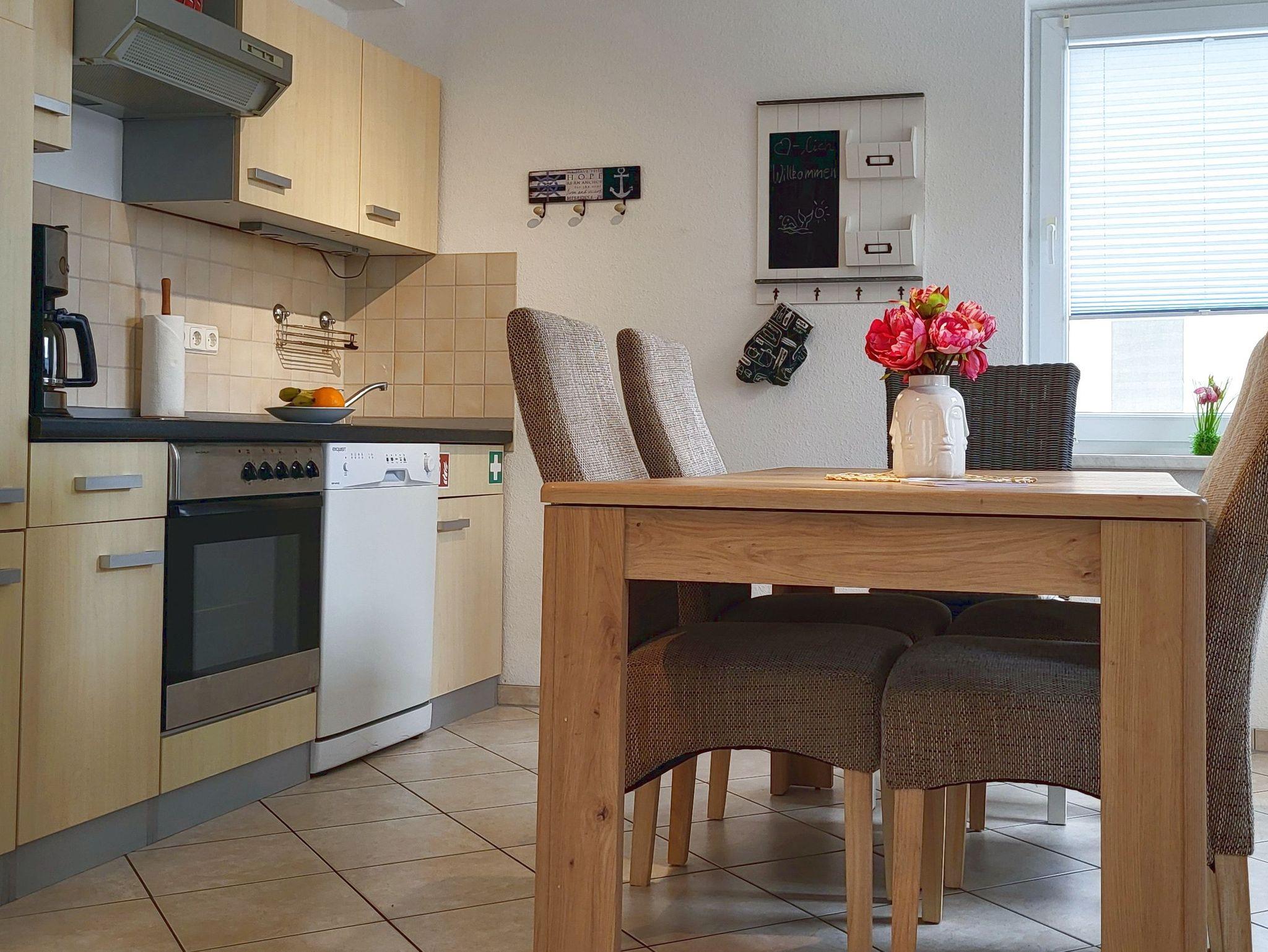 Der Wohnraum ist mit einer bequemen Couch, Flat TV und DVD-Player ausgestattet, sodass Sie sich zu gemütlichen Stunden nach einem erlebnisreichen Urlaubstag in Ihr Feriendomizil zurückziehen können. Die voll ausgestattete Küche ergänzt die Annehmlichkeiten dieses Appartements mit allem, was das Herz begehrt: Backofen, Cerankochfeld, Kühlschrank, Spülmaschine, Toaster, Wasserkocher und Kaffeemaschine. An dem Essplatz können Sie die zubereiteten Speisen genießen und den Urlaubstag in Ruhe ausklingen lassen. Im freundlich eingerichteten 1. Schlafzimmer erwartet Sie ein bequemes Doppelbett (180 x 200cm). Im 2. Schlafzimmer befindet sich für unsere kleineren Gäste (bis 12 Jahre) ein Etagenbett (je 110 x 200cm). Das Sofa im Wohnbereich kann mit einer ausgeklappten Liegefläche (140 x 200cm) ebenfalls für zwei weitere Personen als Schlafgelegenheit genutzt werden.