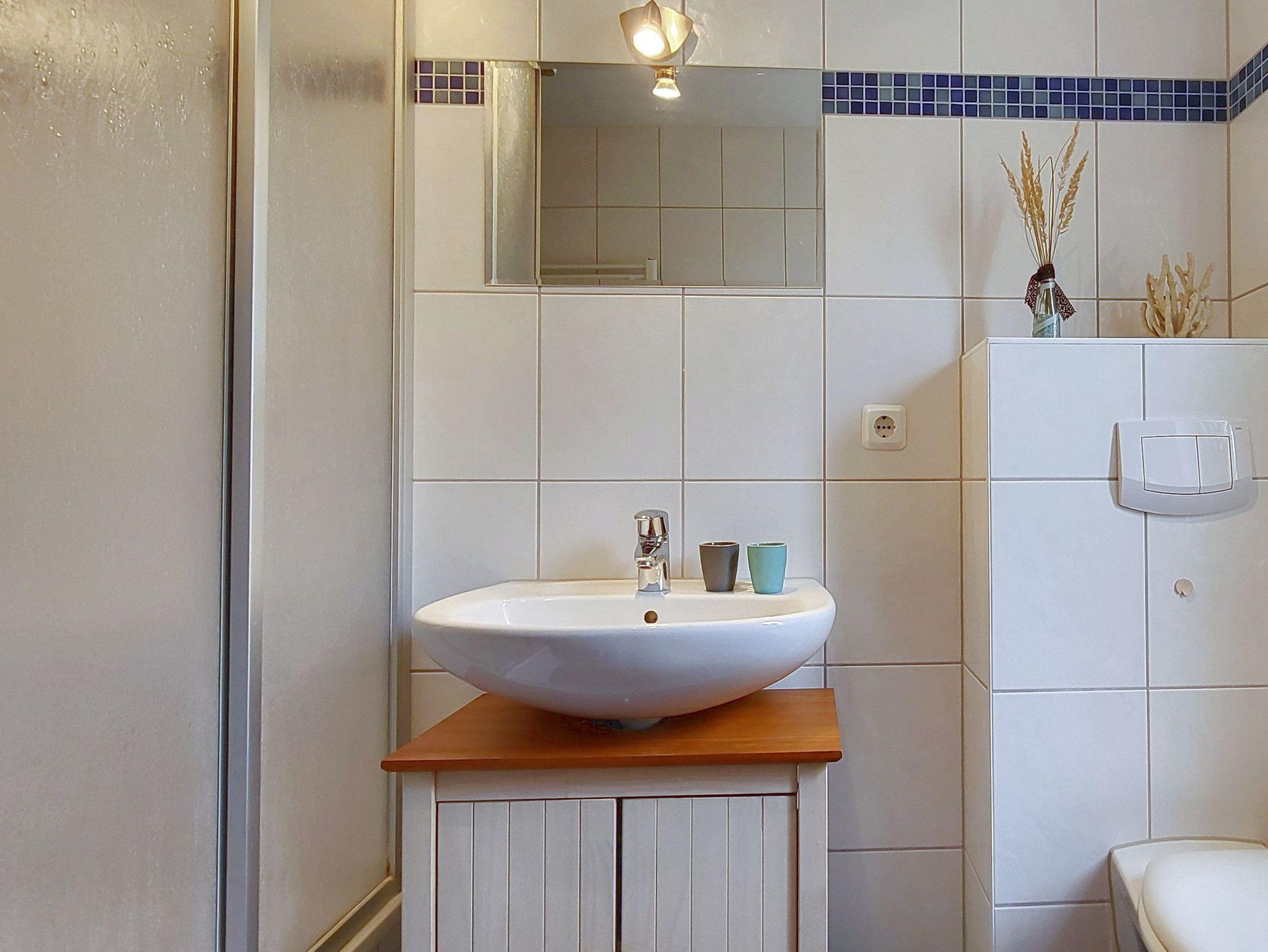Damit Sie Ihre wohlverdiente Urlaubszeit bereits am Anreisetag in vollen Zügen genießen können, haben wir das Bett für Sie und das für Ihre lieben Mitreisenden bereits bezogen und ein Duschtuch sowie ein kleines Handtuch bereitgelegt. Das Badezimmer ist mit Dusche, WC und Fußbodenheizung ausgestattet.