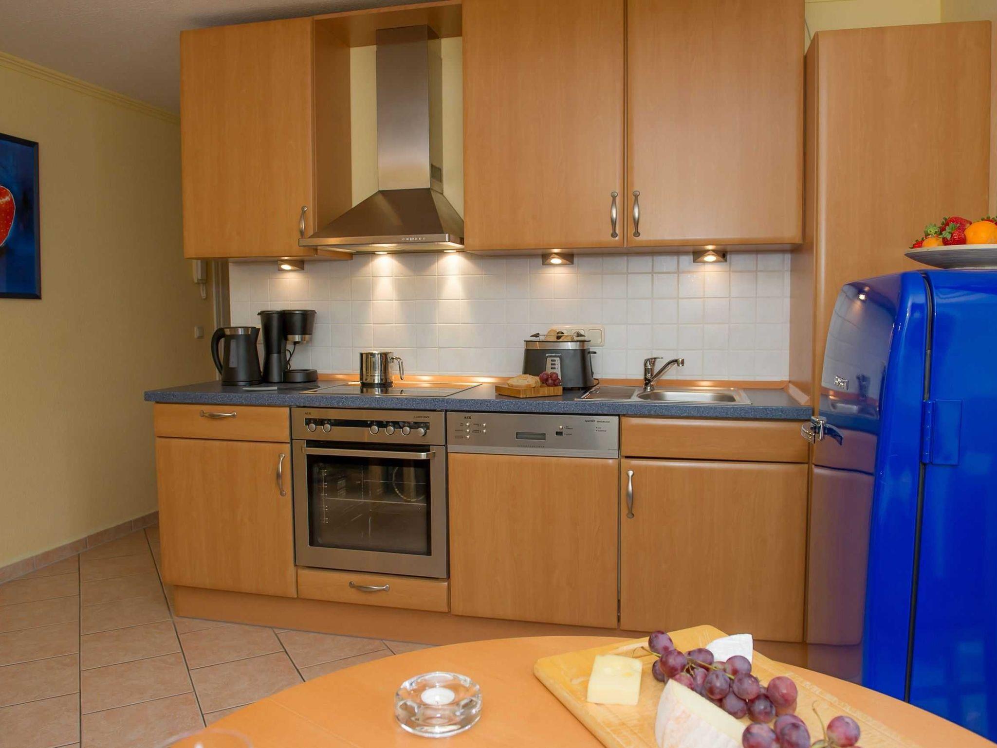 Alle Wohnungen sind modern und komfortabel eingerichtet. Die Qualitäts-Einbauchküchen sind mit Cerankochfeld, Mikrowelle, Backofen und Spülmaschine ausgestattet. Es gibt Wasch? und Trockenmöglichkeiten im Haus. Ein Pkw-Stellplatz ist jeder Wohnung zugehörig und befindet sich auf dem 50 m entfernten Parkplatz. Haustiere sind z. T. auf Anfrage erlaubt.