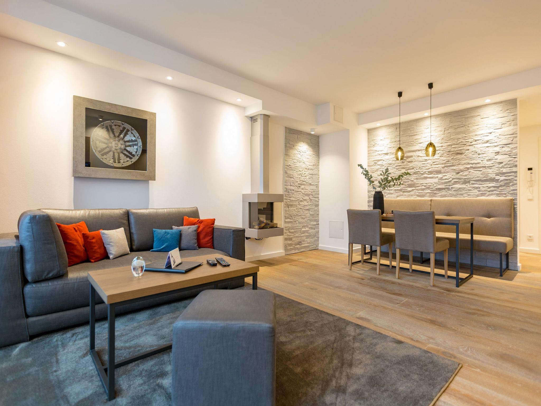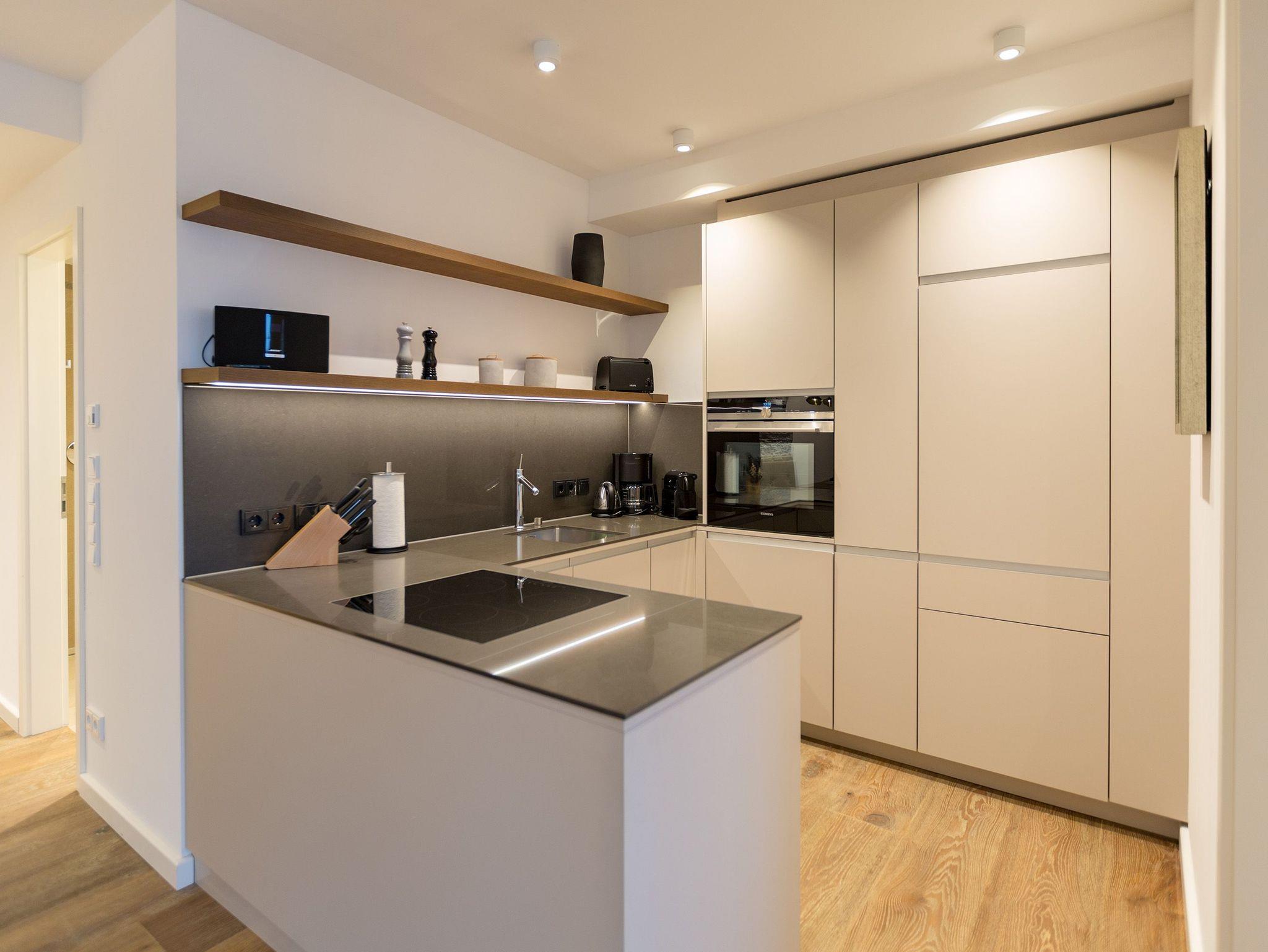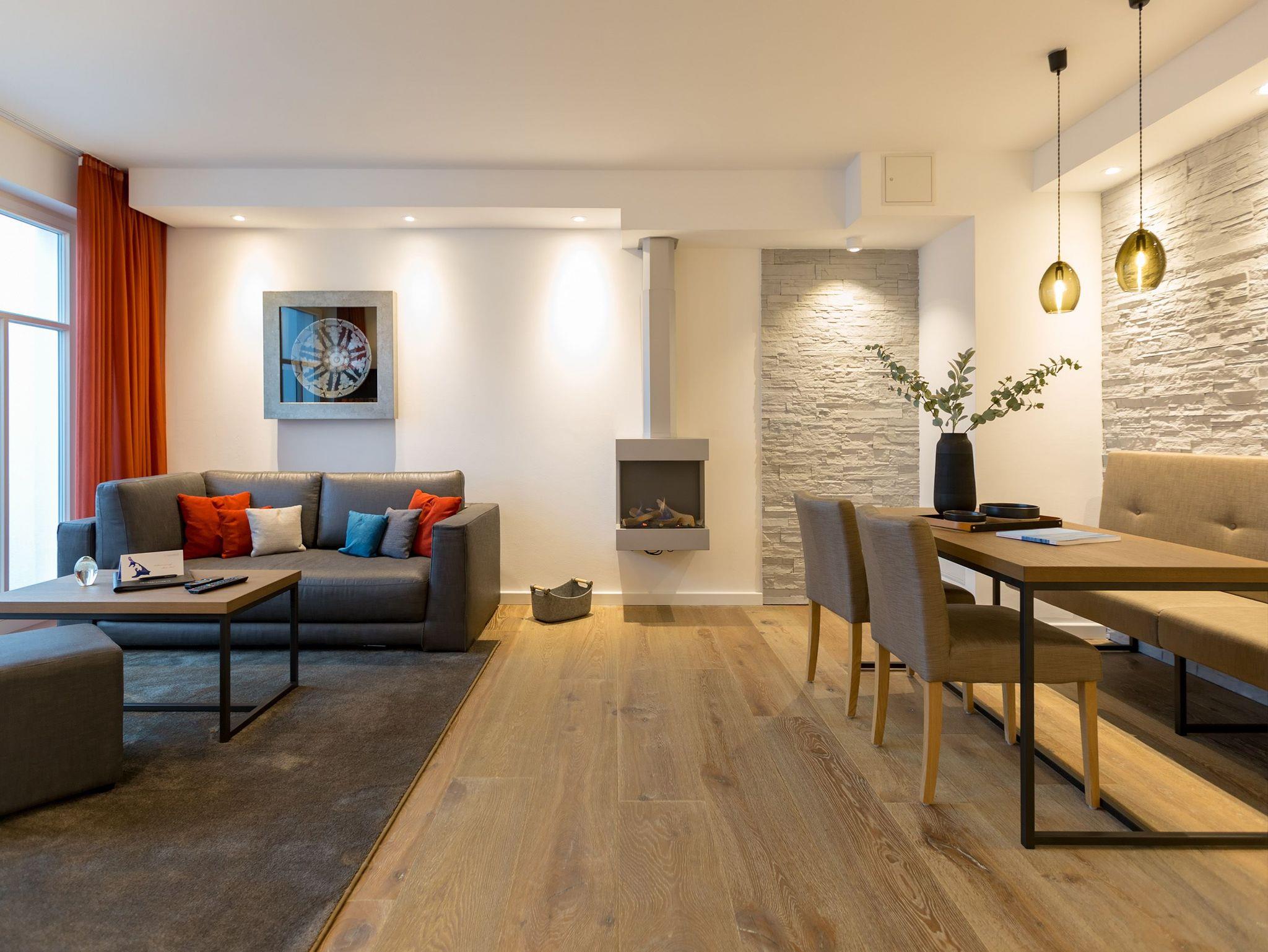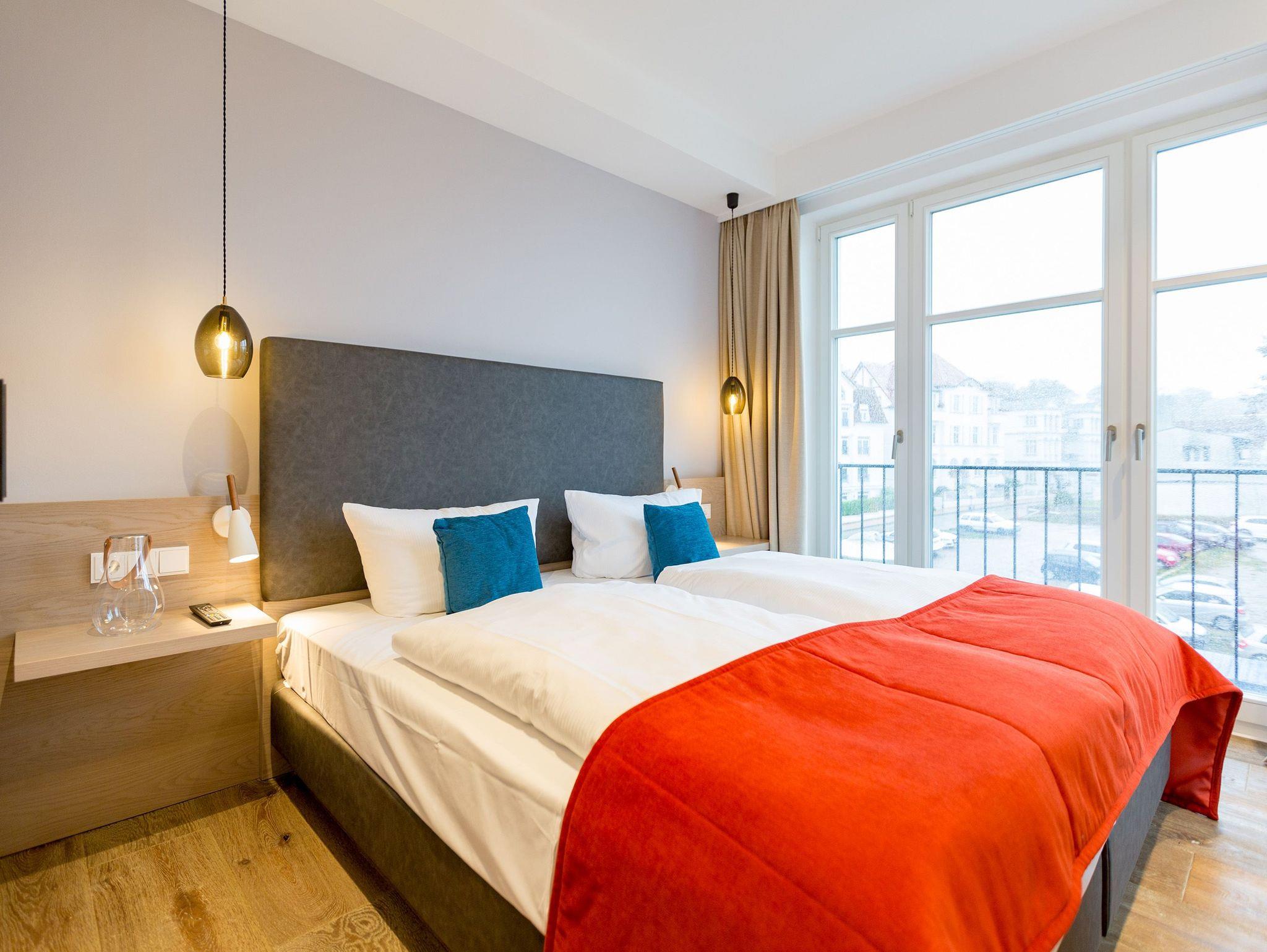 Reinkommen, durchatmen und wohlfühlen so schnell geht das Ankommen in diesem wunderschönen Urlaubsdomizil in der 3. Etage. Zwei helle und von Designerhand konzipierte Räume warten nur darauf, Ihnen die Urlaubszeit an der Ostsee so komfortabel und erholsam wie möglich zu machen. In dem 53 Quadratmeter großen Paradies ist Platz für zwei Personen und ein Kleinkind bis drei Jahre (im Kinderreisebett). Holz, Stein, edle Stoffe Materialien, die für eine wunderbar warme Atmosphäre sorgen. Dezente Farbtupfer lockern auf. Die bodentiefen Fenster lassen viel Licht ins Innere. Vom Wohnzimmer können Sie direkt auf den kleinen Balkon (7 Quadratmeter) mit Nordwest-Ausrichtung hinaustreten und die Ostseeweite in sich aufnehmen. Gönnen Sie Ihren Augen einen entspannenden Blick und Ihrer Nase einen tiefen Atemzug der frischen Meeresbrise. Das Interieur der beiden Zimmer ist stilvoll und elegant. Ein bequemes Sofa, ein schöner Essplatz, ein großer Flat-TV, eine Bose-Anlage mit Bluetooth, ein Kamin, bei dem Sie per Knopfdruck kuschelige Wärme produzieren können was will man mehr. Ein durchdachtes Lichtdesign bringt Licht an genau die richtigen Stellen. In der offenen Wohnküche lässt es sich ausgesprochen gut kochen. Denn die Geräte sind hochwertige Markengeräte. Hier finden Sie alles, was Sie brauchen, unter anderem auch edles Geschirr. Doch die Entspannung im Urlaub hört nicht an der Schlafzimmertür auf. Ein komfortables Boxspringdoppelbett (1,80 m x 2,00 m) und ein weiterer Flat-TV bringen Auszeitvergnügen auch hier. Vom Schlafzimmer aus haben Sie ebenfalls einen Zugang zum Balkon. Ein geräumiger Schrank bietet viel Stauraum. Im Badezimmer bringt Sie eine Finnische Sauna gehörig ins Schwitzen. Abkühlen können Sie sich nach dem Hitzegang unter der Regendusche, die natürlich auch warmes Wasser zu bieten hat. Ein Waschtisch und ein WC gehören außerdem zur Ausstattung des Bades. Wollen Sie Ihre Sachen auch im Urlaub einmal waschen, können Sie das mittels des Wasch-Trockners im kleinen Hauswirtschaftsraum. Rundum sorglos heißt auch, dass bei Anreise die Betten bereits bezogen sind, Handtücher für Sie bereit liegen und das WLAN in der Wohnung kostenfrei ist. Ihr Auto können Sie auf dem für dieses Appartement vorgesehenen Stellplatz 27 abstellen.