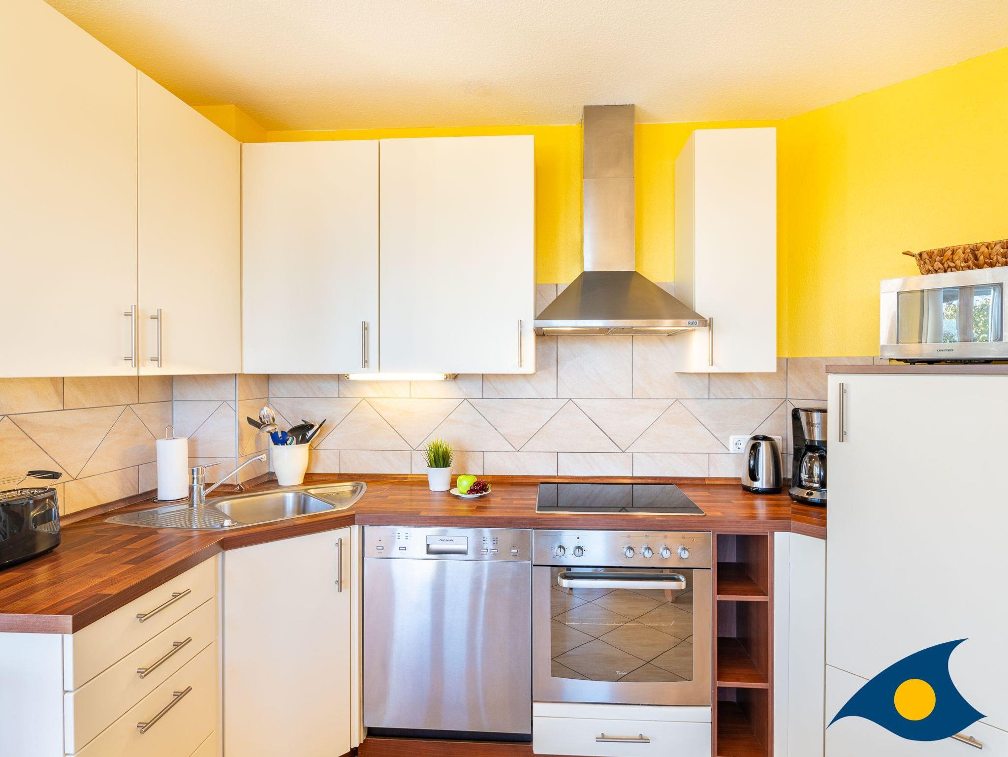 Die großzügige Terrasse und die östlich gelegene Loggia gestatten freie Sicht auf das Meer. Die Wohnung wurde familienfreundlich eingerichtet und ist mit ihrem direkten Promenadenzugang sehr gut für Senioren geeignet.