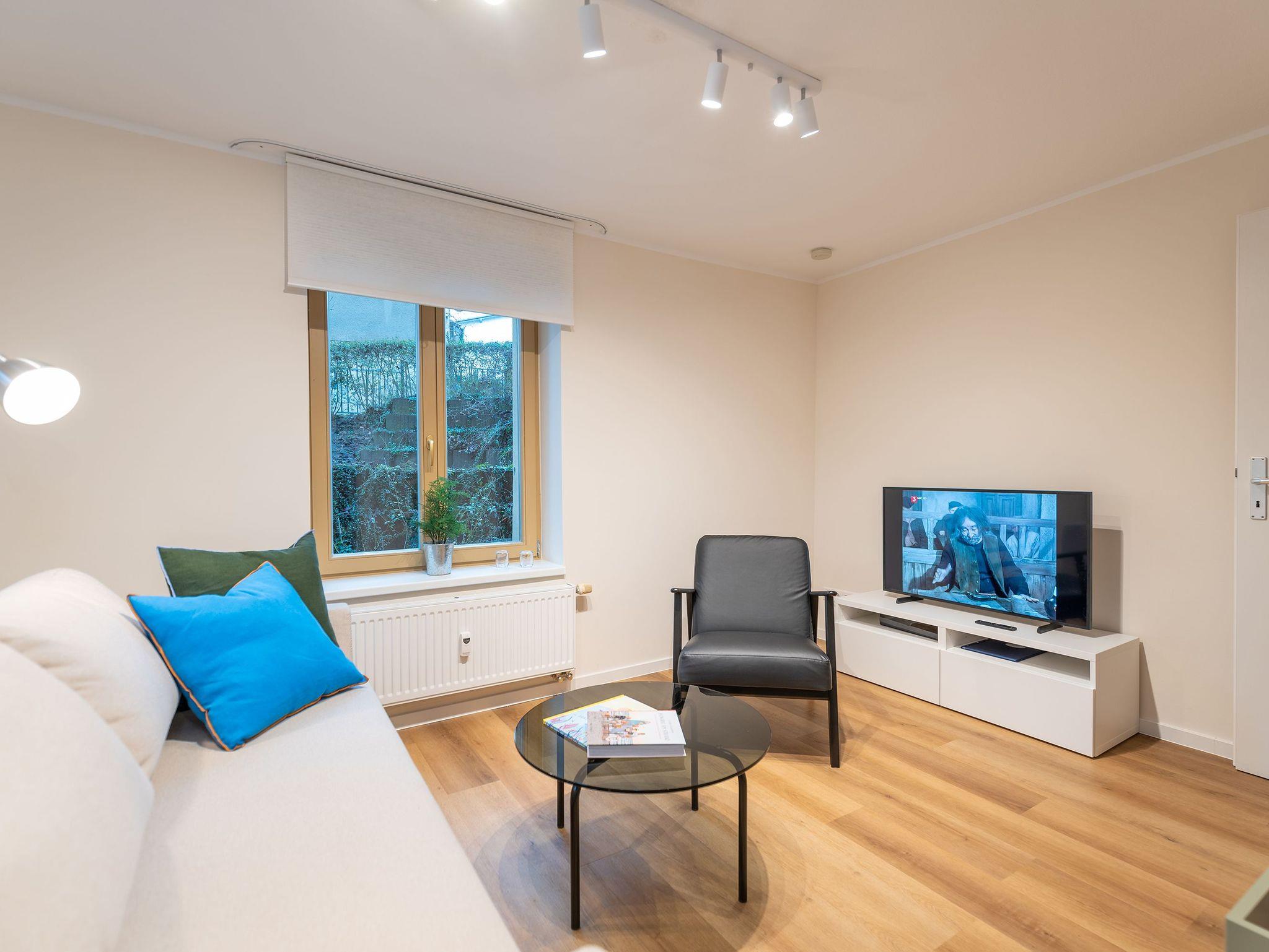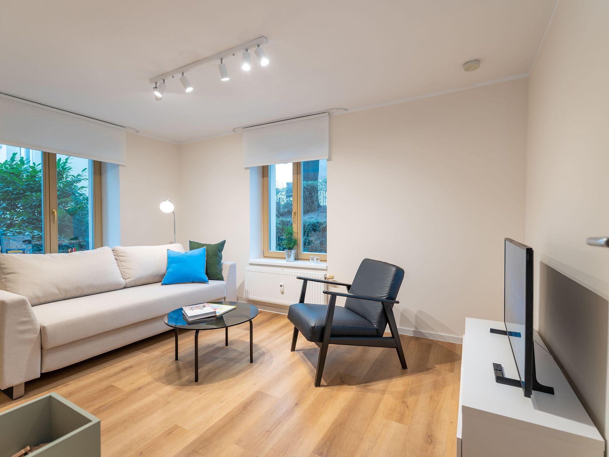 Das Appartement empfängt Sie mit einem offenen Wohn- und Essbereich, der modernen Komfort und Gemütlichkeit vereint. In der gut ausgestatteten Küche mit Esstisch lassen sich mühelos kleine und große Mahlzeiten zubereiten. Die angrenzende Wohnlandschaft verfügt über eine Schlafcouch und einen Flachbild-TV ? perfekt für entspannte Stunden oder eine zusätzliche Schlafgelegenheit.