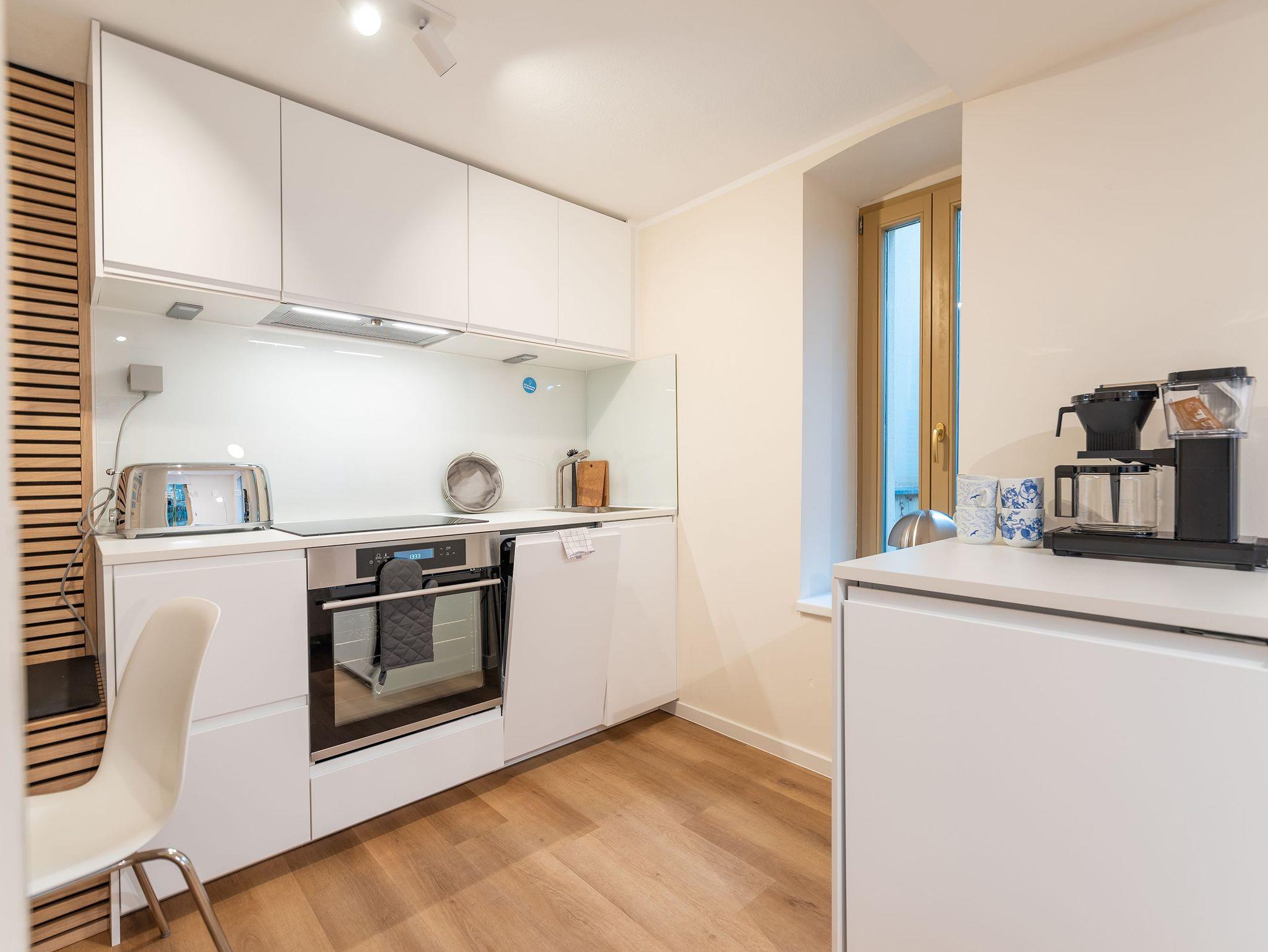 Das Appartement empfängt Sie mit einem offenen Wohn- und Essbereich, der modernen Komfort und Gemütlichkeit vereint. In der gut ausgestatteten Küche mit Esstisch lassen sich mühelos kleine und große Mahlzeiten zubereiten. Die angrenzende Wohnlandschaft verfügt über eine Schlafcouch und einen Flachbild-TV perfekt für entspannte Stunden oder eine zusätzliche Schlafgelegenheit.