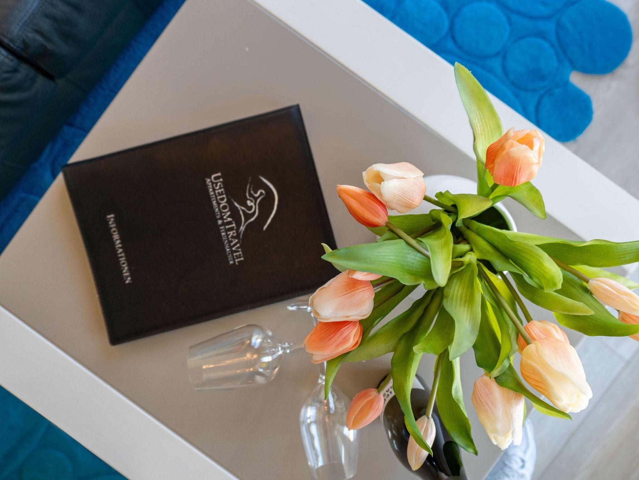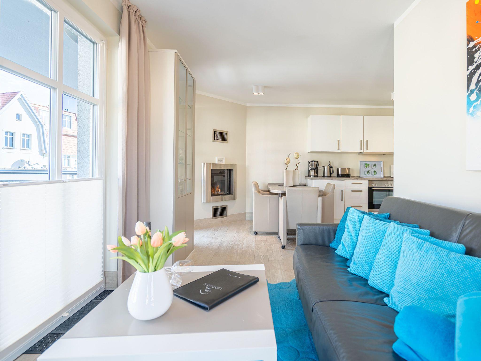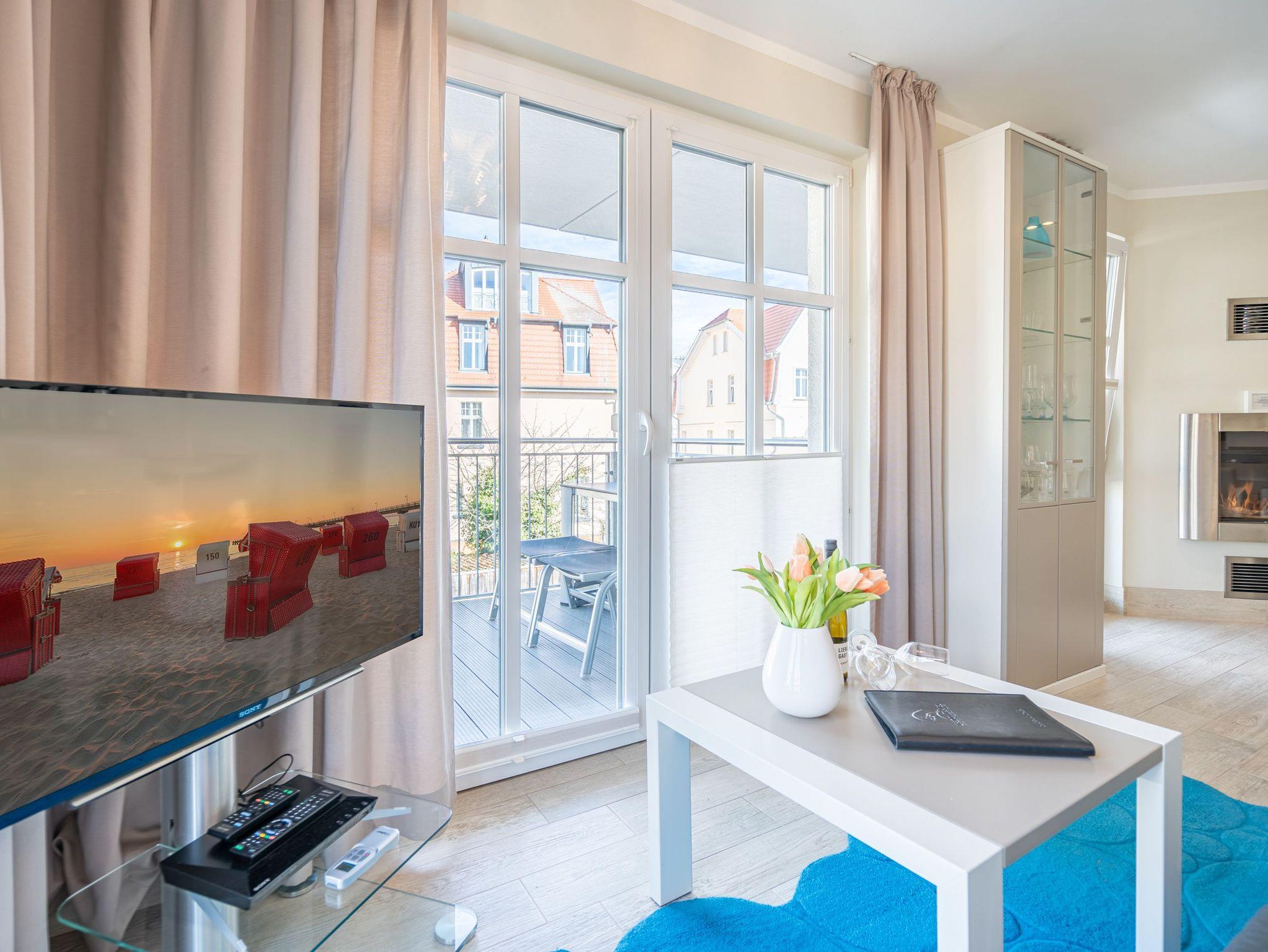 Stilvolle 3-Raum-Ferienwohnung mit Balkon, Gas-Kamin und kostenfreiem WLAN im Seebad Bansin, nur 220 m vom Strand entfernt.