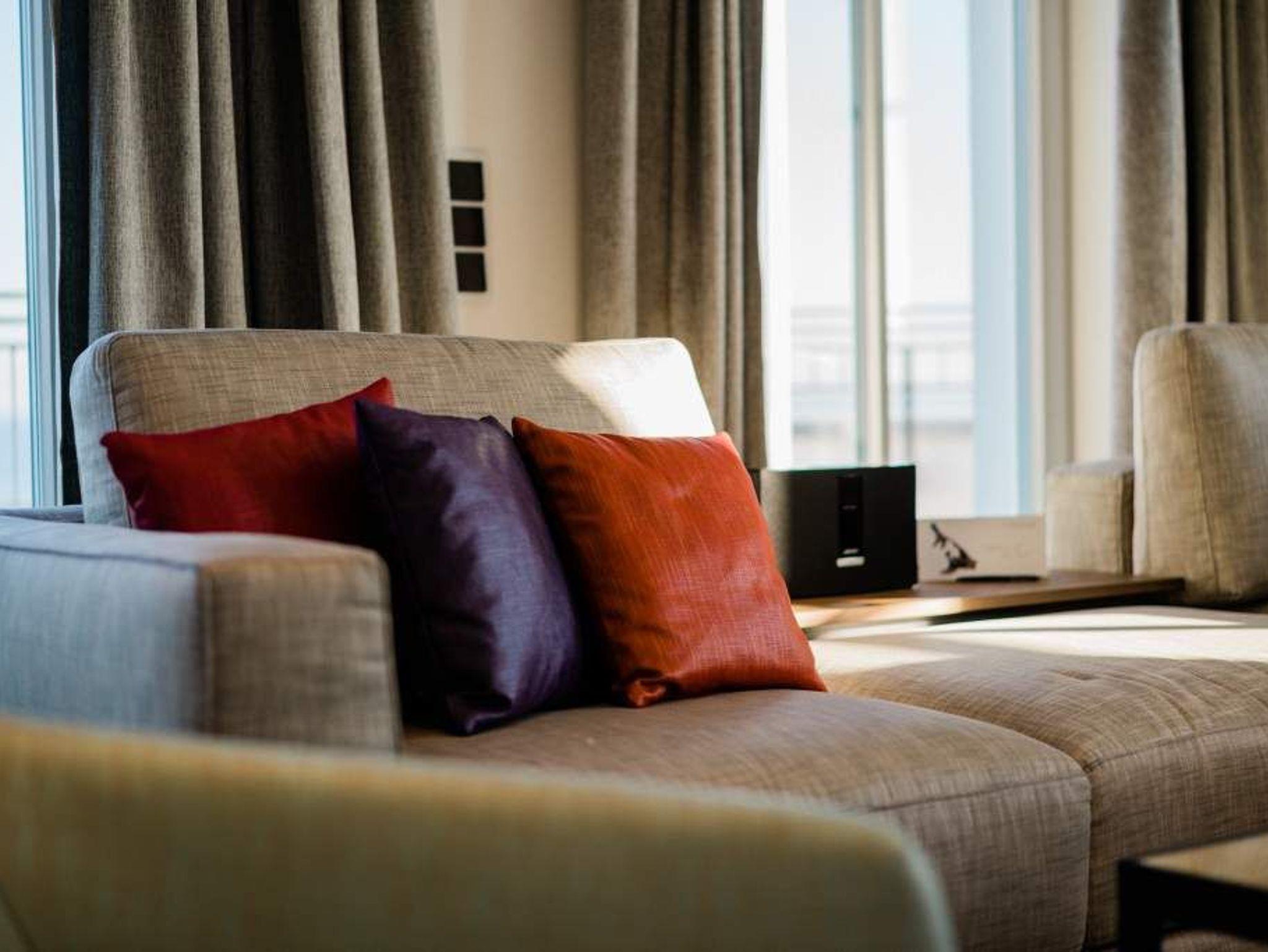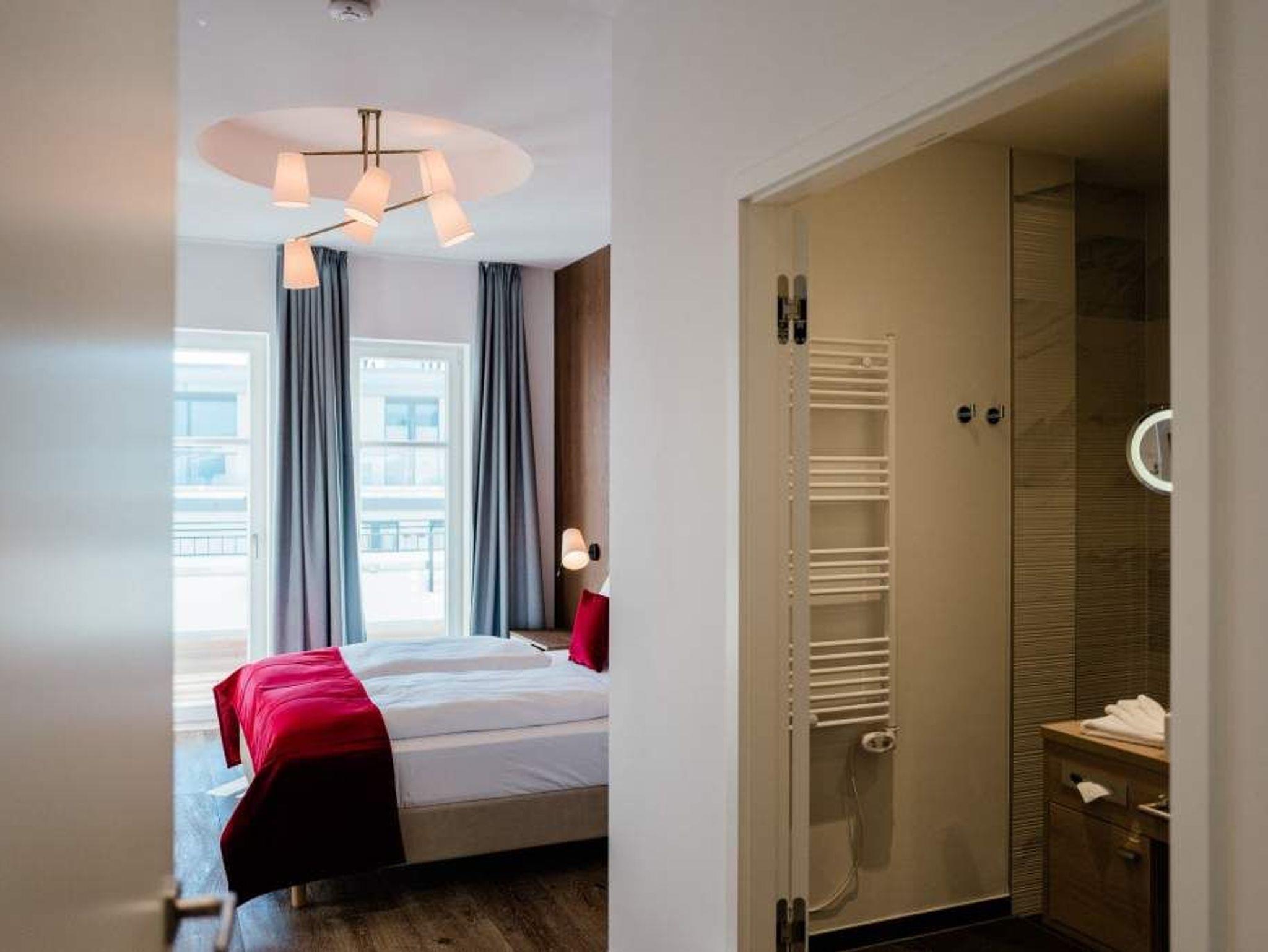 Drei Schlafzimmer, ein riesiger Wohnbereich und eine Terrasse, die den Blick grenzenlos über das Ostseeblau schweifen lässt ? näher dran am Paradies geht nicht als hier im Penthouse Waterfront in der 4. Etage. Auf den 170 Quadratmetern wird der Ostsee-Besuch für bis zu acht Personen (6 Erwachsene [&] 2 Kleinkinder im Kinderreisebett) zu einer luxuriösen Entspannungsauszeit. Großzügigkeit, designte Eleganz und moderner Wohn-Komfort zeichnen dieses Appartement der Sonderklasse aus. Hier ist alles ein wenig weitläufiger, größer, schöner als an anderen Orten. Der Blick von der 171 Quadratmeter großen Dachterrasse über die Ostsee ist gigantisch. Fühlen Sie sich wie eine Möwe, die aus luftiger Höhe auf das Glitzern des Morgenmeeres hinunter schaut. Fühlen Sie Freiheit. Und atmen Sie tief durch. Romantischer kann man einen Morgen nicht beginnen, als mit einem Kaffee in der Hand dem Sonnenaufgang zuzuschauen. Glutrot taucht die Sonne im Sommer aus der Ostsee auf und wirft dabei tausende Diamanten auf die Wellen. Exklusives Wohndesign erwartet Sie im Wohn-Esszimmer sowie in allen anderen Räumen. Bis ins Detail hinein ist das Raumkonzept stimmig und harmonisch. Edles Parkett, natürliche Materialien, hochwertige Möbel ? dieses Penthouse ist etwas für diejenigen, die sich einmal wieder etwas richtig Gutes gönnen wollen. Entspannen auf der riesigen Sofalandschaft oder in einem der urig bequemen Nordic Design-Sessel vor dem gläsernen Gas-Kamin, der auf Knopfdruck eine kuschelig warme Atmosphäre zaubern kann, oder vor dem großen Flat-TV: Was will man mehr! Die Bose-Anlage hat eine Bluetooth-Funktion. Das WLAN ist im Beachhouse kostenfrei. Ein wunderschöner, großer Essplatz mit einem Holztisch lädt zum ausgiebigen Schlemmen ein. Die zum Wohnzimmer hin offene Küche ist eine stylische Wohlfühlzone für alle, die gerne kochen. Hochwertige Markengeräte, edles Geschirr ? alles ist vom Feinsten und hilft dabei, das Zubereiten sämtlicher Speisen zu erleichtern. Und immer im Blick: Die Ostsee. Durch die bodentiefen Fenster, ist sie fast aus jeder Winkel des Appartements heraus zu sehen. Jedes der drei Schlafzimmer hat sein eigenes Bad mit Regendusche, Waschtisch und WC. Und dabei ist jedes Schlafzimmer anders gestaltet. Eine moderne Wandgestaltung[nbsp][nbsp]macht das Wohnen luxuriös. In den Boxspringdoppelbetten (1,80 m 2,00 m) wird die Nacht zum Vergnügen. Von jedem Schlafzimmer aus haben Sie einen Zugang zur Sonnenterrasse. Gleich nach dem Aufwachen die frische Ostseeluft zu genießen, das ist wahrer Luxus. Alle drei Räume sind zudem mit jeweils einem Flat-TV und einem geräumigen Schrank ausgestattet. In der Finnischen Sauna lässt es sich herrlich entspannen. In einem kleinen Hauswirtschaftsraum können Sie im Wasch-Trockner Ihre Wäsche waschen. Entspannung pur heißt für uns auch, dass bei Ihrer Anreise die Betten bezogen sind und ausreichend Handtücher für Sie bereitliegen. Das Penthouse verfügt über zwei Stellplätze, Nr. 28 in der Tiefgarage.