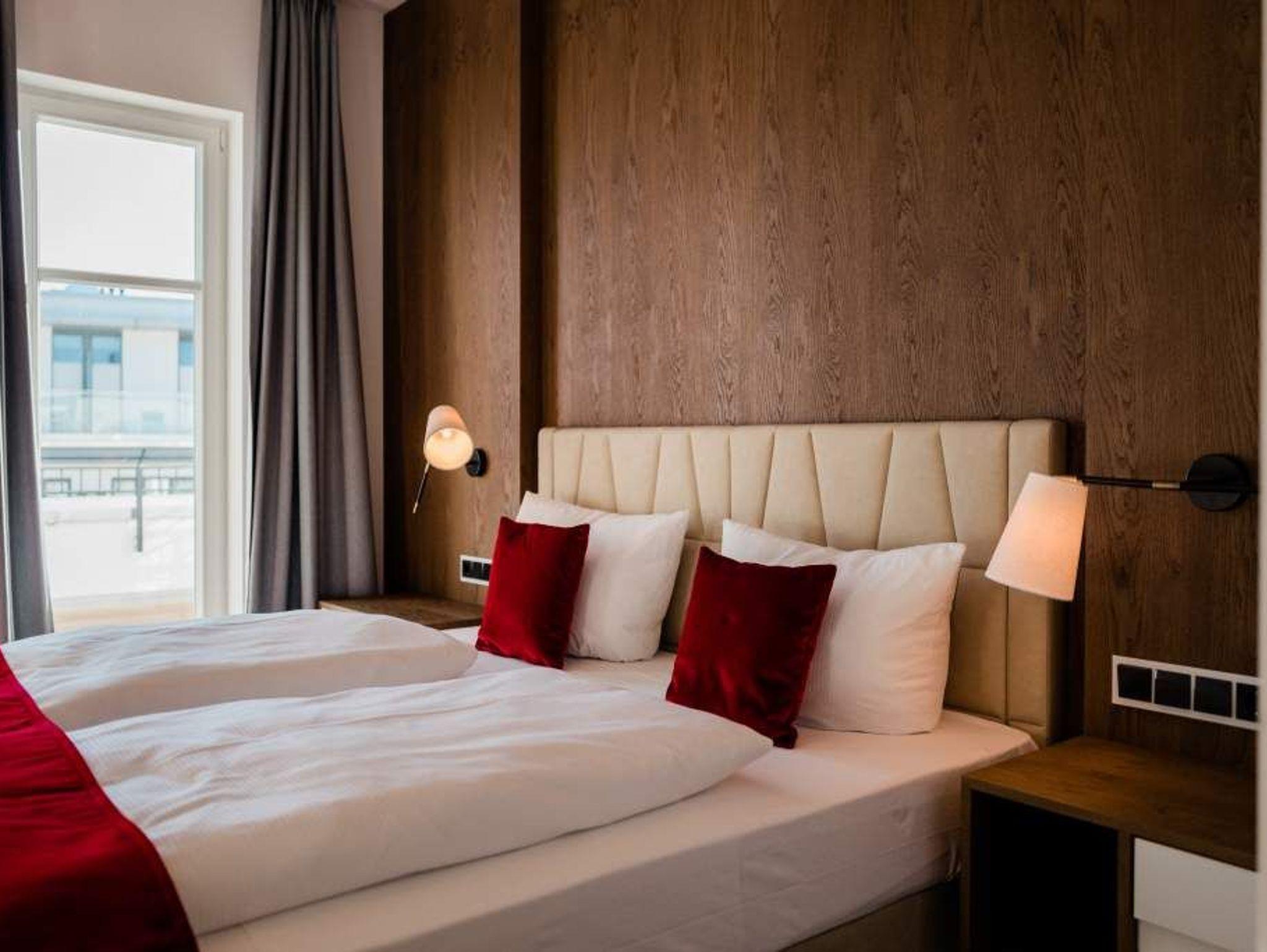 Drei Schlafzimmer, ein riesiger Wohnbereich und eine Terrasse, die den Blick grenzenlos über das Ostseeblau schweifen lässt näher dran am Paradies geht nicht als hier im Penthouse Waterfront in der 4. Etage. Auf den 170 Quadratmetern wird der Ostsee-Besuch für bis zu acht Personen (6 Erwachsene [&] 2 Kleinkinder im Kinderreisebett) zu einer luxuriösen Entspannungsauszeit. Großzügigkeit, designte Eleganz und moderner Wohn-Komfort zeichnen dieses Appartement der Sonderklasse aus. Hier ist alles ein wenig weitläufiger, größer, schöner als an anderen Orten. Der Blick von der 171 Quadratmeter großen Dachterrasse über die Ostsee ist gigantisch. Fühlen Sie sich wie eine Möwe, die aus luftiger Höhe auf das Glitzern des Morgenmeeres hinunter schaut. Fühlen Sie Freiheit. Und atmen Sie tief durch. Romantischer kann man einen Morgen nicht beginnen, als mit einem Kaffee in der Hand dem Sonnenaufgang zuzuschauen. Glutrot taucht die Sonne im Sommer aus der Ostsee auf und wirft dabei tausende Diamanten auf die Wellen. Exklusives Wohndesign erwartet Sie im Wohn-Esszimmer sowie in allen anderen Räumen. Bis ins Detail hinein ist das Raumkonzept stimmig und harmonisch. Edles Parkett, natürliche Materialien, hochwertige Möbel dieses Penthouse ist etwas für diejenigen, die sich einmal wieder etwas richtig Gutes gönnen wollen. Entspannen auf der riesigen Sofalandschaft oder in einem der urig bequemen Nordic Design-Sessel vor dem gläsernen Gas-Kamin, der auf Knopfdruck eine kuschelig warme Atmosphäre zaubern kann, oder vor dem großen Flat-TV: Was will man mehr! Die Bose-Anlage hat eine Bluetooth-Funktion. Das WLAN ist im Beachhouse kostenfrei. Ein wunderschöner, großer Essplatz mit einem Holztisch lädt zum ausgiebigen Schlemmen ein. Die zum Wohnzimmer hin offene Küche ist eine stylische Wohlfühlzone für alle, die gerne kochen. Hochwertige Markengeräte, edles Geschirr alles ist vom Feinsten und hilft dabei, das Zubereiten sämtlicher Speisen zu erleichtern. Und immer im Blick: Die Ostsee. Durch die bodentiefen Fenster, ist sie fast aus jeder Winkel des Appartements heraus zu sehen. Jedes der drei Schlafzimmer hat sein eigenes Bad mit Regendusche, Waschtisch und WC. Und dabei ist jedes Schlafzimmer anders gestaltet. Eine moderne Wandgestaltung[nbsp][nbsp]macht das Wohnen luxuriös. In den Boxspringdoppelbetten (1,80 m 2,00 m) wird die Nacht zum Vergnügen. Von jedem Schlafzimmer aus haben Sie einen Zugang zur Sonnenterrasse. Gleich nach dem Aufwachen die frische Ostseeluft zu genießen, das ist wahrer Luxus. Alle drei Räume sind zudem mit jeweils einem Flat-TV und einem geräumigen Schrank ausgestattet. In der Finnischen Sauna lässt es sich herrlich entspannen. In einem kleinen Hauswirtschaftsraum können Sie im Wasch-Trockner Ihre Wäsche waschen. Entspannung pur heißt für uns auch, dass bei Ihrer Anreise die Betten bezogen sind und ausreichend Handtücher für Sie bereitliegen. Das Penthouse verfügt über zwei Stellplätze, Nr. 28 in der Tiefgarage.