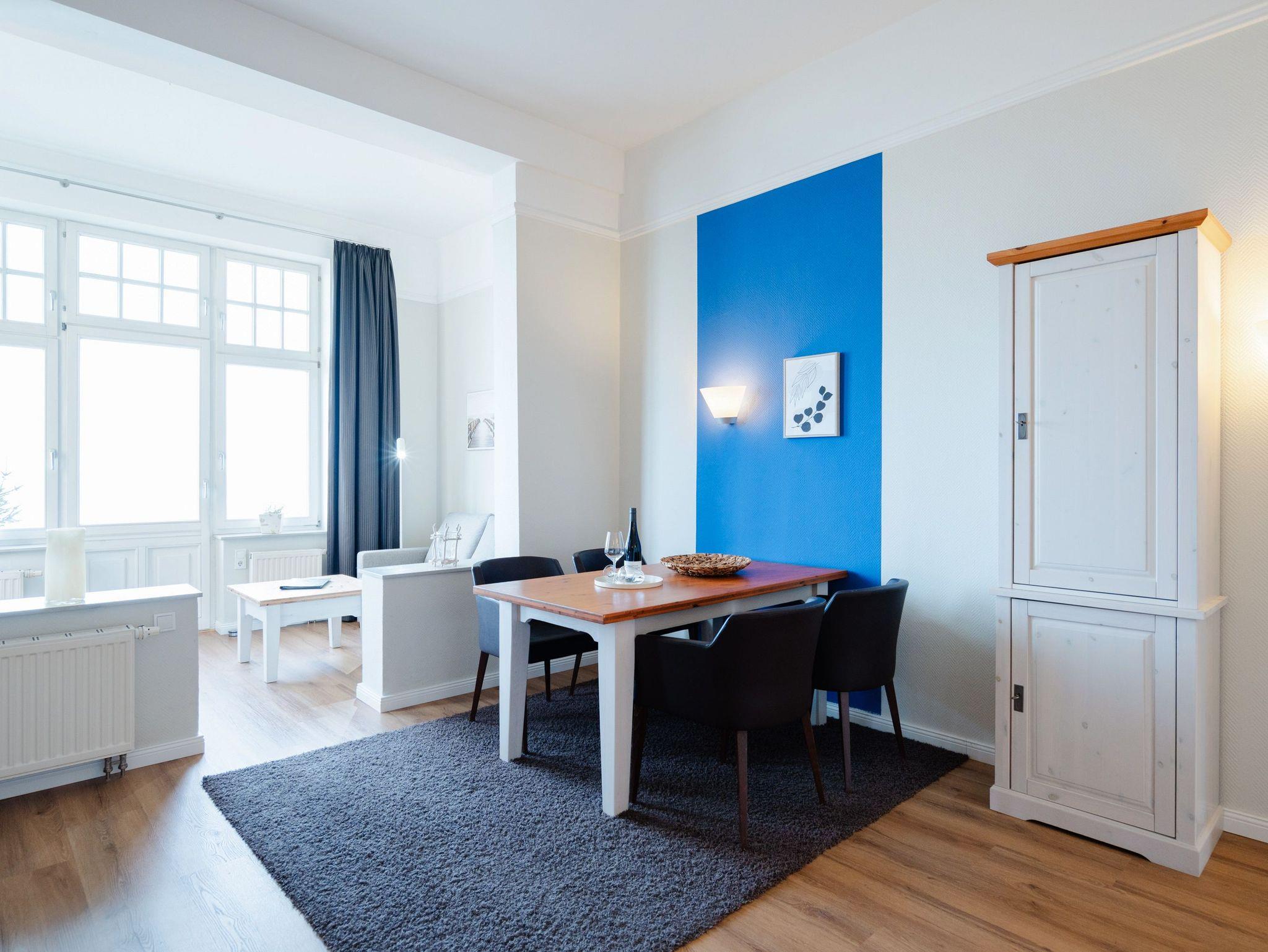 Traumhafter Meerblick, erste Reihe, 4-Sterne-Komfort-Wohnungen. Gibt es nicht? Doch! In der Villa Dora, eine stilvolle Villa der Kaiserzeit. Hier wird Ihr Urlaub zu einem besonderen Erlebnis, denn die Ostsee ist quasi vor der Tür. Komfortabel und ansprechend gestaltete Domizile, vom 1-Raum-Appartement mit verglaster Veranda bis hin zum Dachstudio mit 100 qm, bieten Ihnen zu zweit oder in Familie erholsame Urlaubstage. Für jedes Appartement in der Villa Dora steht ein Stellplatz zur Verfügung. Sie haben die Möglichkeit Ihre Fahrräder in einem separaten Raum unterzustellen. Eine Waschmaschine und ein Trockner im Haus sind gegen eine Gebühr nutzbar. Das WLAN-Netz steht kostenfrei zur Verfügung.
