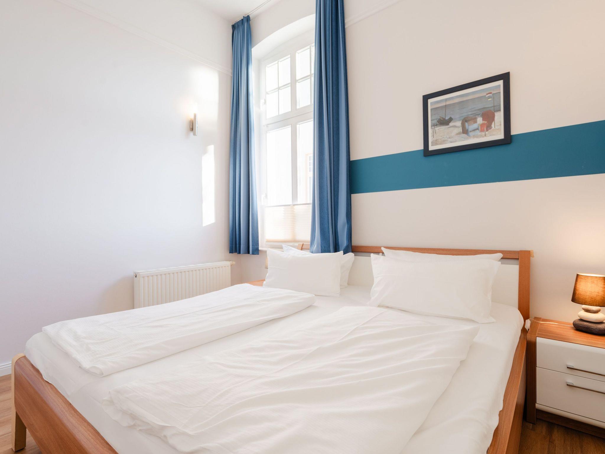 Ostsee, wohin das Auge reicht. Die Ferienwohnung 9 empfängt Sie im 2. Obergeschoss der Villa und offeriert Ihnen einen klassischen, gemütlichen Wohnstil. Der Wohnbereich ist mit einer Sitzgruppe mit Flat-TV ausgestattet und geht in eine offene Veranda mit Essplatz und Balkon über. Dieses Domizil bietet 2-4 Personen Platz für den Urlaub. Sie finden hier zwei Schlafzimmer, eines mit Doppelbett (1,80m x 2,00m) und Durchgang zum zweiten Schlafbereich mit Etagenbett (0,90m x 2,00m - ideal für Kinder). Im Wohnbereich kann die Schlafcouch als weitere Schlafmöglichkeit genutzt werden. Für Ihren Komfort sind die Betten bei der Anreise bezogen und Handtücher liegen bereit (Erstausstattung). Das Bad bietet zwei Waschbecken, Dusche und Föhn. Für Ihren PKW steht Ihnen ein Parkplatz vor dem Haus zur Verfügung.