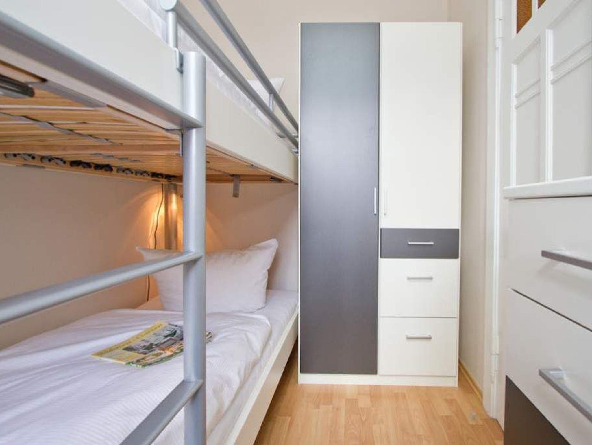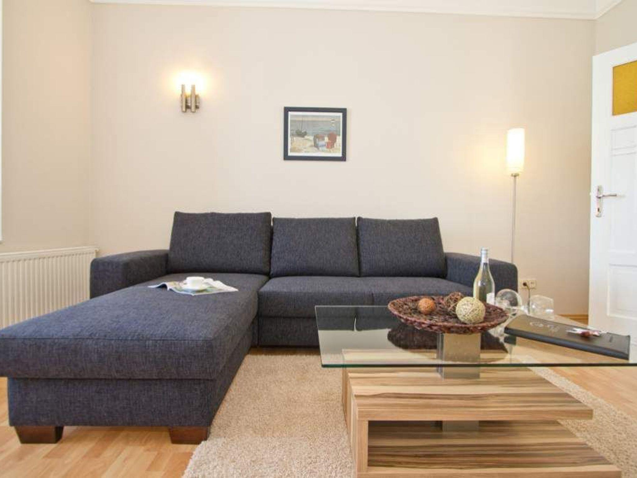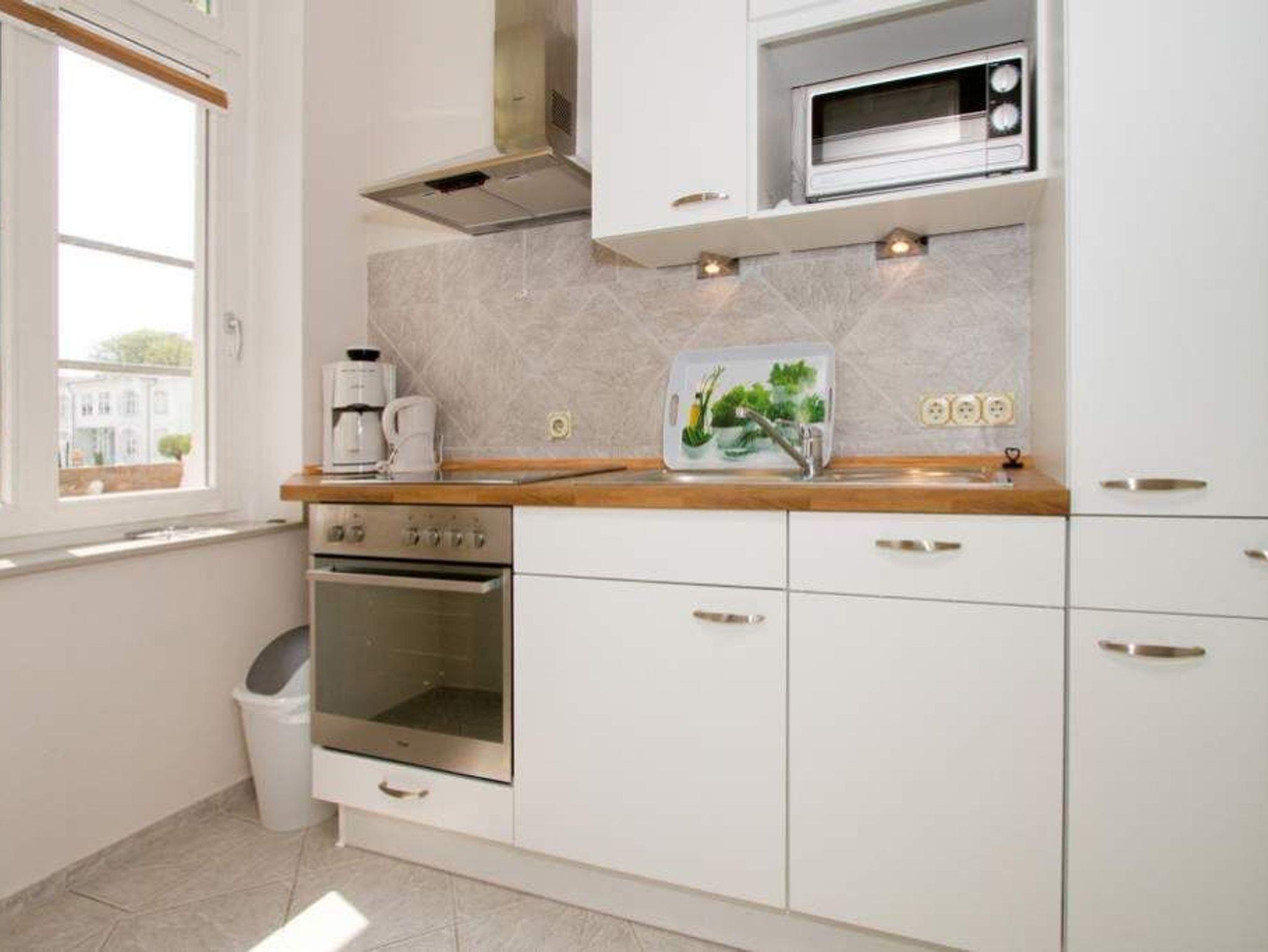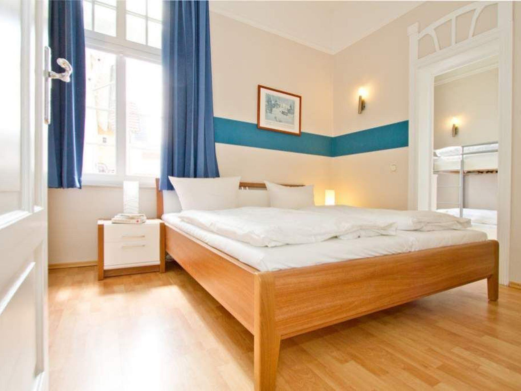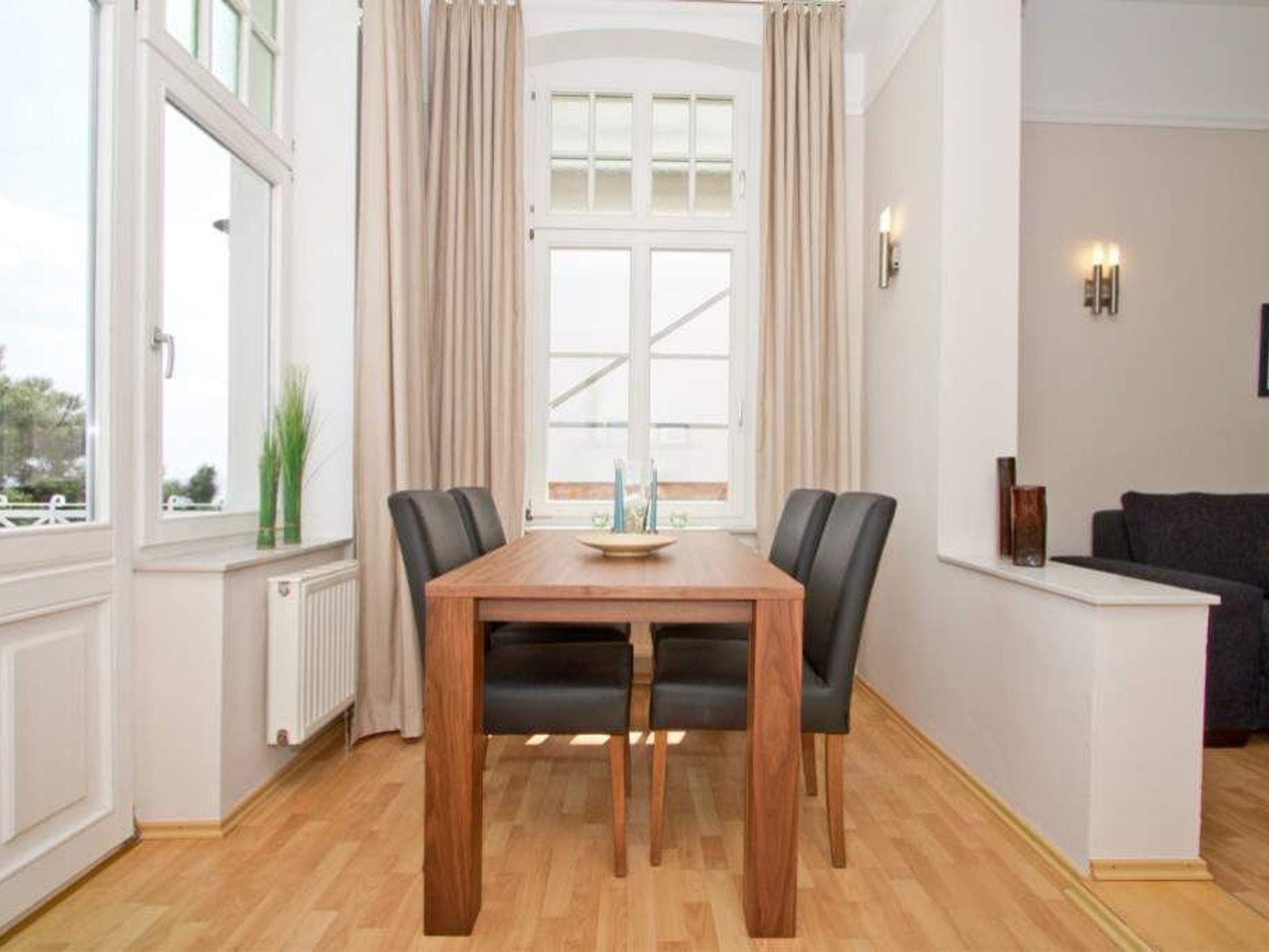 Ostsee, wohin das Auge reicht. Die Ferienwohnung 9 empfängt Sie im 2. Obergeschoss der Villa und offeriert Ihnen einen klassischen, gemütlichen Wohnstil. Der Wohnbereich ist mit einer Sitzgruppe mit Flat-TV ausgestattet und geht in eine offene Veranda mit Essplatz und Balkon über. Dieses Domizil bietet 2-4 Personen Platz für den Urlaub. Sie finden hier zwei Schlafzimmer, eines mit Doppelbett (1,80m x 2,00m) und Durchgang zum zweiten Schlafbereich mit Etagenbett (0,90m x 2,00m - ideal für Kinder). Im Wohnbereich kann die Schlafcouch als weitere Schlafmöglichkeit genutzt werden. Für Ihren Komfort sind die Betten bei der Anreise bezogen und Handtücher liegen bereit (Erstausstattung). Das Bad bietet zwei Waschbecken, Dusche und Föhn. Für Ihren PKW steht Ihnen ein Parkplatz mit Poller vor dem Haus zur Verfügung.