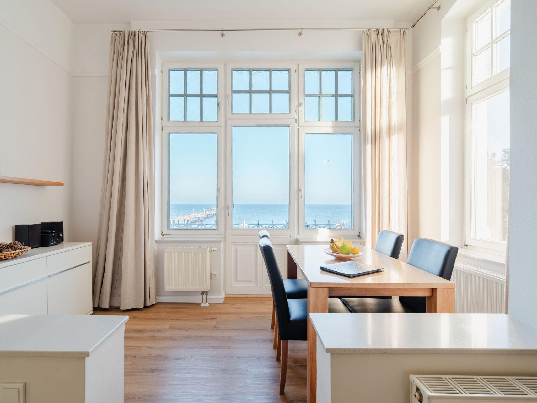 Genießen Sie Meerblick und Komfort in Villa Dora, App. 09, nur 20 m vom Strand in Bansin entfernt.