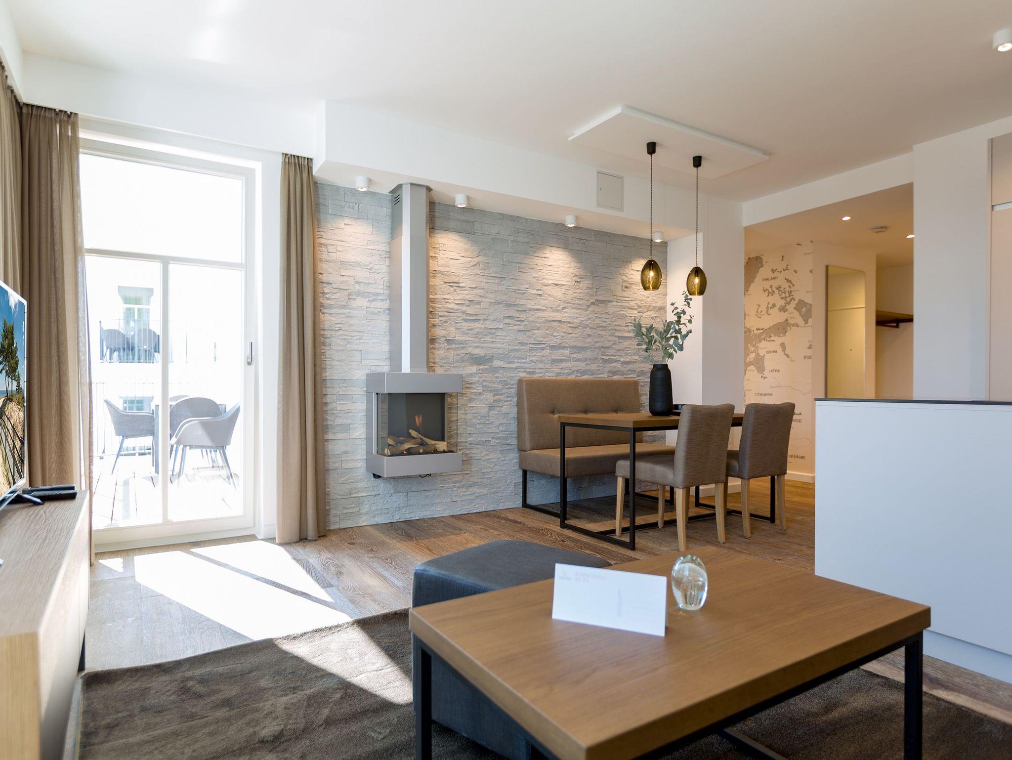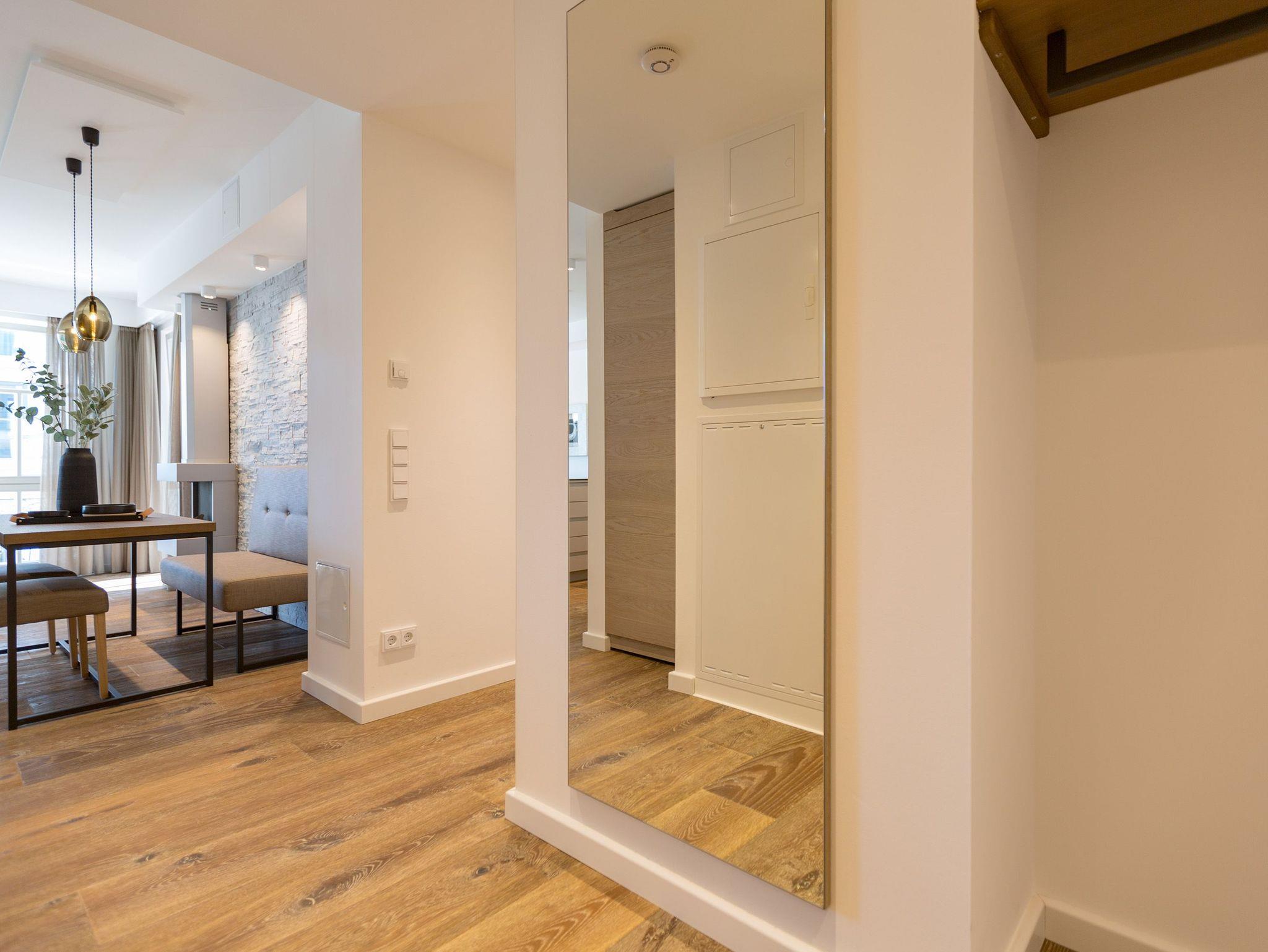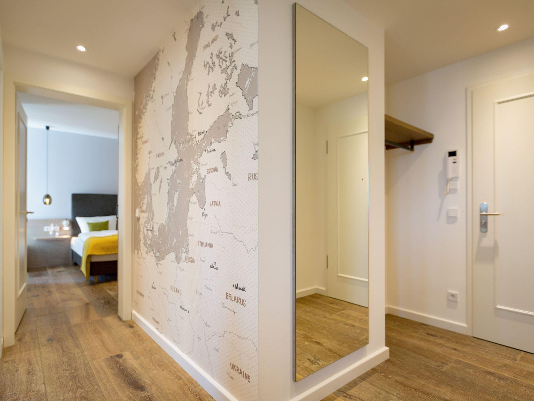 Modern, offen, lichtdurchflutet dieses 66 Quadratmeter große Feriendomizil im 1. Obergeschoss macht Ihren Urlaub zu einer Ostsee-Auszeit der exklusiven Art. Vier Personen, ein Kleinkind bis drei Jahre (im Kinderreisebett) und der geliebte Vierbeiner werden sich hier so pudelwohl fühlen, dass sie gar nicht wieder nach Hause wollen. Das Drei-Zimmer-Appartement bietet allen Komfort, den man sich nur vorstellen kann. Dazu modernste Technik und ein ausgewählt stylisches Interieur. Das großzügige und offene Wohn-Esszimmer bildet den Mittelpunkt der Wohnung. Bodentiefe Fenster lassen viel Licht ins Innere. Ein wunderschöner Gas-Kamin sorgt für Behaglichkeit. Ebenso die harmonisch aufeinander abgestimmten Naturmaterialien Holz und Stein. Und immer im Blick das Wasser der Ostsee. Denn vom Balkon (9 Quadratmeter groß) aus haben Sie seitlichen Meerblick. Dieser ist übrigens von allen drei Zimmern aus begehbar. Im Wohnzimmer wartet eine bequeme Couch nur darauf, dass Sie sich einfach fallen und verwöhnen lassen. Ein großer Flat-TV und eine Hi-Fi-Anlage mit Bluetooth sorgen für qualitativ hochwertige Unterhaltung. Ein schöner Essplatz mit zwei Stühlen und einer Sitzbank lädt zum ausgiebigen Dinieren ein. Das Essen können Sie in der vollausgestatteten und in den Wohnraum integrierten Küche zubereiten. Die freistehende Kochinsel eignet sich ideal als Raumteiler. In den Schränken finden Sie ausgewähltes Design-Geschirr. Etwas, was man vor allem im Urlaub sich sehnlichst wünscht, ist ein erholsamer Schlaf. In den bequemen Boxspringdoppelbetten (1,60 m x 2,00 m) werden diese Träume in den beiden Schlafzimmern Realität. Das angenehme Farbkonzept und die anheimelnde Atmosphäre der Einrichtung machen es Ihnen leicht. Das Appartement verfügt über zwei Bäder. Bad Nummer 1 ist nur über eines der beiden Schlafzimmer zugänglich. Beide Bäder jedoch sind mit einer ebenerdigen und großen Regendusche, einem Waschtisch und einem WC ausgestattet. Ein absolutes Highlight erwartet Sie zudem im 2. Bad: Eine Finnische Sauna. Was gibt es Schöneres, als einen entspannten Urlaubstag mit einem noch entspannenderem Saunagang abzuschließen? Handtücher finden Sie natürlich vor Ort. Ebenso sind die Betten bei Ihrer Anreise bereits bezogen. Wenn Sie ins Internet gehen wollen, können Sie das über das kostenfreie WLAN tun. In der Wohnung gibt es einen kleinen Hauswirtschaftsraum, in dem ein Waschtrockner steht. In der modernen Tiefgarage ist für Sie der Stellplatz Nr. 3 im Doppelparker oben (max. Höhe 1,90m, max. Länge 5,10 m, max. Breite 2,50 m, max. Last 2.600 kg) reserviert.