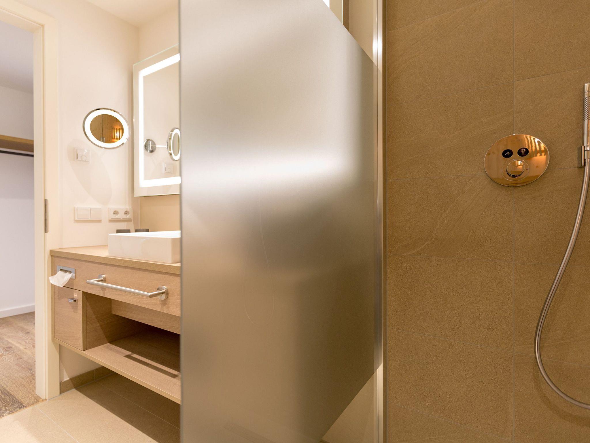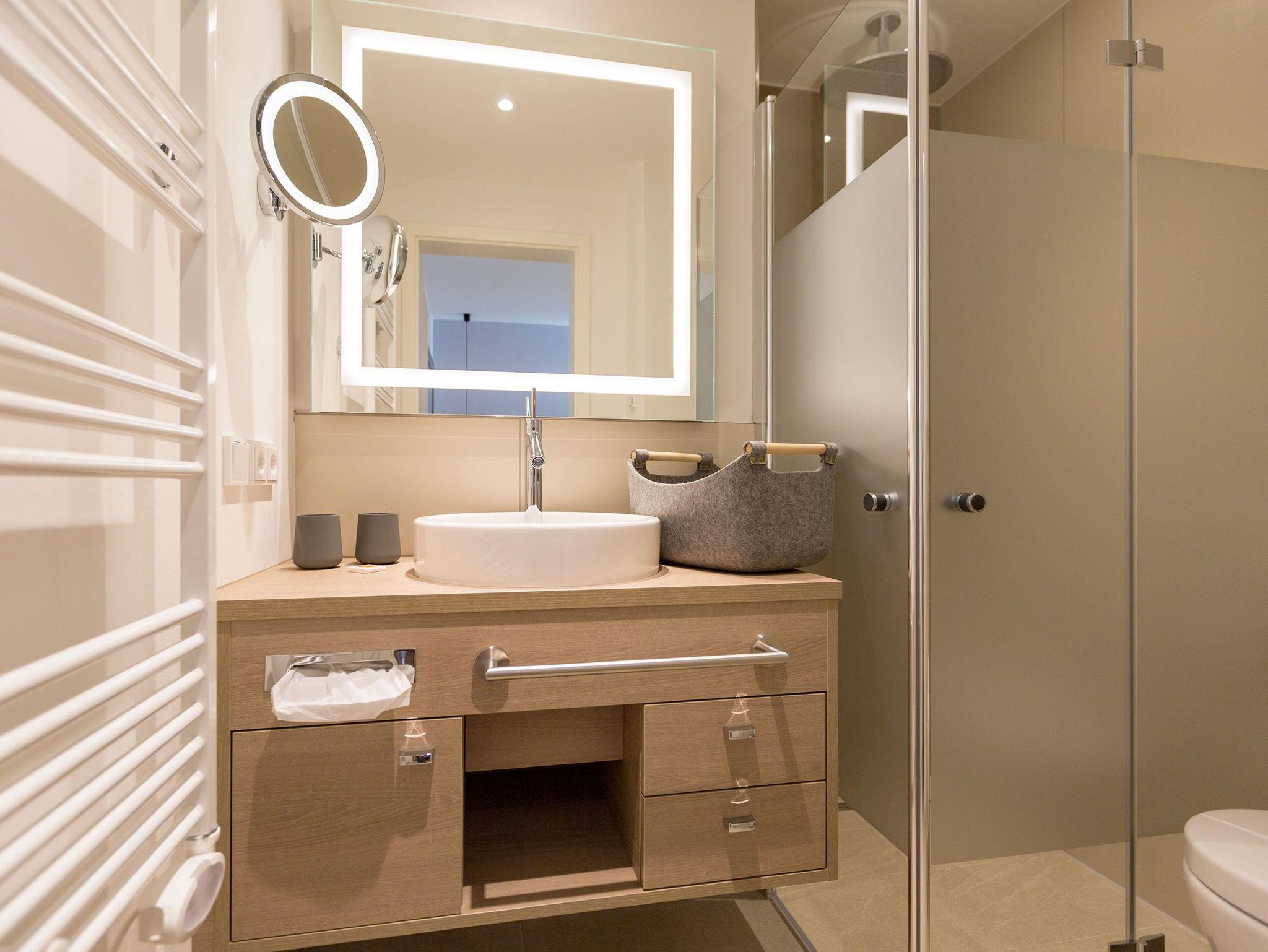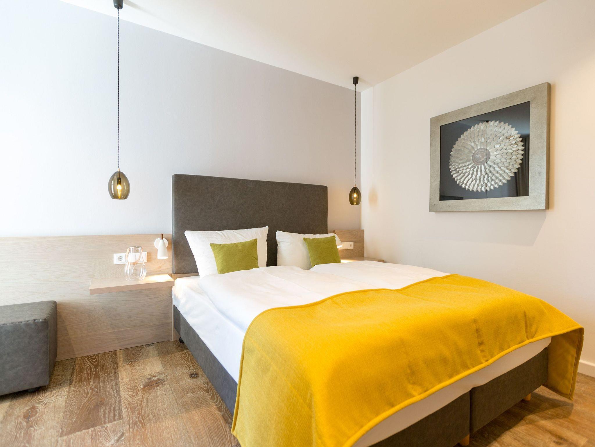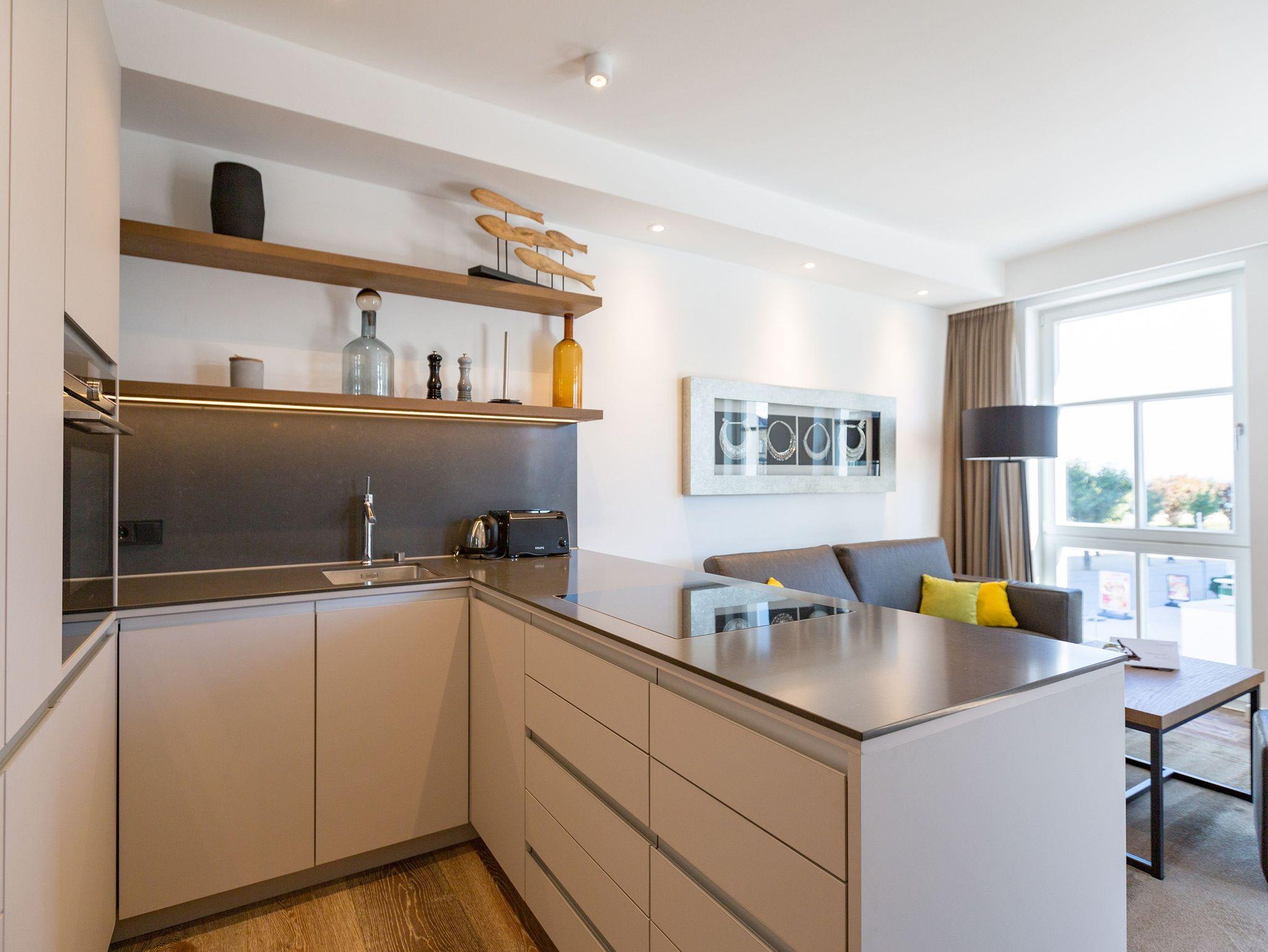 Modern, offen, lichtdurchflutet dieses 66 Quadratmeter große Feriendomizil im 1. Obergeschoss macht Ihren Urlaub zu einer Ostsee-Auszeit der exklusiven Art. Vier Personen, ein Kleinkind bis drei Jahre (im Kinderreisebett) und der geliebte Vierbeiner werden sich hier so pudelwohl fühlen, dass sie gar nicht wieder nach Hause wollen. Das Drei-Zimmer-Appartement bietet allen Komfort, den man sich nur vorstellen kann. Dazu modernste Technik und ein ausgewählt stylisches Interieur. Das großzügige und offene Wohn-Esszimmer bildet den Mittelpunkt der Wohnung. Bodentiefe Fenster lassen viel Licht ins Innere. Ein wunderschöner Gas-Kamin sorgt für Behaglichkeit. Ebenso die harmonisch aufeinander abgestimmten Naturmaterialien Holz und Stein. Und immer im Blick das Wasser der Ostsee. Denn vom Balkon (9 Quadratmeter groß) aus haben Sie seitlichen Meerblick. Dieser ist übrigens von allen drei Zimmern aus begehbar. Im Wohnzimmer wartet eine bequeme Couch nur darauf, dass Sie sich einfach fallen und verwöhnen lassen. Ein großer Flat-TV und eine Hi-Fi-Anlage mit Bluetooth sorgen für qualitativ hochwertige Unterhaltung. Ein schöner Essplatz mit zwei Stühlen und einer Sitzbank lädt zum ausgiebigen Dinieren ein. Das Essen können Sie in der vollausgestatteten und in den Wohnraum integrierten Küche zubereiten. Die freistehende Kochinsel eignet sich ideal als Raumteiler. In den Schränken finden Sie ausgewähltes Design-Geschirr. Etwas, was man vor allem im Urlaub sich sehnlichst wünscht, ist ein erholsamer Schlaf. In den bequemen Boxspringdoppelbetten (1,60 m x 2,00 m) werden diese Träume in den beiden Schlafzimmern Realität. Das angenehme Farbkonzept und die anheimelnde Atmosphäre der Einrichtung machen es Ihnen leicht. Das Appartement verfügt über zwei Bäder. Bad Nummer 1 ist nur über eines der beiden Schlafzimmer zugänglich. Beide Bäder jedoch sind mit einer ebenerdigen und großen Regendusche, einem Waschtisch und einem WC ausgestattet. Ein absolutes Highlight erwartet Sie zudem im 2. Bad: Eine Finnische Sauna. Was gibt es Schöneres, als einen entspannten Urlaubstag mit einem noch entspannenderem Saunagang abzuschließen? Handtücher finden Sie natürlich vor Ort. Ebenso sind die Betten bei Ihrer Anreise bereits bezogen. Wenn Sie ins Internet gehen wollen, können Sie das über das kostenfreie WLAN tun. In der Wohnung gibt es einen kleinen Hauswirtschaftsraum, in dem ein Waschtrockner steht. In der modernen Tiefgarage ist für Sie der Stellplatz Nr. 3 im Doppelparker oben (max. Höhe 1,90m, max. Länge 5,10 m, max. Breite 2,50 m, max. Last 2.600 kg) reserviert.