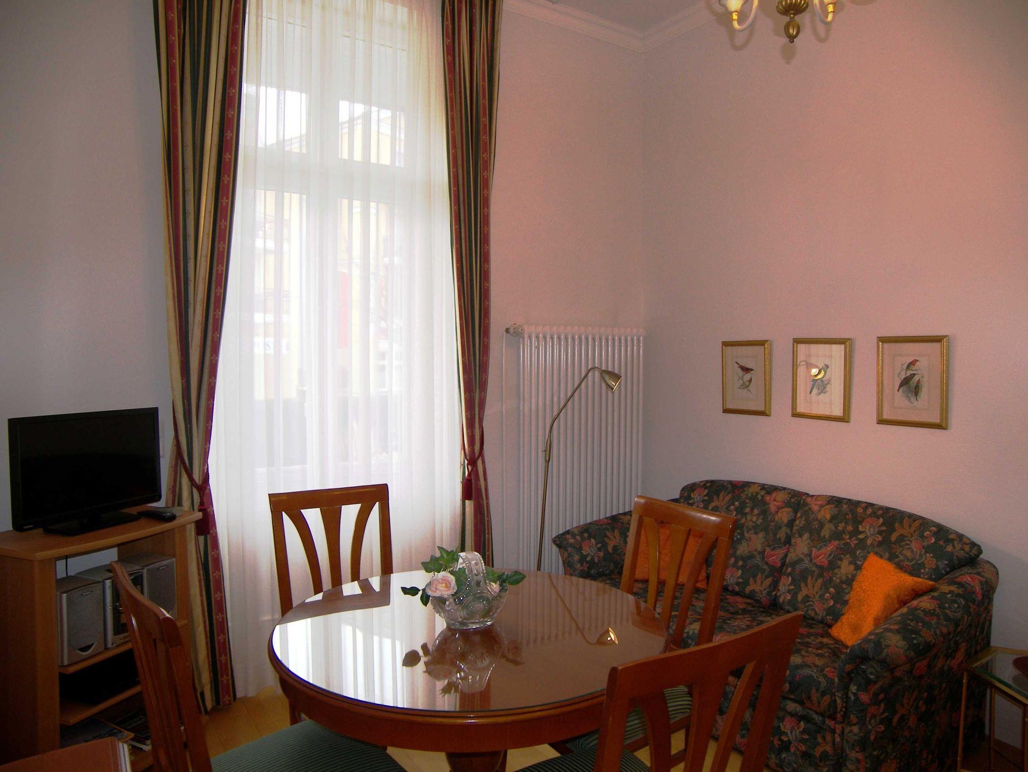Die Wohnung ist exklusiv mit Stilmöbeln in Kirschbaum, hochwertigem Bucheparkett, Stuckdecken und Kassettentüren eingerichtet. Der stillvolle Wohn-Essbereich ist mit einer Couch, Esstisch sowie Flachbild-TV und DVD-Player sowie einer Stereo-Anlage eingericht. Die offene Einbauküche ist mit Backofen, Spülmaschine, Kühlschrank mit Gefrierfach, Kaffeemaschine, Wasserkocher und Toaster ausgestattet. Das separate Schlafzimmer verfügt über ein Doppelbett. Im hochwertigen Bad mit Glasdusche müssen sie außerdem auf Haartrockner und Schminkspiegel nicht verzichten. Die Wohnung besitzt einen sonnigen Balkon mit entsprechenden Möbeln. W-LAN steht Ihnen kostenfrei zur Verfügung.