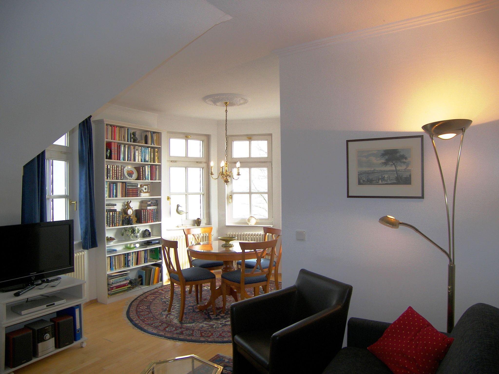 Die Türmchenwohnung für 4 Personen befindet sich im 2. Obergeschoss der Villa Vineta und bietet Ihnen einen Balkon mit traumhaftem Meerblick. Sie ist exklusiv und liebevoll im klassischen Stil eingerichtet und mit Parkettboden ausgestattet.