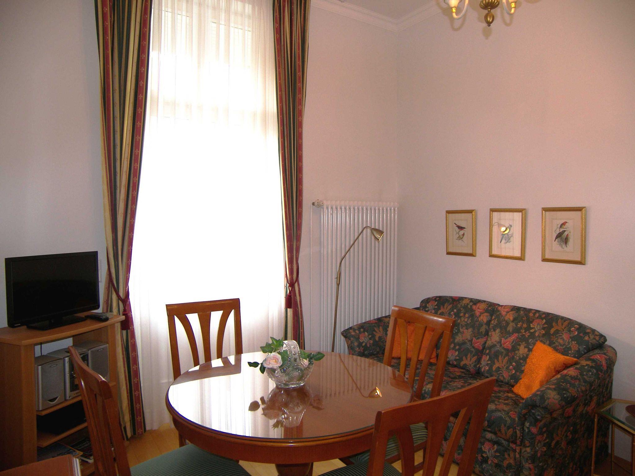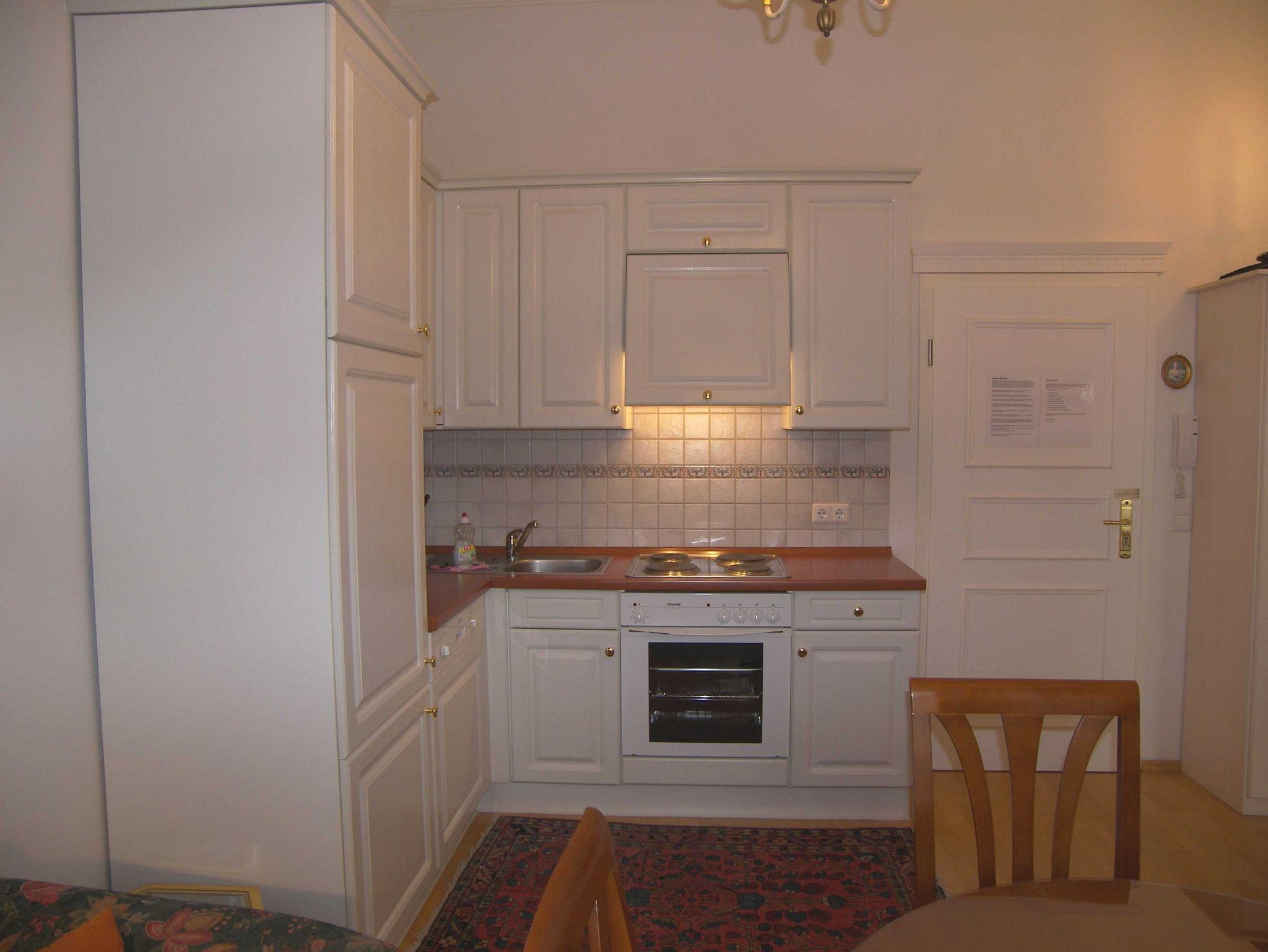 Die Wohnung ist exklusiv mit Stilmöbeln in Kirschbaum, hochwertigem Bucheparkett, Stuckdecken und Kassettentüren eingerichtet. Der stillvolle Wohn-Essbereich ist mit einer Couch, Esstisch sowie Flachbild-TV und DVD-Player sowie einer Stereo-Anlage eingericht. Die offene Einbauküche ist mit Backofen, Spülmaschine, Kühlschrank mit Gefrierfach, Kaffeemaschine, Wasserkocher und Toaster ausgestattet. Das separate Schlafzimmer verfügt über ein Doppelbett. Im hochwertigen Bad mit Glasdusche müssen sie außerdem auf Haartrockner und Schminkspiegel nicht verzichten. Die Wohnung besitzt eine sonnige Terrasse mit entsprechenden Möbeln. W-LAN steht Ihnen kostenfrei zur Verfügung.