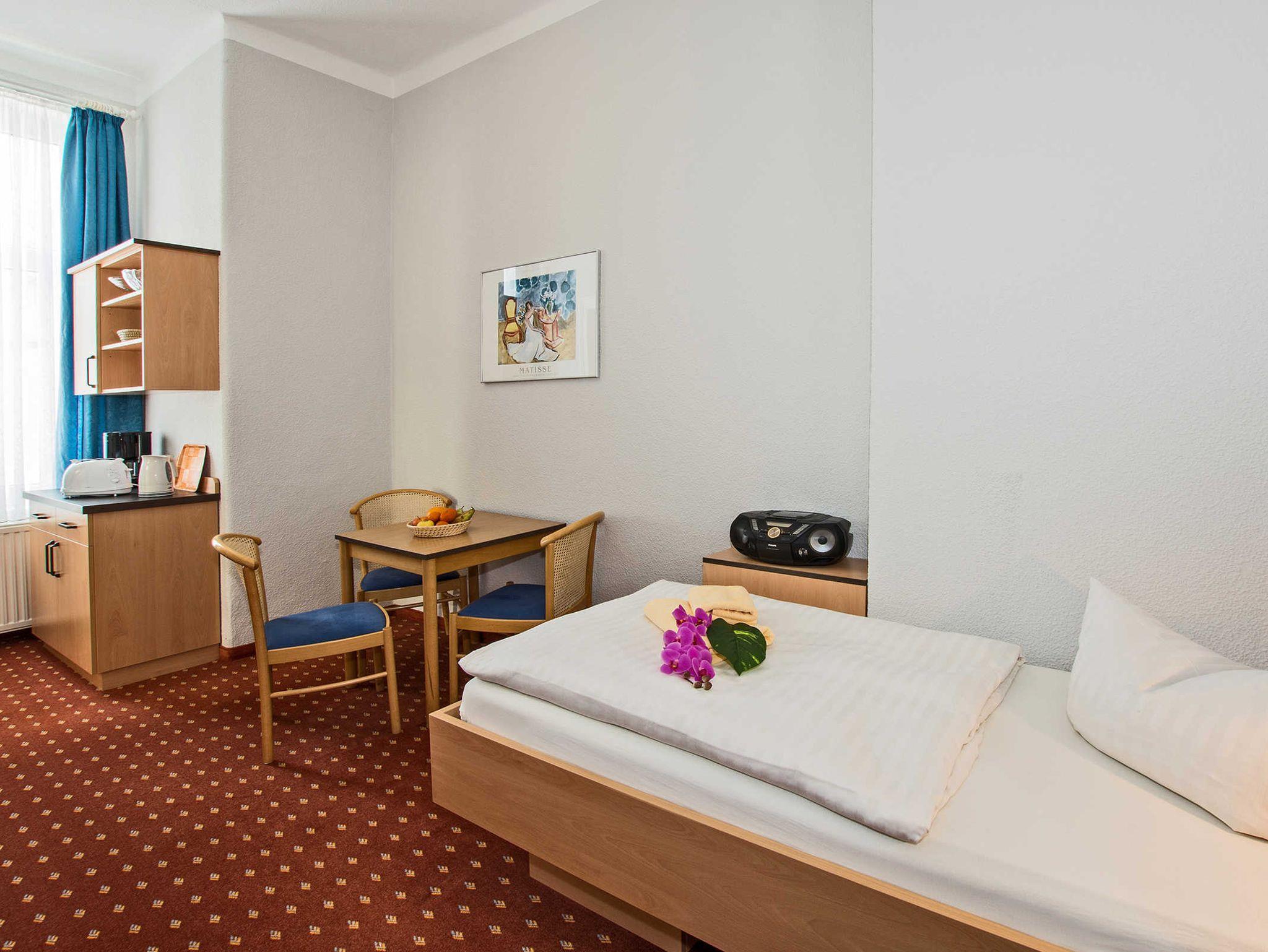 2. Raum mit Einzelbett, Esstisch und Miniküche, Bad/WC, ca. 38 qm,