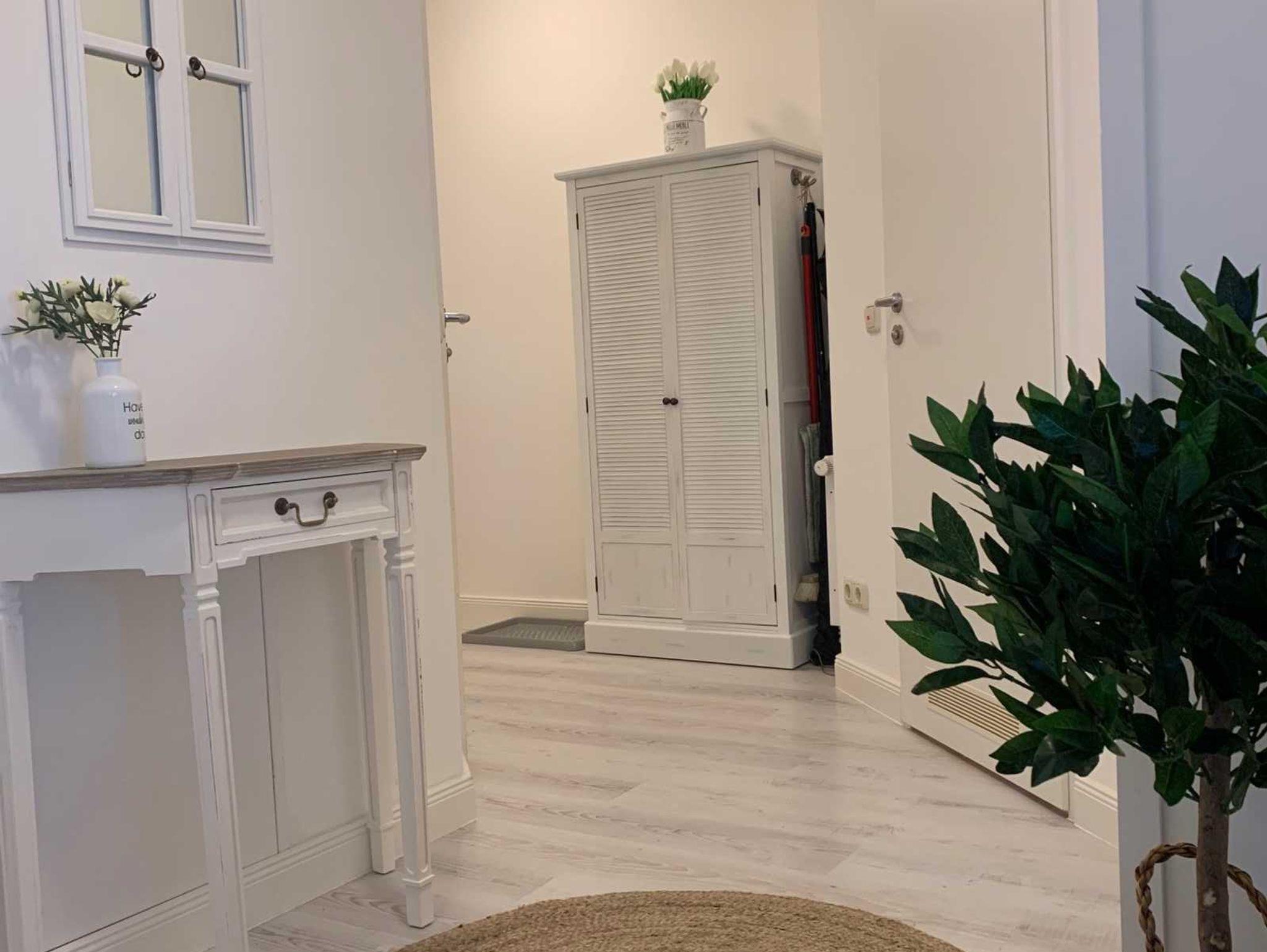 Im hellen und freundlichen Flurbereich befinden sich 2 weitere Schränke, die als zusätzlicher Stauraum genutzt werden können.