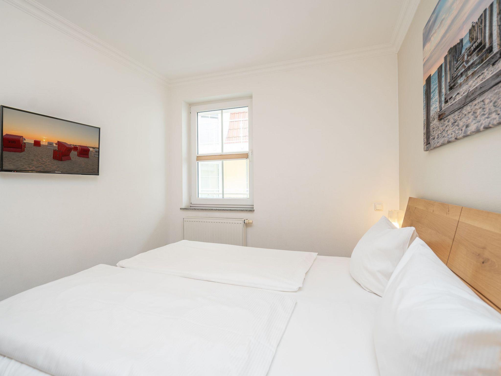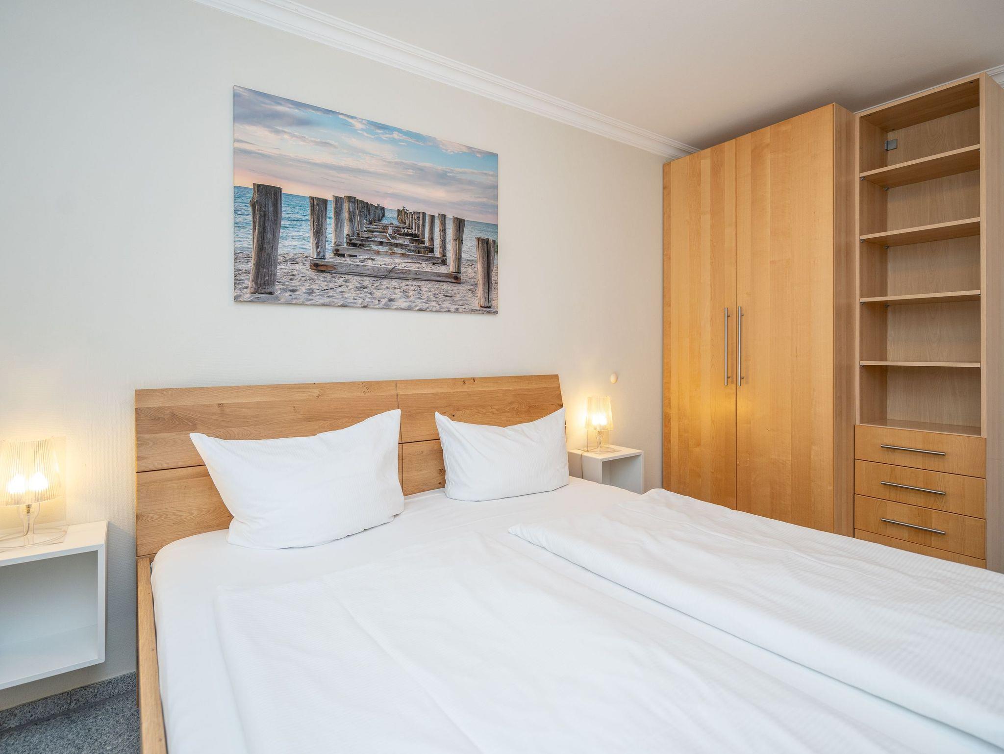 Die Ferienwohnung B11 lädt Sie ein, entspannte Urlaubstage zu verbringen (für max. 4 Personen). Geschmackvoll eingerichtet, lässt die komfortable Ausstattung keine Wünsche offen. Im 2. Obergeschoss gelegen, bietet Ihnen das Appartement ein Wohnzimmer, eine komplett ausgestattete Küchenzeile (Ceranfeld, Geschirrspüler, Backofen), zwei Schlafzimmer mit Doppelbetten, ein Duschbad und ein Gäste-WC. Zwei Balkone verfügen über einen schönen Blick auf die Ostsee und auf den idyllischen Schloonsee. Für Ihren Komfort sind die Betten bei Ihrer Anreise bezogen und die Handtücher (Erstausstattung) liegen bereit.